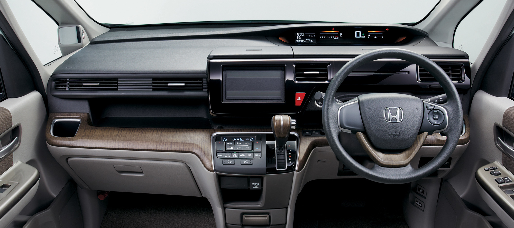 Коробка передач только одна — вариатор. Он новый и создан специально под этот мотор. В старшей версии есть подрулевые лепестки для ручного переключения виртуальных передач. Привод передний либо полный. Средний расход переднеприводной модификации — 5,88 л/100 км. Honda сообщает, что новый Step WGN — лидер по экономичности среди бензиновых аналогов.