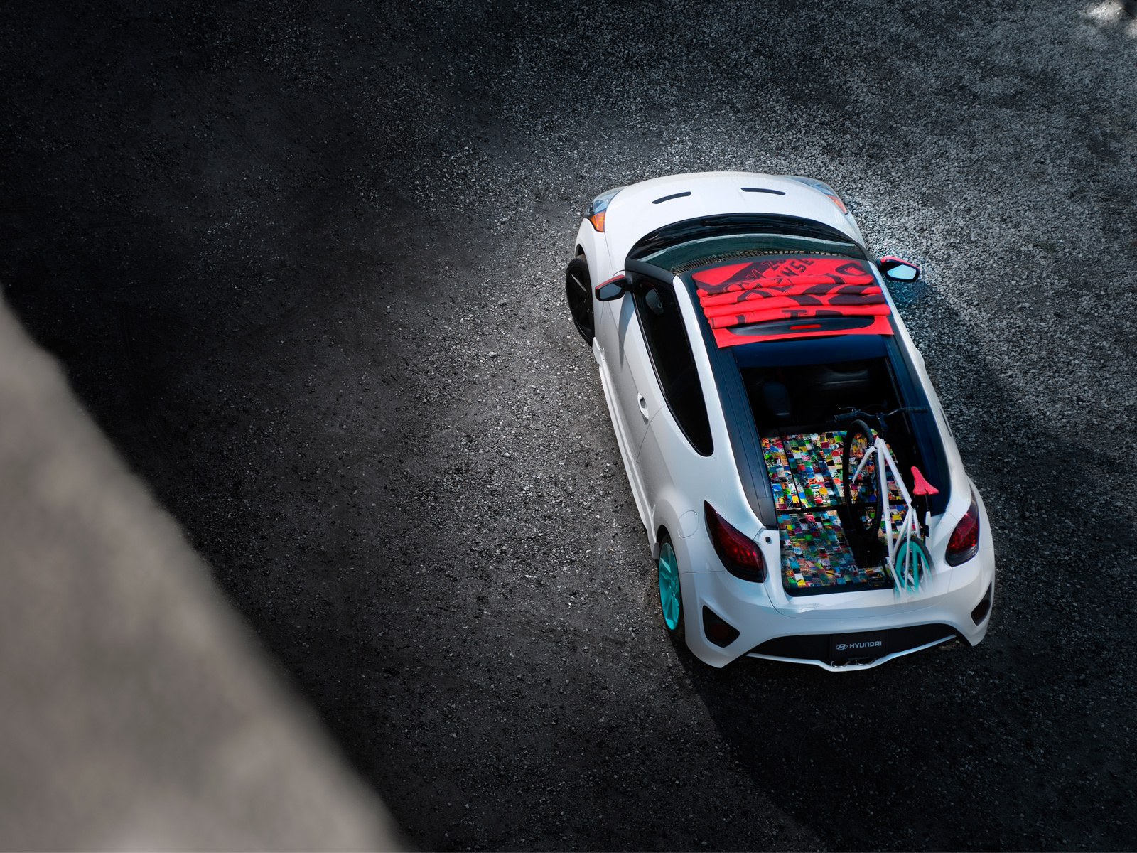 Изюминка этой машины, радикально отличающая её от серийного сородича, — мягкая крыша. При помощи электропривода она может сдвигаться гармошкой вперёд, к лобовому стеклу, либо назад — к задней дверце. Индекс C3 в названии шоу-кара означает «кабриолет трёхдверный» (в корме теперь остался откидной бортик с небольшим убирающимся стеклом). Разработчики концепта Veloster C3 Roll Top считают его многоликой личностью и утверждают, что он прекрасно подходит для активного отдыха.