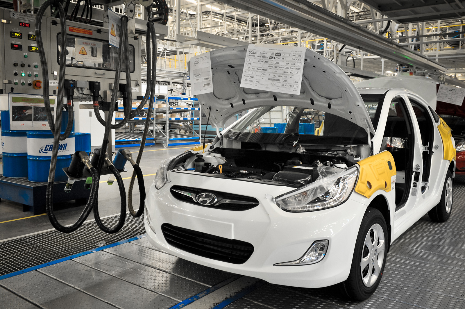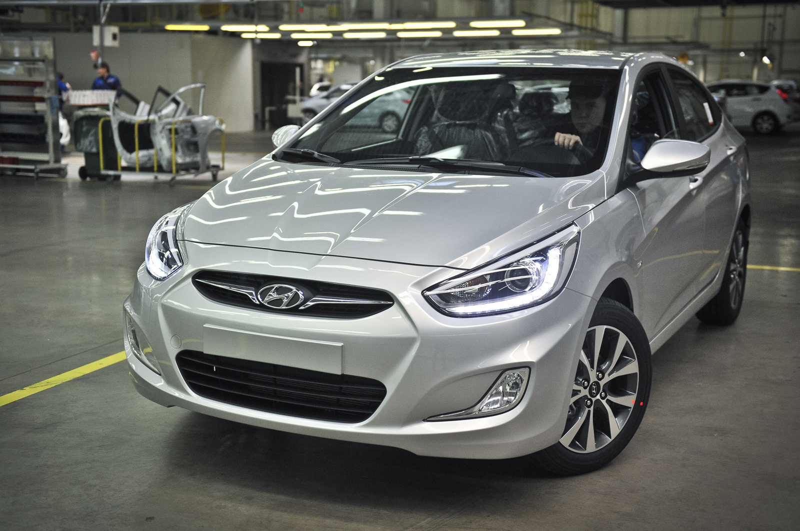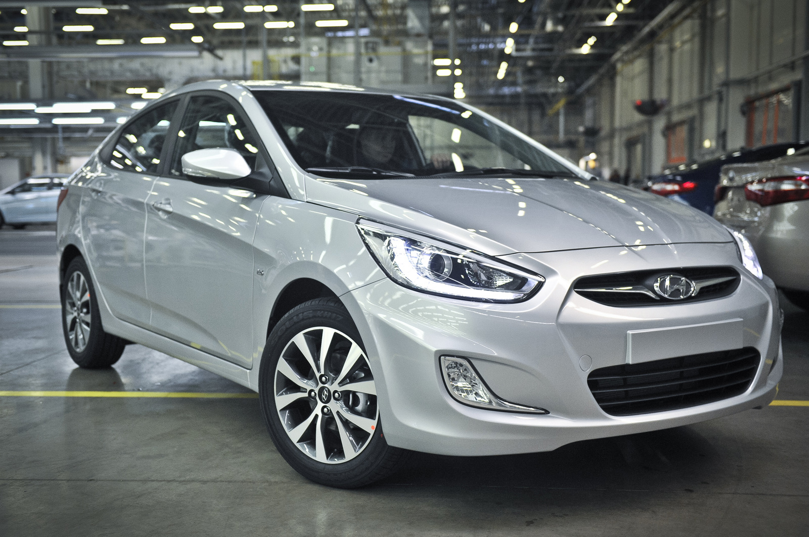 В минувшем году модель Hyundai Solaris разошлась в России тиражом почти 111 тысяч, уступив только Ладам. Такую популярность необходимо оправдывать и поддерживать. Так что рестайлинг пришёлся как нельзя кстати. Автомобиль не особо сильно изменился внешне, но зато стал ещё удобнее и привлекательнее в плане оснащения. В частности, автомобиль 2013 модельного года получил фары со светодиодными ходовыми огнями и линзованной оптикой вкупе с датчиком света (в комплектациях Comfort и Family AT для седана и Style и Dynamic AT для хэтчбека), новые легкосплавные колёсные диски (седан Family AT и хэтчбек Dynamic AT) и ряд других полезных изменений.