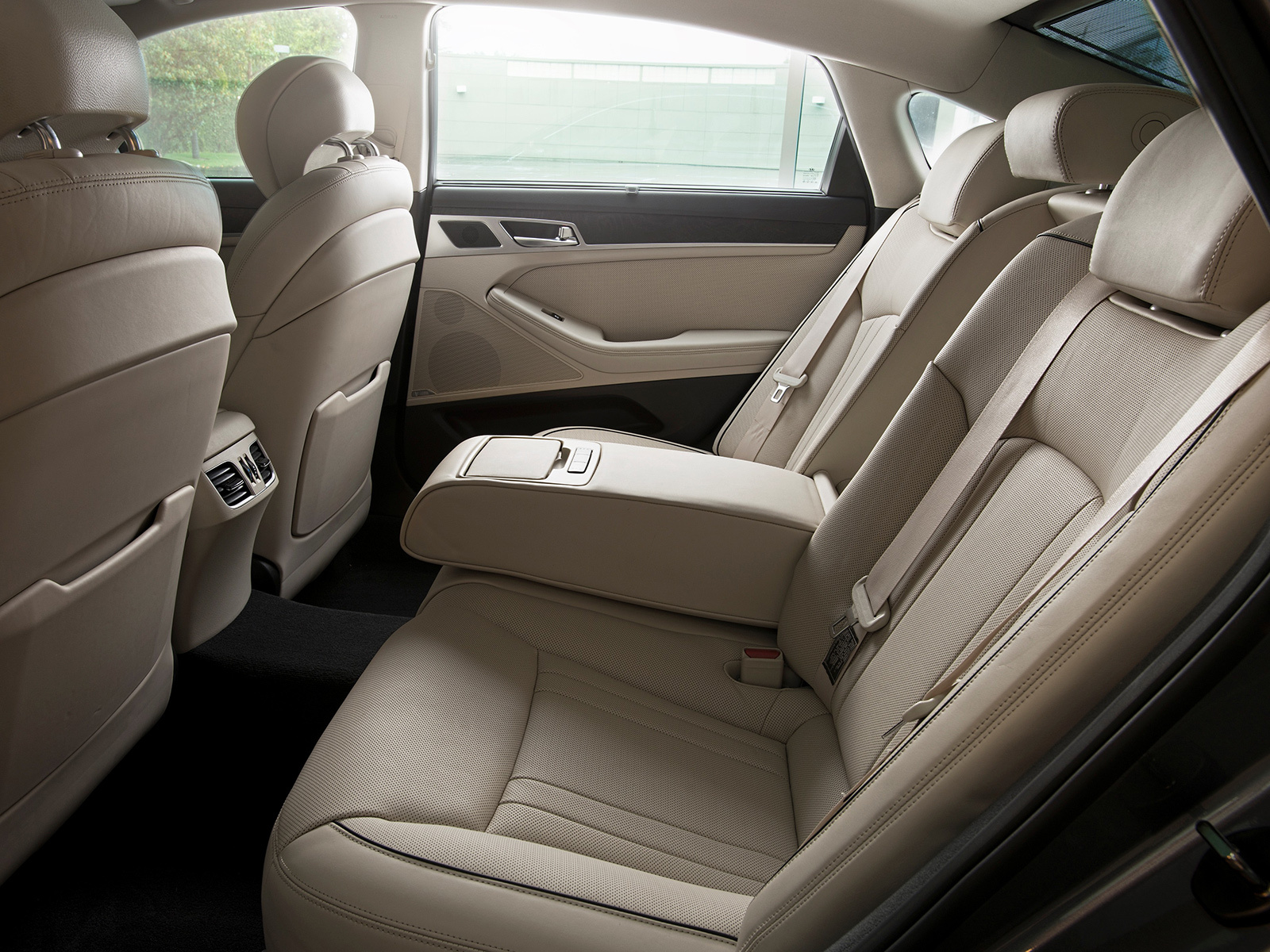 Автомобиль стал ещё больше. Предшественник и без того числился в переростках класса Е, а новинка совсем вплотную приблизилась к седанам сегмента F. Длина четырёхдверки достигла 4990 мм (+15 мм), ширина составляет 1890 (+27), а колёсная база — 3010 (+74). И только высота не изменилась — 1480 мм. Конечно, Chrysler 300C, у которого от «носа» до «хвоста» вмещается 5066 мм, недосягаем, но крупные бизнес-седаны Jaguar XF и Maserati Ghibli по длине уступают корейской машине — 4961 и 4971 мм соответственно. Более того, создатели Дженезиса без стеснения заявляют, что у него один из самых просторных интерьеров в классе: со своими 3483 л объёма салона Hyundai опережает Infiniti M (3356) и BMW пятой серии (3285).