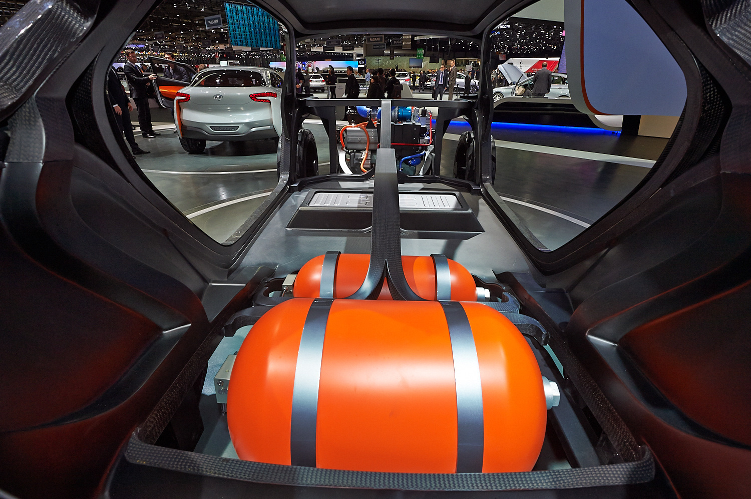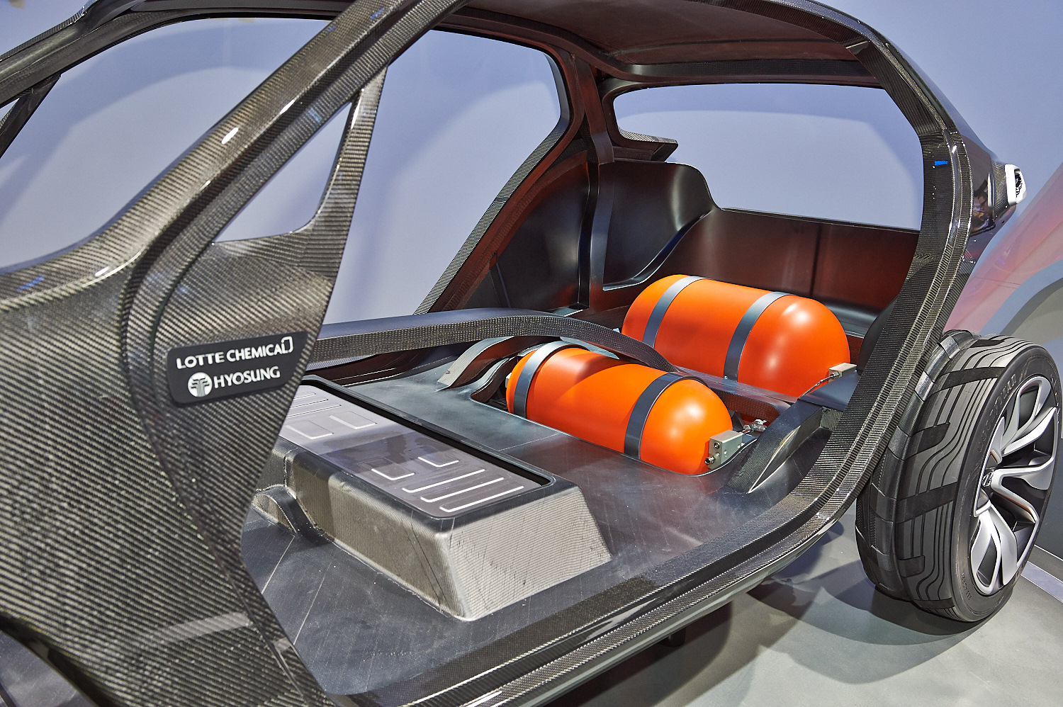 В основе концепта — трубчатая пространственная рама из пластика, армированного углеволокном. Составлена она из цельных полых «обручей», по внутренней поверхности оплетённых карбоновым волокном. Затем обручи соединяют друг с другом и с кузовными панелями, также выполненными из композита. В компании заявляют, что такой кузов на 70% легче аналогичного по размерам стального, причём обладает вдвое большей жёсткостью. По словам корейцев, это не просто концептуальная разработка: новая технология вполне может выйти в свет на серийных автомобилях в недалёком будущем. Подробности о концепте узнаем в Женеве.