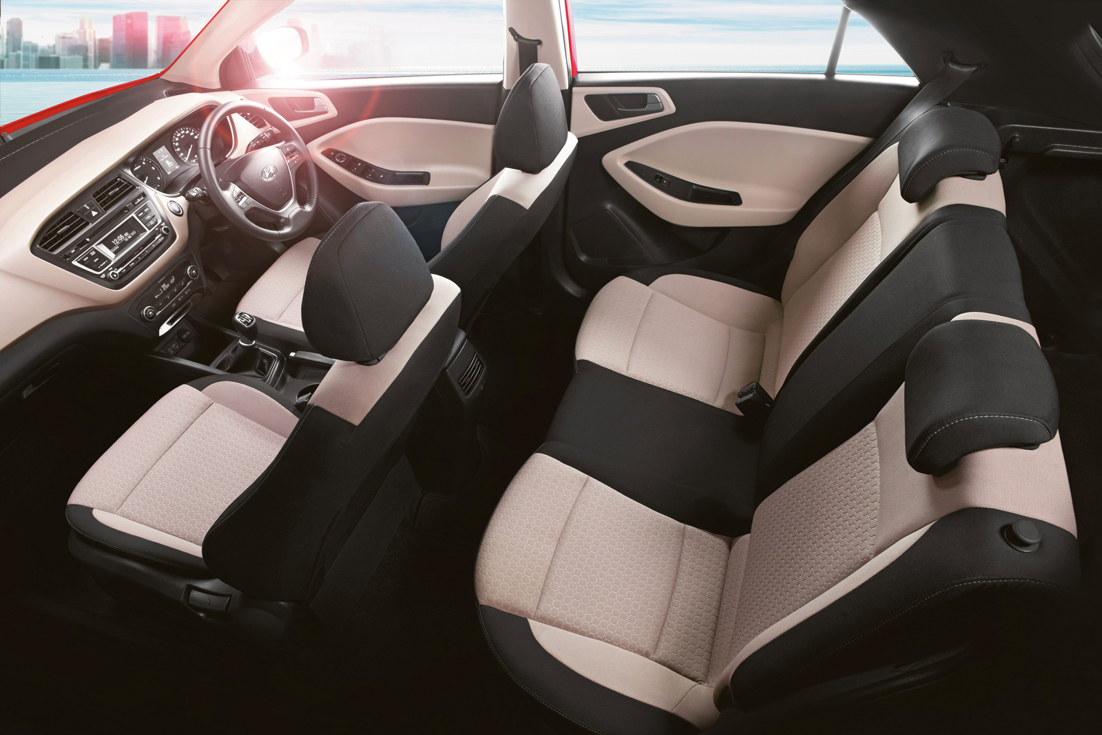 одним из самых просторных салонов в своём сегменте. (Общая длина автомобиля — 4035 мм.) Обещан комфорт для пятерых взрослых. По количеству места для ног Hyundai i20 заявлен как лучший в классе. Объём багажника тоже вышел на зависть конкурентам — 326 л. (Главный соперник Ford Fiesta имеет отсек на 30 л меньше.) Кроме того, только новый «кореец» может похвастаться открывающейся панорамной крышей. Также покупателей приятно удивит наличие светодиодной оптики и камеры заднего вида.