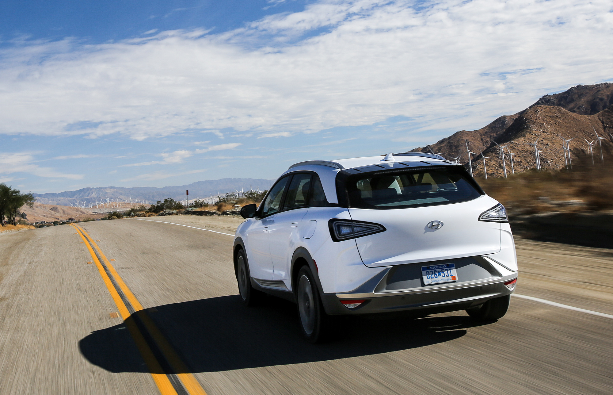 Тяговый электромотор на Hyundai Nexo развивает 120 кВт (163 л.с.) и 394 Н•м. Для сравнения, у Тусана FCEV было 136 л.с. и 300 Н•м. Неудивительно, что время разгона с нуля до 60 миль/ч (97 км/ч) улучшилось радикально — с 12,5 с до 9,5–9,9. Двигатель, как и прежде, получает ток от блока топливных элементов и тягового аккумулятора, однако поменялась их максимальная отдача. Электрохимические ячейки генерируют здесь 95 кВт (было 100), а батарея отдаёт до 40 кВт мощности (у Тусана было 24).