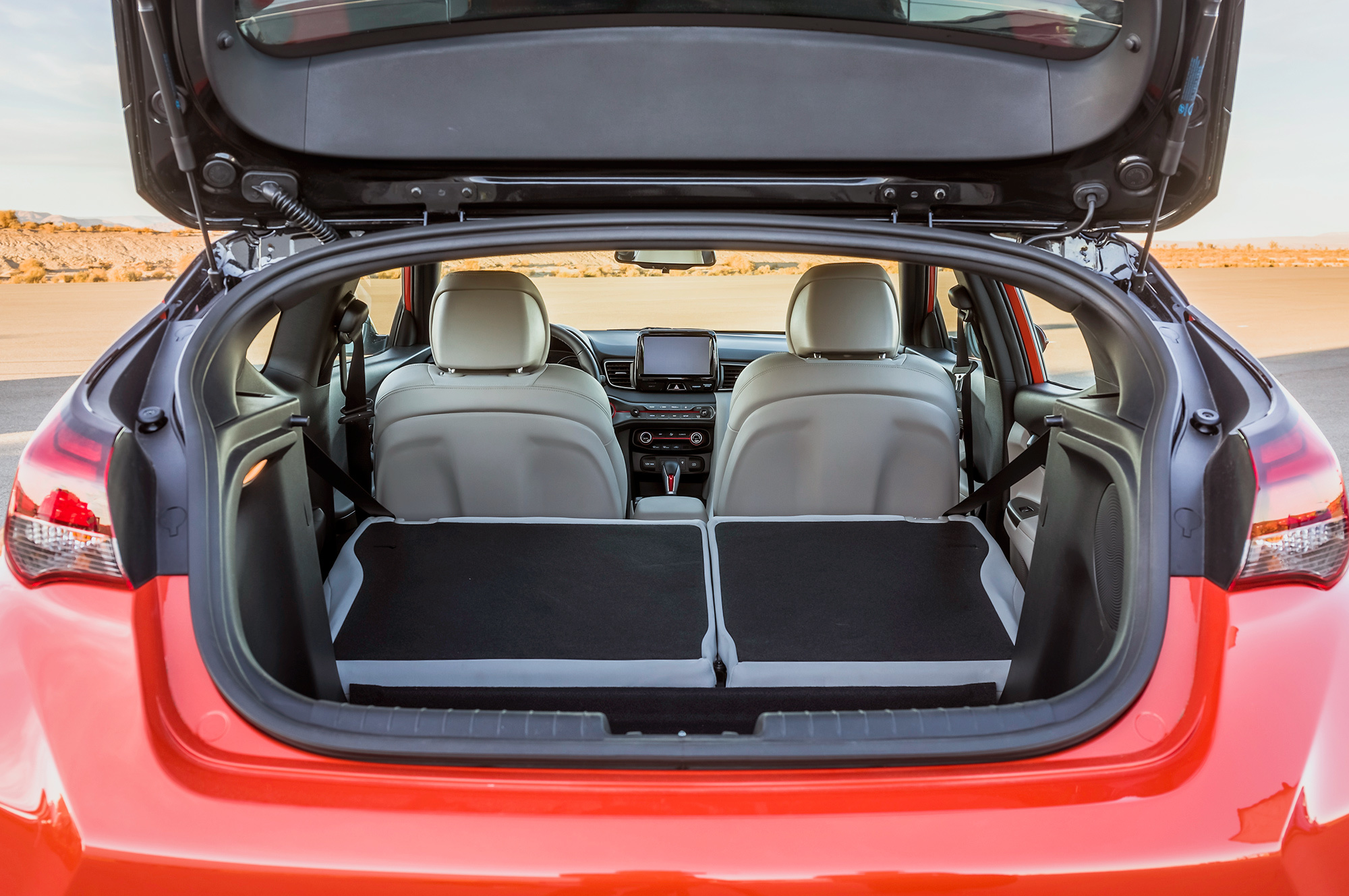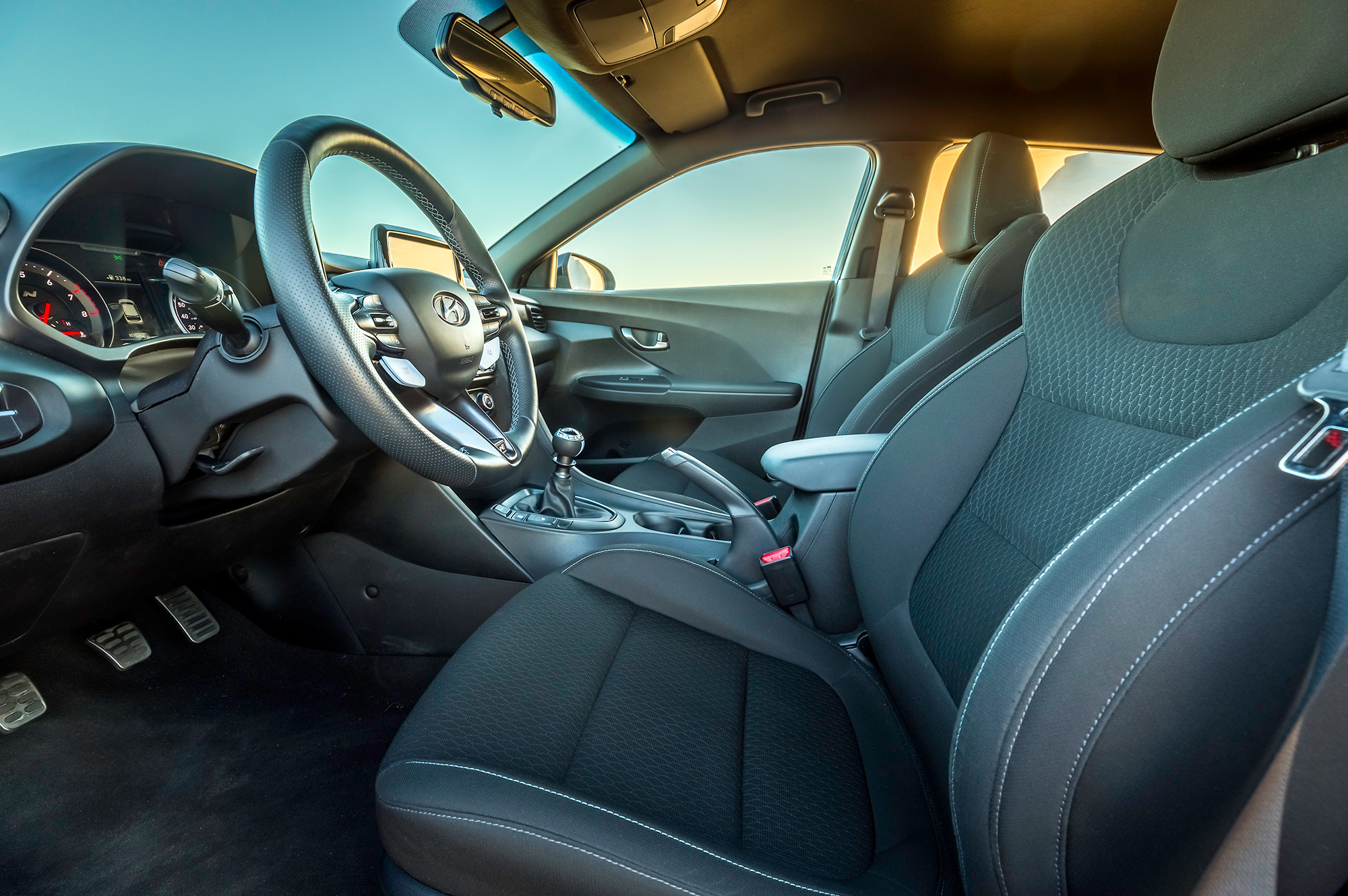 «Четвёрка» 2.0 с непосредственным впрыском и двухступенчатым впуском выдаёт 275 сил и 353 Н•м и трудится в паре с шестиступенчатой «механикой». О динамических характеристиках компания пока молчок, но известно, что Hyundai i30 N пакетом Performance до сотни ускоряется за 6,1 с при максимальной скорости 250 км/ч. По умолчанию на Veloster N ставится система выбора режимов движения N Grin Control (Normal, Sport, N, Eco и N Custom). Меняются калибровки двигателя, акселератора, выпускной системы с клапанным регулированием, рулевого управления и системы стабилизации, а также адаптивных амортизаторов и электронноуправляемой блокировки, которые входят в список базового оснащения.
