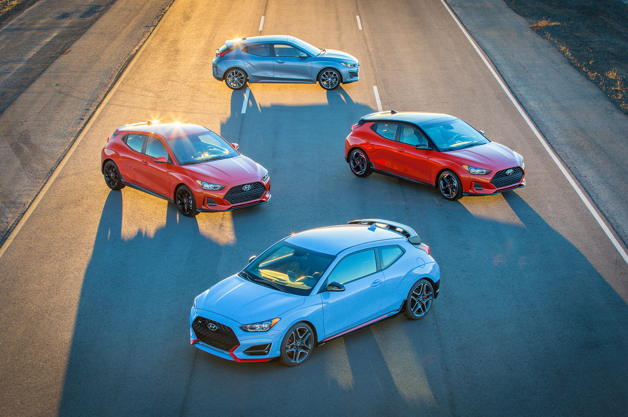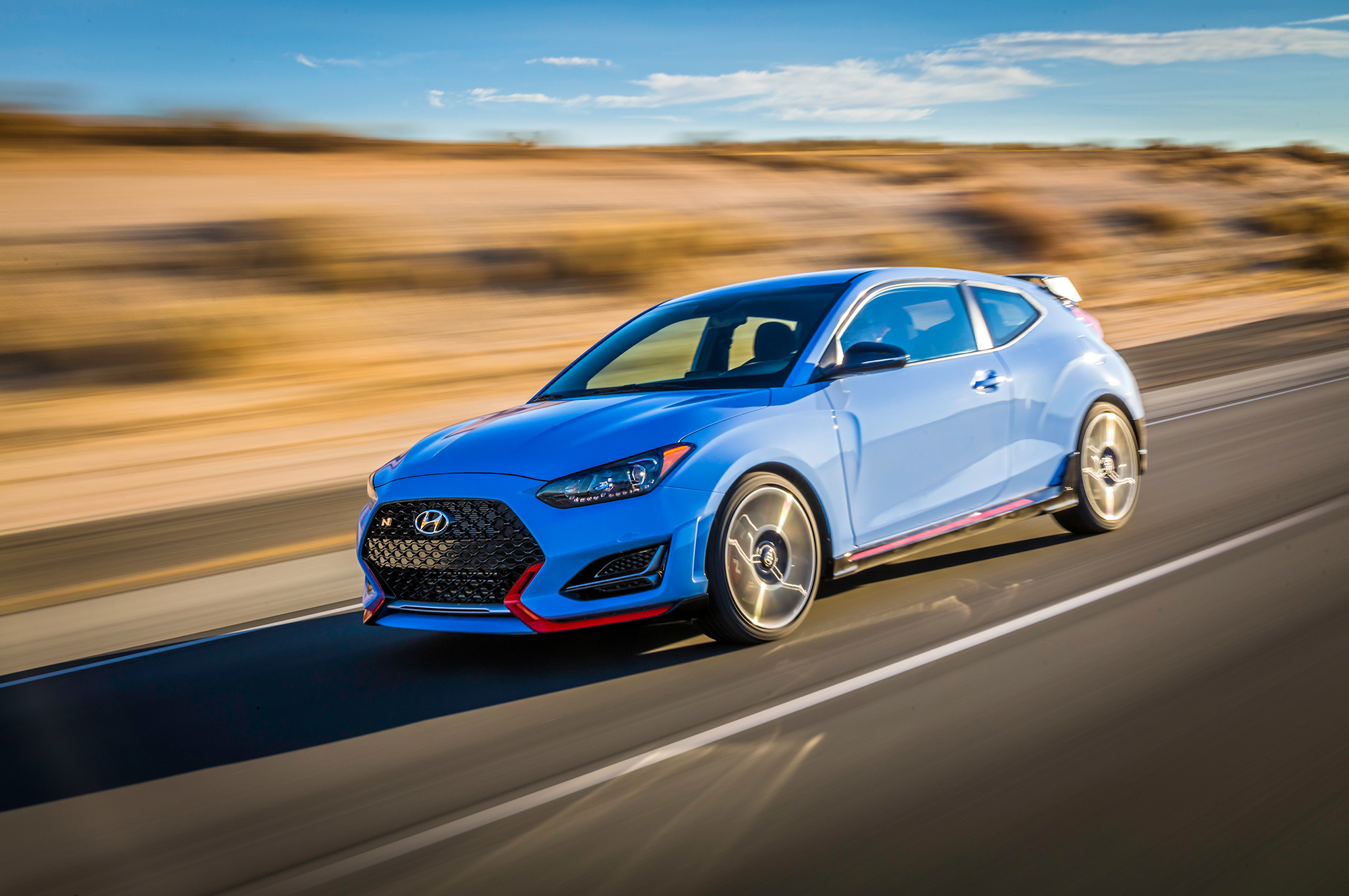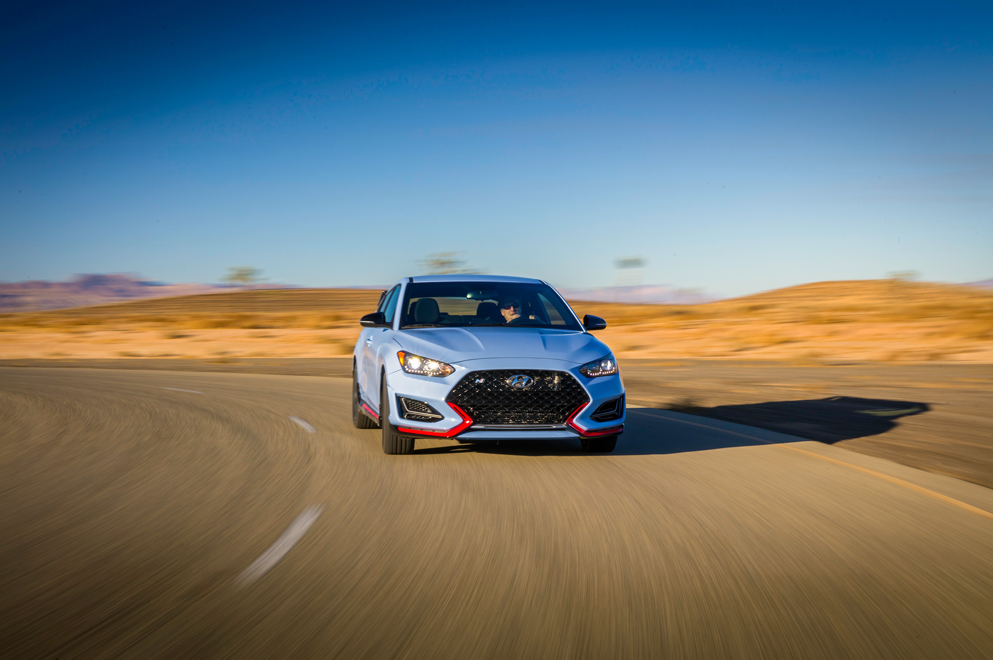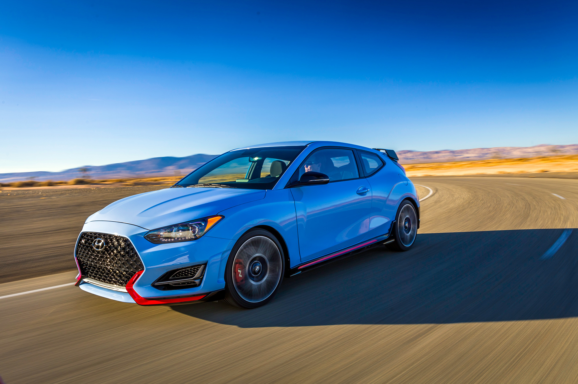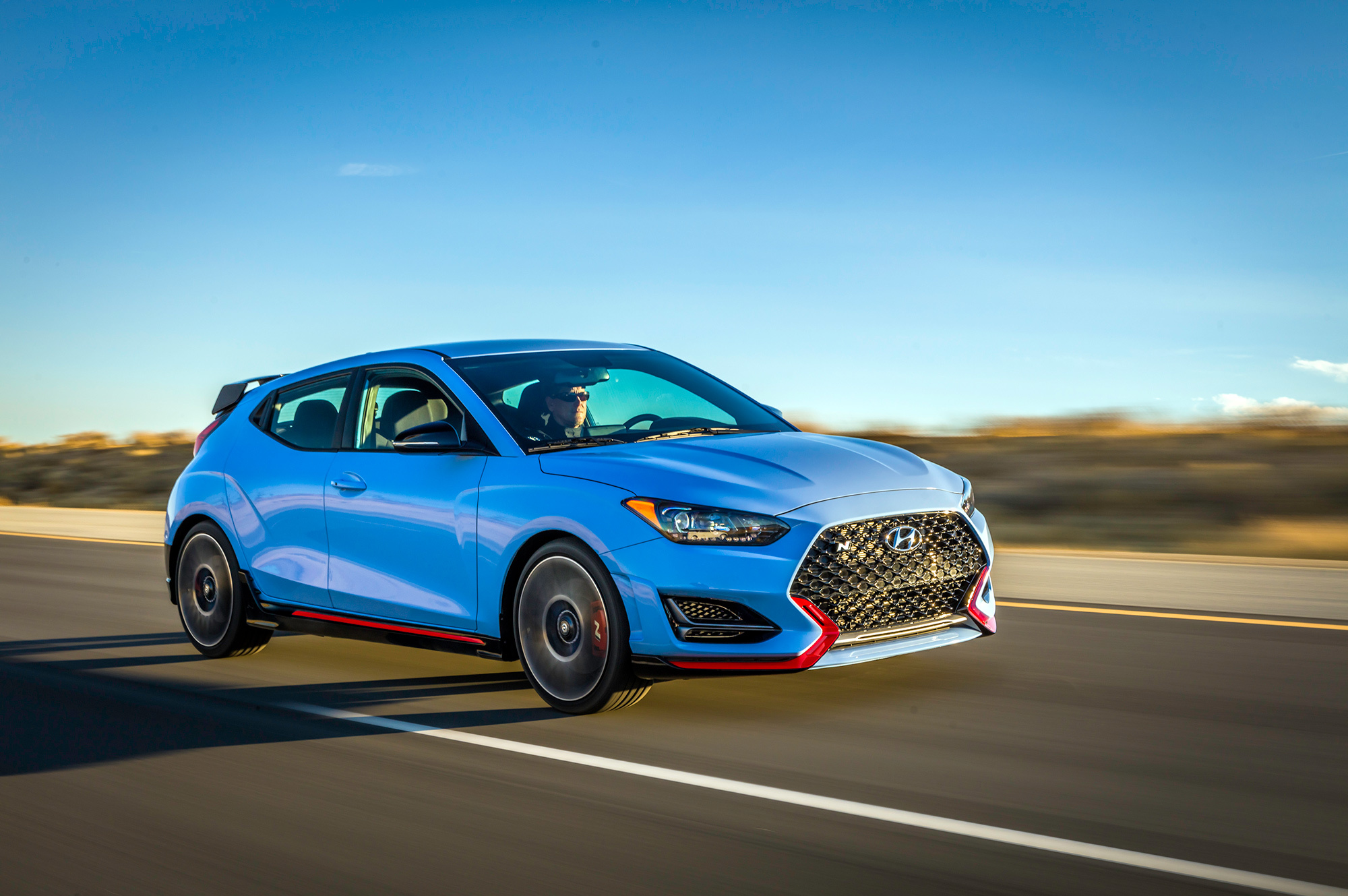 Венец творения ― невиданный прежде Veloster N. Это полноценный «заряженный» хэтчбек, чьи ездовые повадки оттачивали на Нордшляйфе. У автомобиля электроусилитель жёстко закреплён непосредственно на рулевой рейке в трёх точках, а у передней подвески McPherson ― уникальная геометрия ради лучшего сцепления колёс с дорогой и меньшего влияния силовых подруливаний. Ведь привод у Велостера N лишь передний, а наддувный бензиновый двигатель здесь изначально развивает столько же мощности, сколько аналогичный агрегат у соплатформенной пятидверки Hyundai i30 N с опциональным спортпакетом.