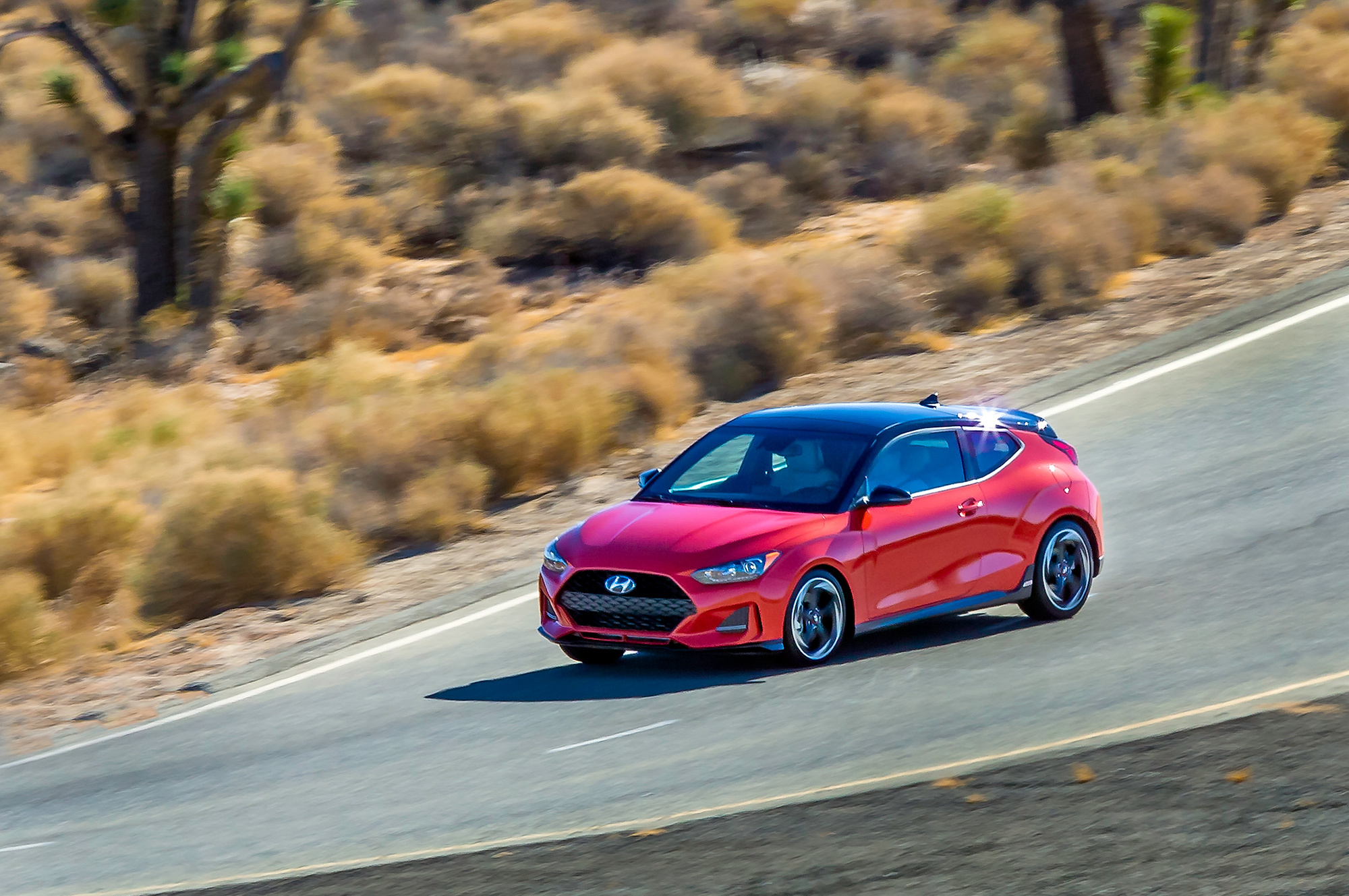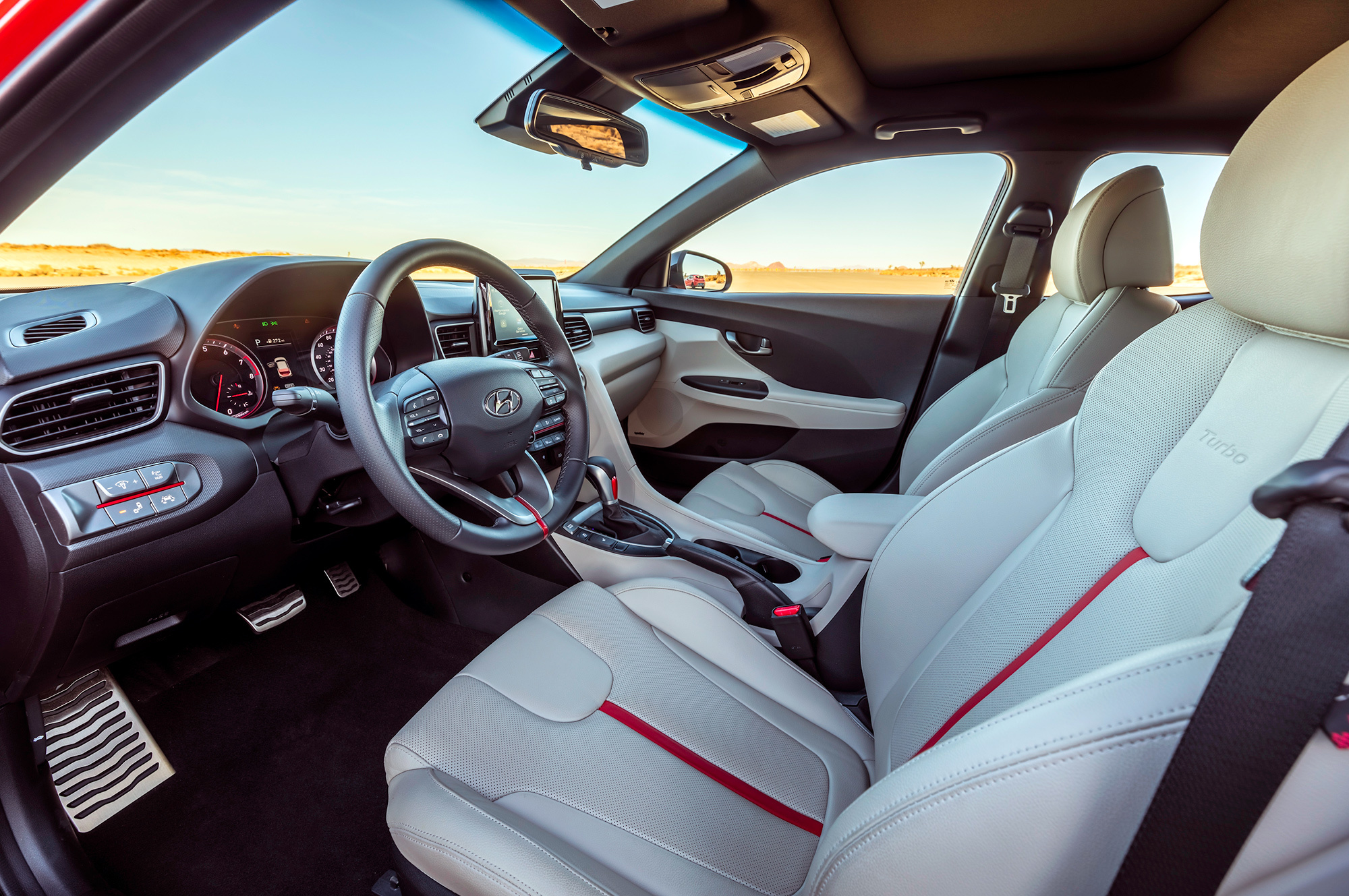Двигатель 1.6 T-GDI с фазовращателями на впуске и выпуске перекочевал с прежней модели. «Четвёрка» по-прежнему выдаёт 204 силы и 264 Н•м (в режиме overboost ― 274 Н•м). Как и атмосферный Veloster, наддувный изначально довольствуется системой стабилизации с функцией векторизации тяги. А вот по части управляемости должны быть различия. Ведь Veloster Turbo, R-Spec и Turbo Ultimate укомплектованы менее податливым шасси, более острым рулевым управлением, улучшенными тормозами и утолщёнными стабилизаторами поперечной устойчивости. Диаметр прутков увеличился с 23 мм и 15 мм до 24 и 19 соответственно.