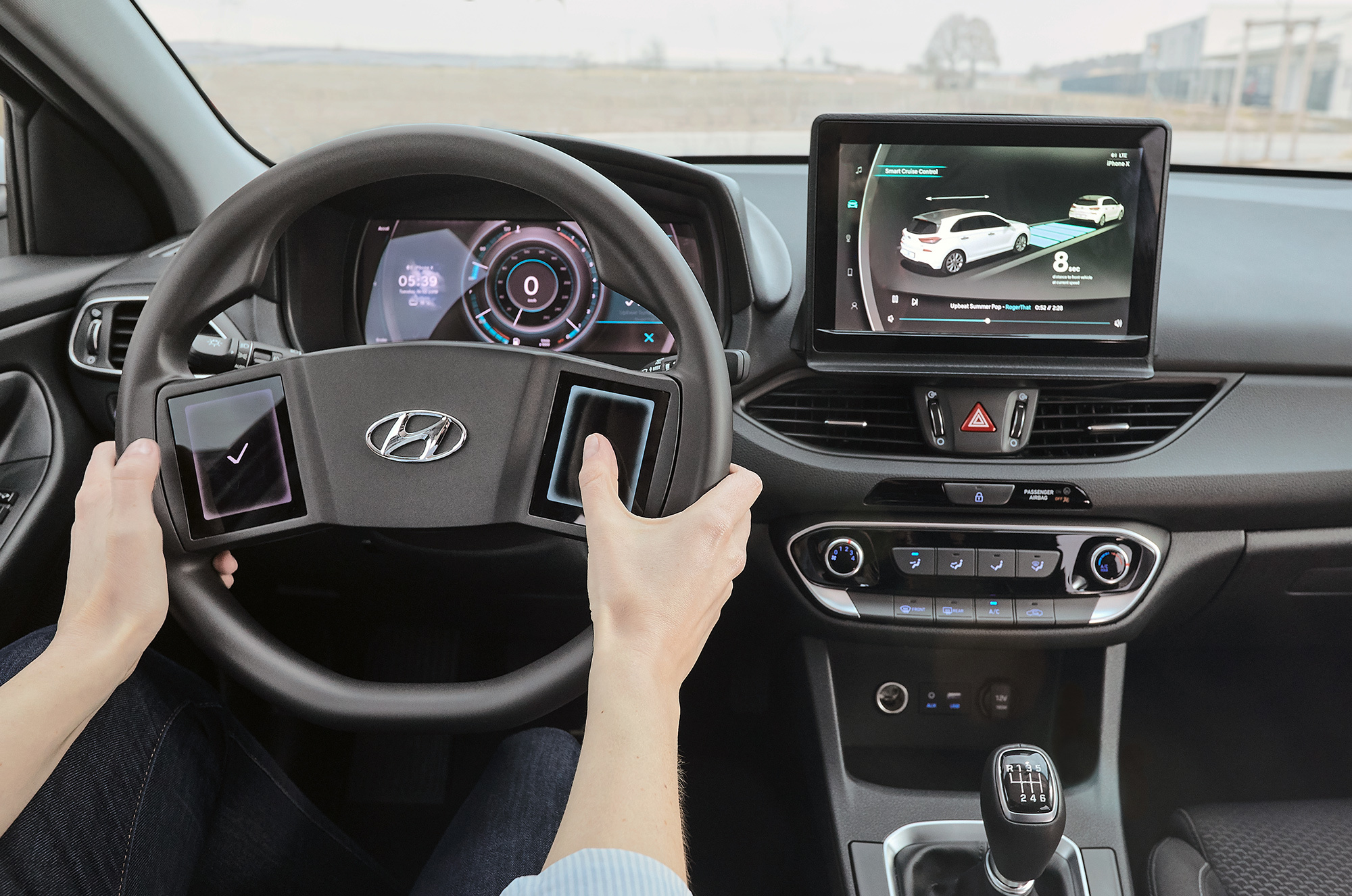 У Peugeot есть i-Cockpit, у Мерседеса — MBUX, у Акуры — Precision Cockpit, у Сеата — Digital Cockpit, у Renault — Smart Cockpit, и так далее. Концерн Hyundai виртуальным кокпитом на серийных маших похвастаться не может, но ведёт исследования с 2015 года, поглядывая на конкурентов. Теперь корейцы решились показать, что у них получается при создании «чистого интерфейса». Альтернативой физическим кнопкам Hyundai видит сенсорные панели с тактильной обратной связью на руле и многослойный дисплей (multi-layer display — MLD) вместо аналоговой приборки.