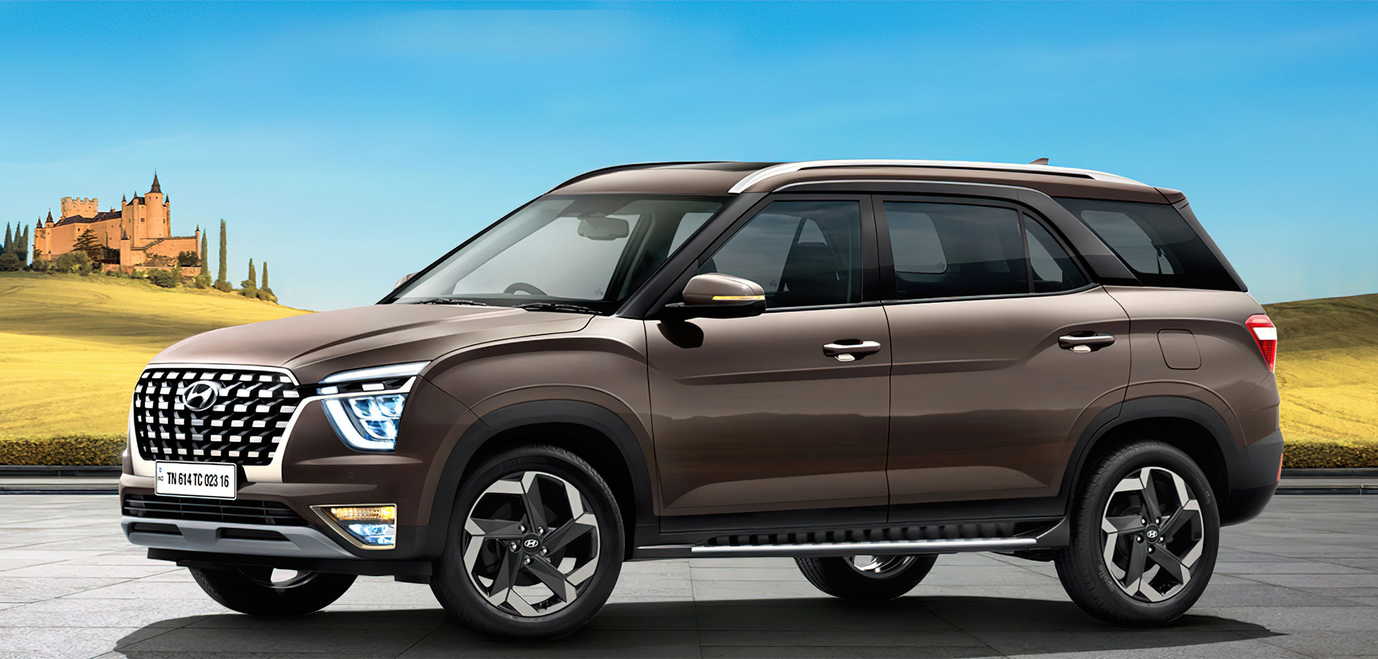 Восьмого апреля в Индии раскрылся кроссовер Hyundai Alcazar, который справедливо считается удлинённой версией паркетника Hyundai Creta второго поколения. Компания HMIL (Hyundai Motor India Ltd.) не просто увеличила задний свес, а растянула колёсную базу на 150 мм (до 2760). Под капотом оказались бензиновый атмосферник 2.0 MPI (159 л.с., 192 Н•м), которого у местной Креты нет, и дизель 1.5 CRDi (115 л.с., 250 Н•м). Оба идут с шестиступенчатыми «механикой» и «автоматом» при переднем приводе.