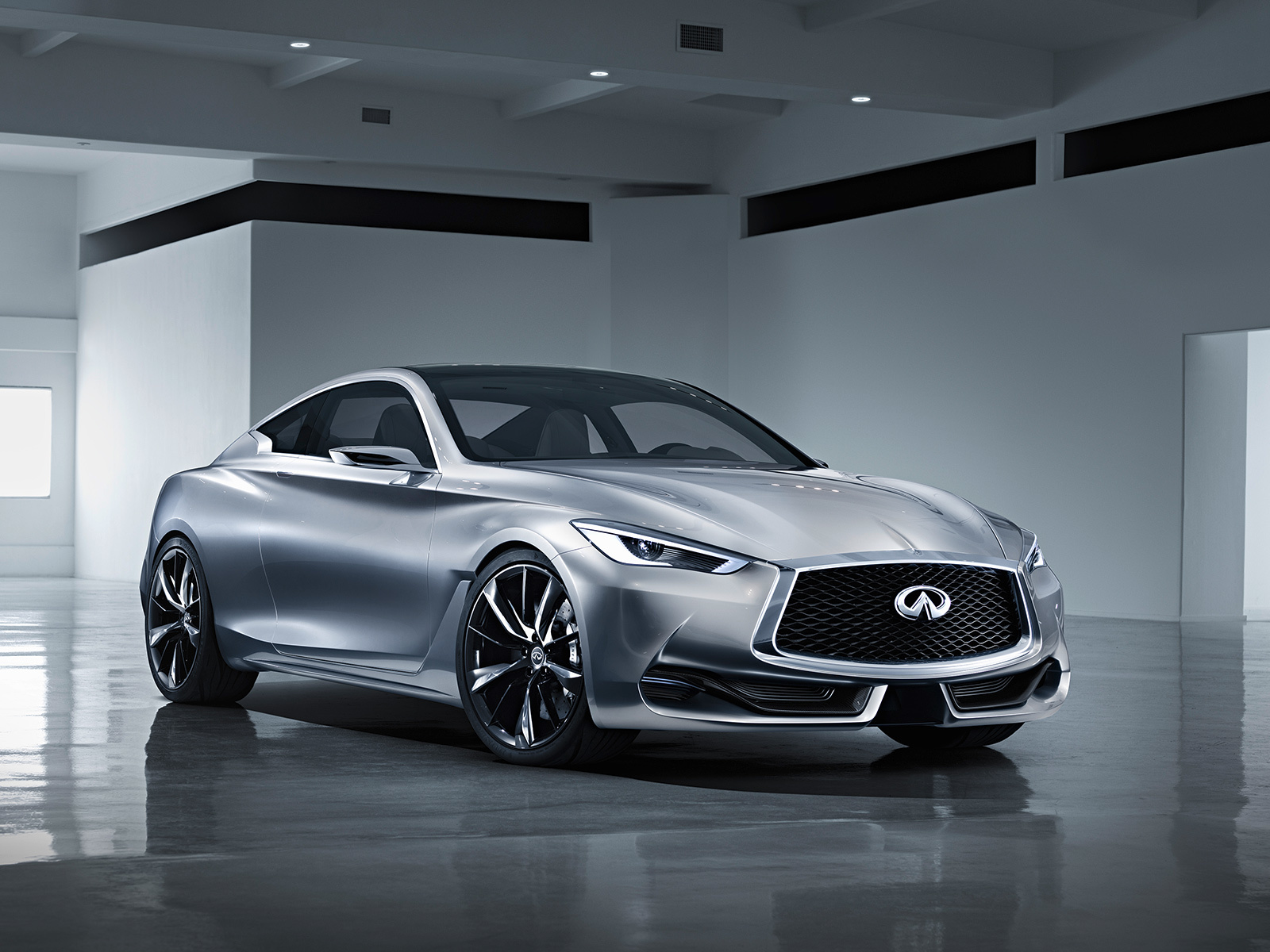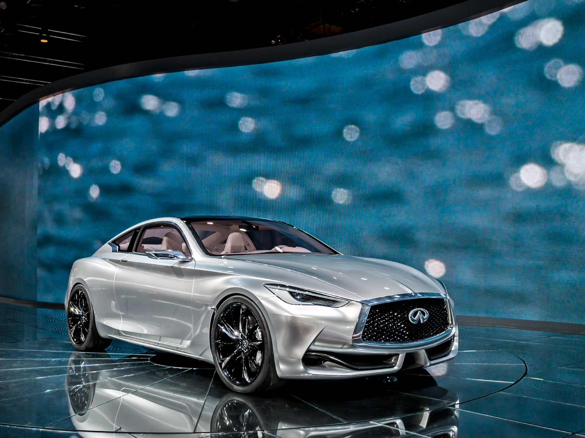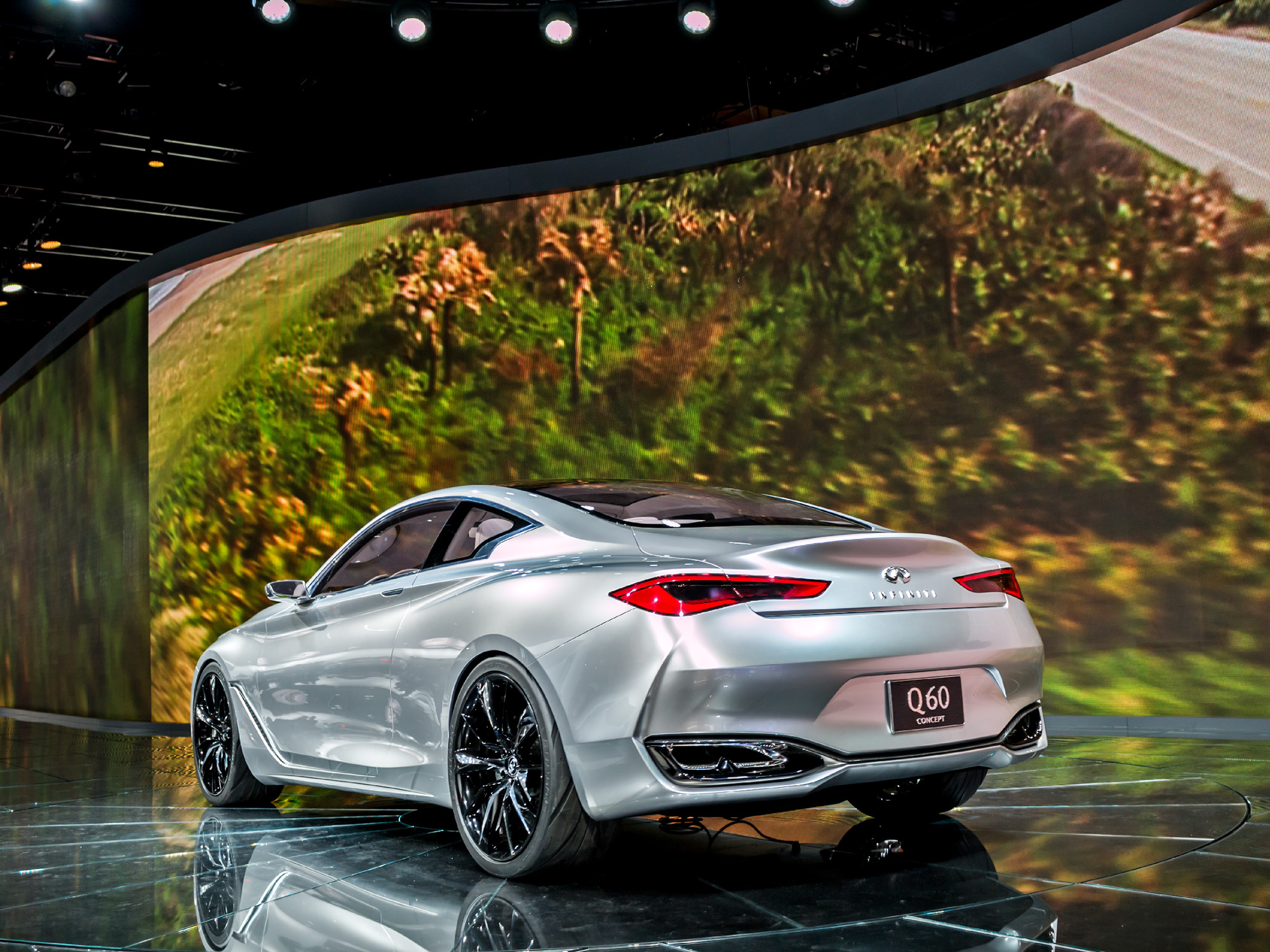 Стилистически новинка напоминает прошлогодний концепт Infiniti Q80 Inspiration. Габаритные размеры шоу-кара — 4690 мм в длину, 1865 мм в ширину и 1370 мм в высоту. Судя по всему, купе Q60 чуть крупнее своего главного конкурента — двухдверки BMW четвёртой серии.