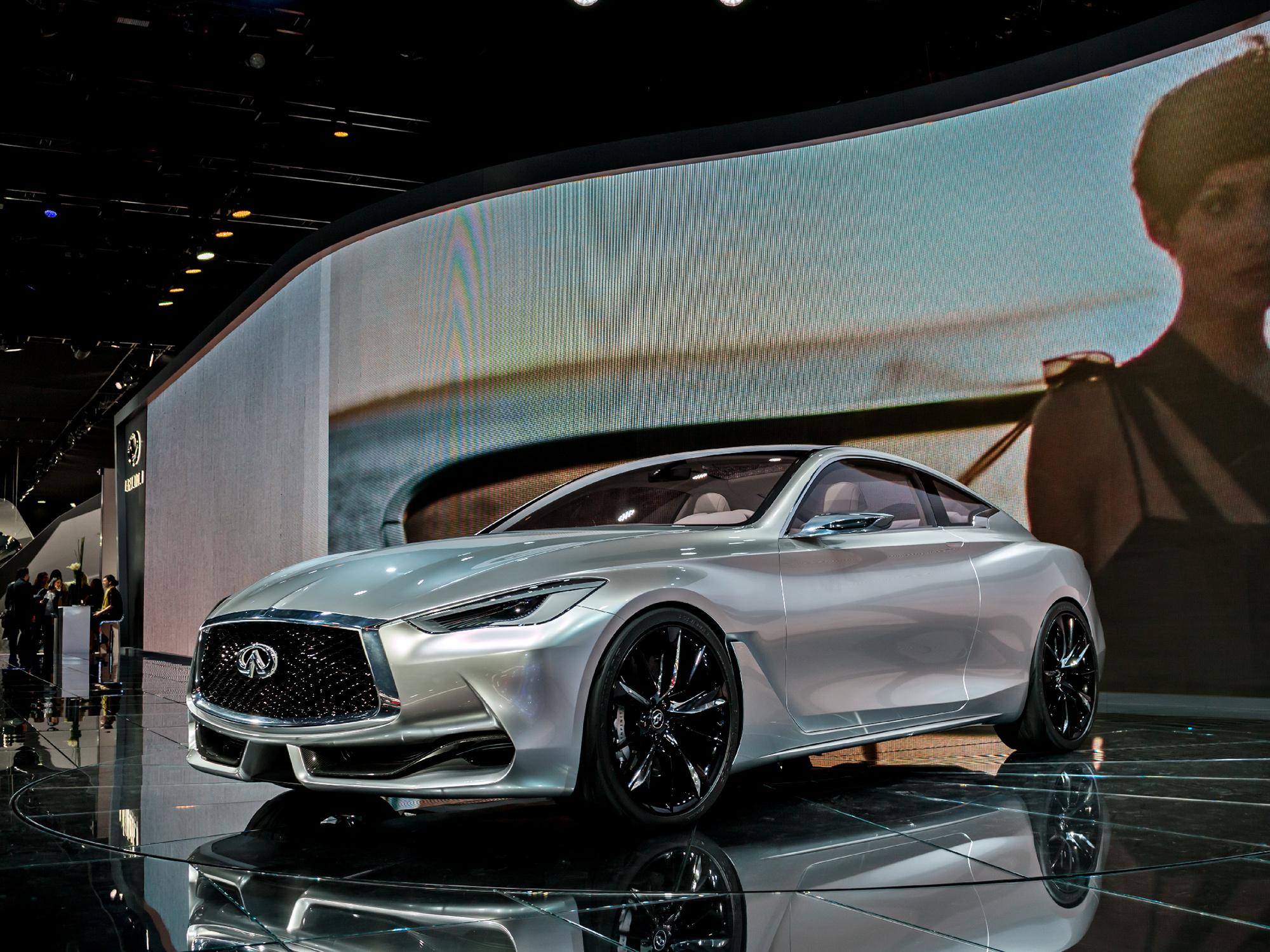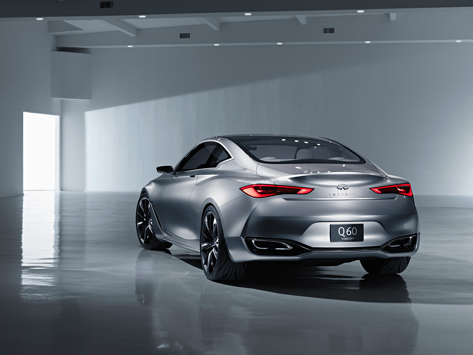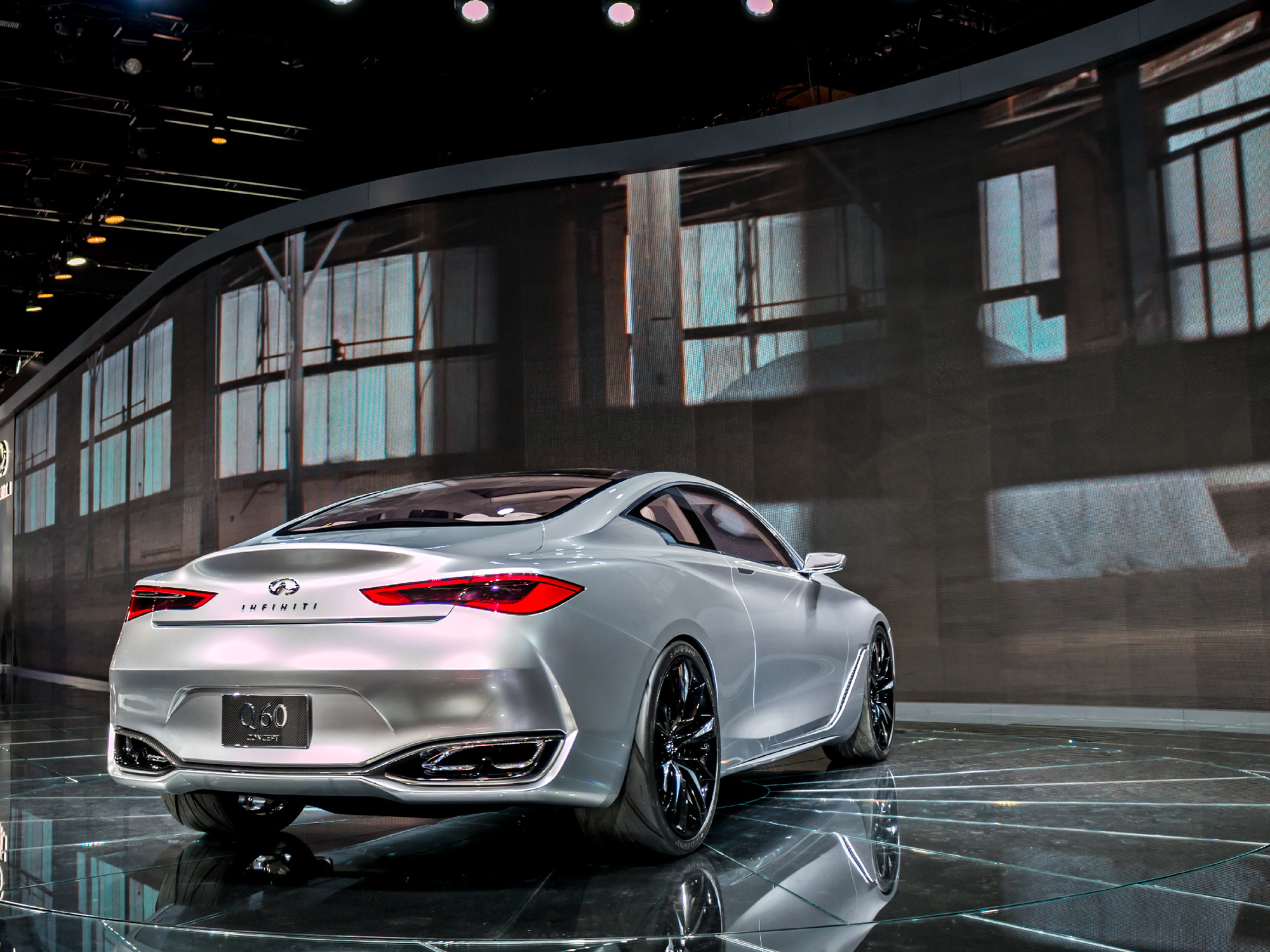 Стилистически новинка напоминает прошлогодний концепт Infiniti Q80 Inspiration. Габаритные размеры шоу-кара — 4690 мм в длину, 1865 мм в ширину и 1370 мм в высоту. Судя по всему, купе Q60 чуть крупнее своего главного конкурента — двухдверки BMW четвёртой серии.