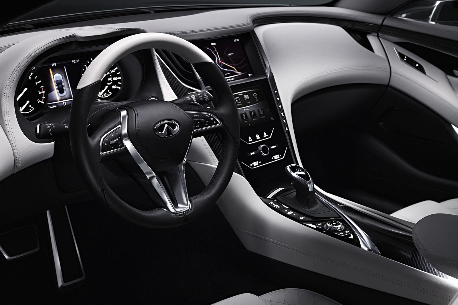 По технике информации мало. Известно, что прототип купе Infiniti Q60 оснастили твин-турбомотором V6 объёмом 3 л. Точную отдачу этого силового агрегата не раскрывают, но такой же двигатель входил в состав гибридной установки шоу-кара Q80 Inspiration. Там он выдавал 450 л.с. По предварительным данным, мотор агрегатируется с семиступенчатым «автоматом». Вероятнее всего, чуть позже мы увидим и открытую версию двухдверки Q60.