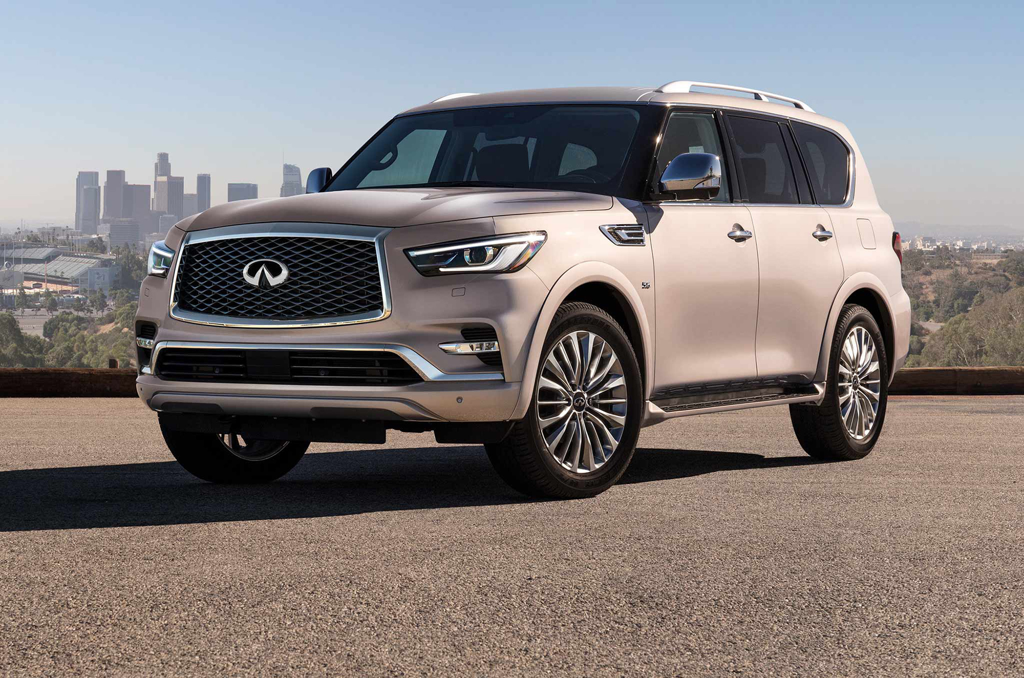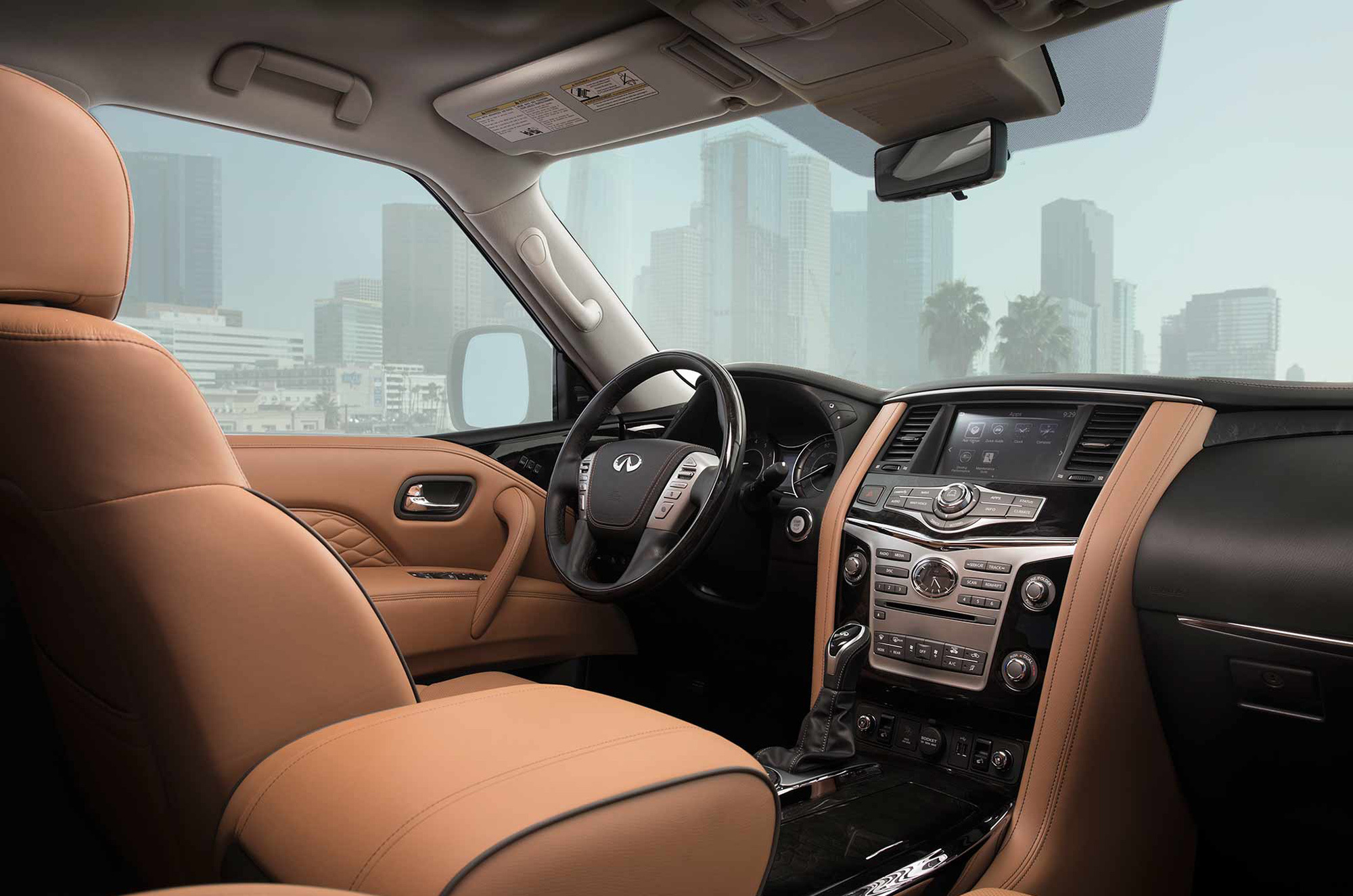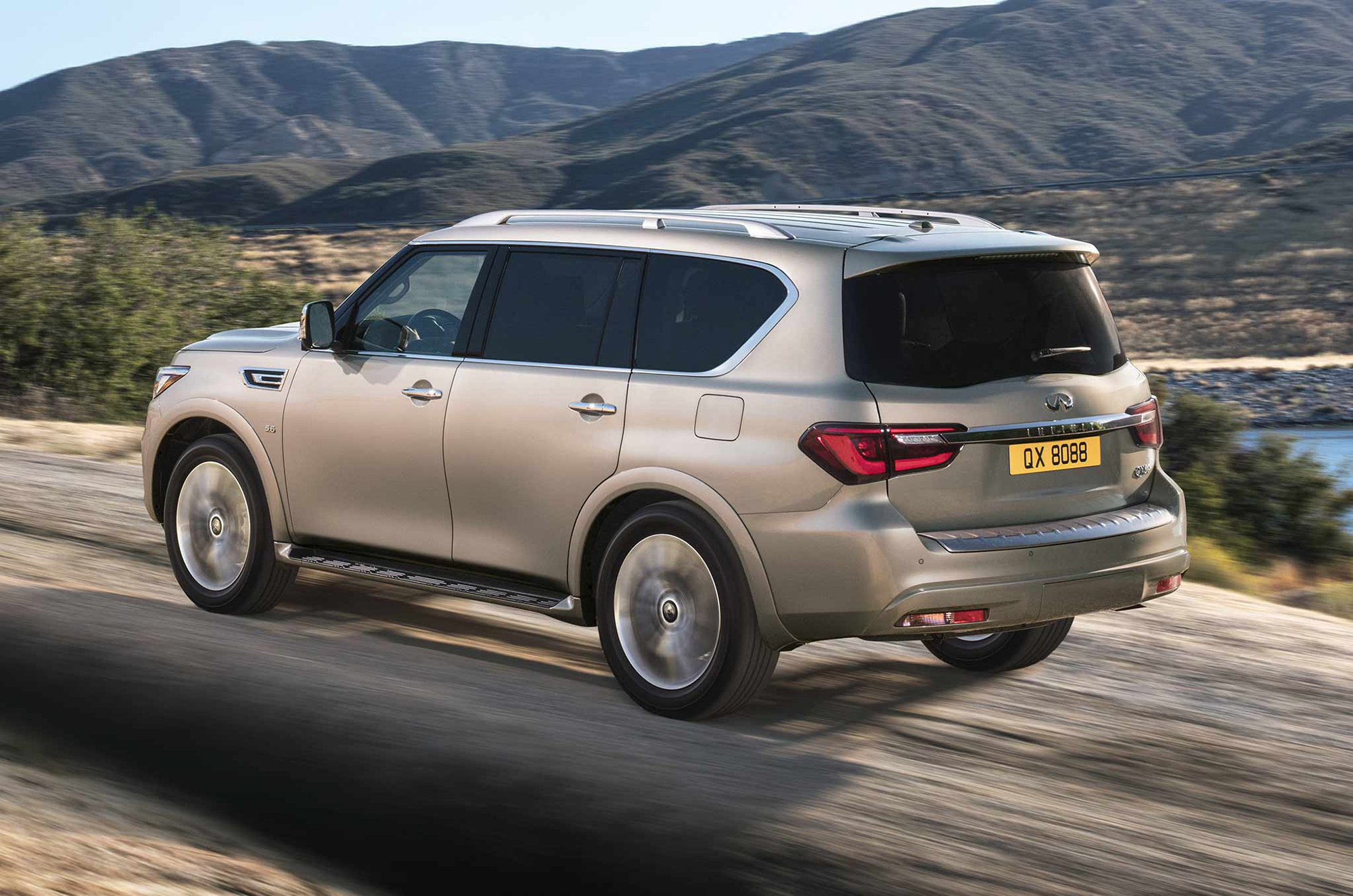 Флагманский внедорожник Infiniti обзавёлся серьёзно переделанной передней частью. У модели новые светодиодные фары, расположенные выше, чем прежде, капот иной формы и решётка радиатора, передние крылья с другими декоративными решётками, бампер с иной оптикой и более крупным воздухозаборником. Задняя часть тоже заметно посвежела ― появились новые диодные фонари, поменялся внешний вид у бампера и двери багажника. Наконец, дизайнеры подновили дизайн колёс с шинами прежней размерности 275/50 R22 на обеих осях. Дорожный просвет, скорее всего, тоже остался при тех же 257 мм.