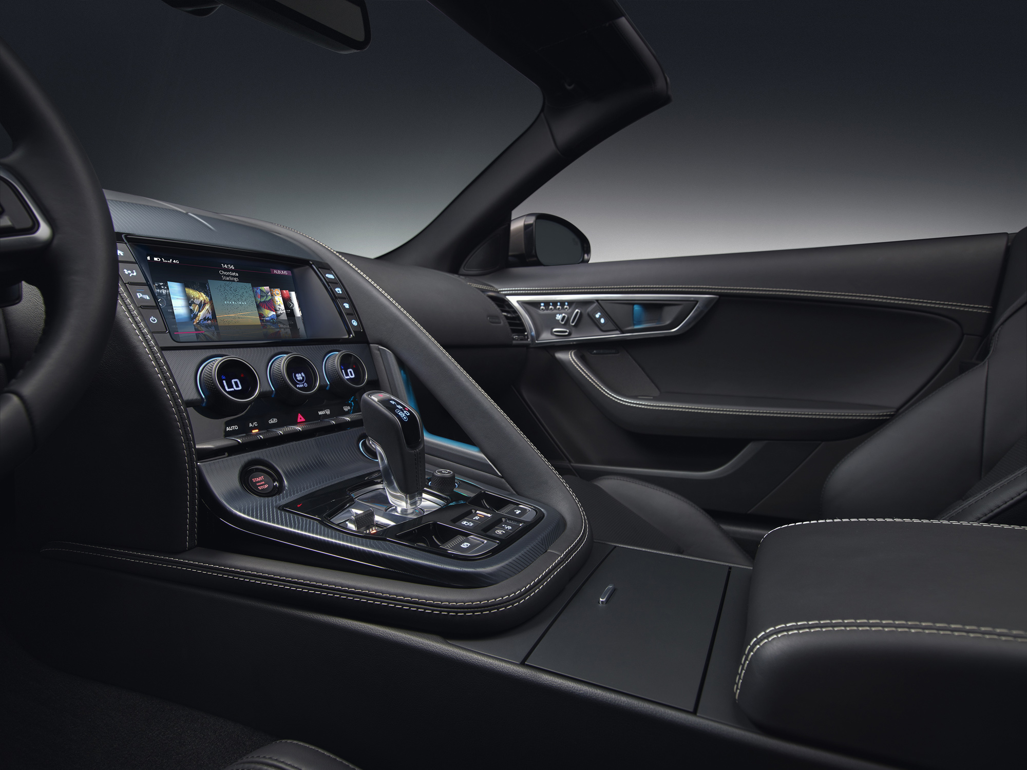 При рестайлинге дизайн интерьера был сохранён, но добавлены свежие материалы отделки (в частности, алюминиевые панели с несколькими новыми фактурами) и новые цветовые сочетания. Кожу Siena Tan теперь можно заказать не только на SVR, но на любом варианте машины. А в ассортименте помощников появился полуавтономный парковочный ассистент (он берёт на себя рулевое управление, оставляя водителю газ и тормоз). В продажу обновлённая линейка «эф-тайпа» поступит во втором квартале нынешнего года.