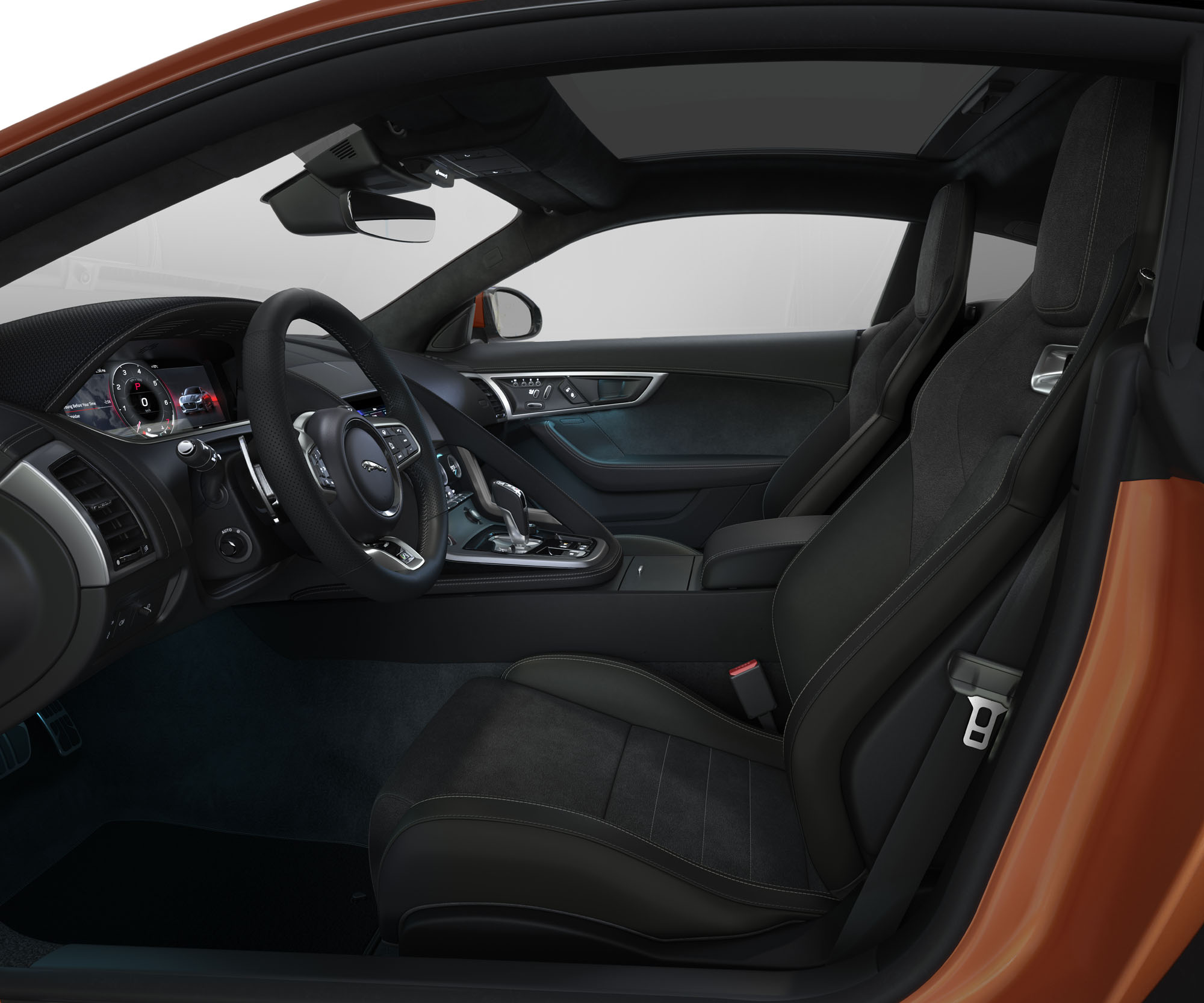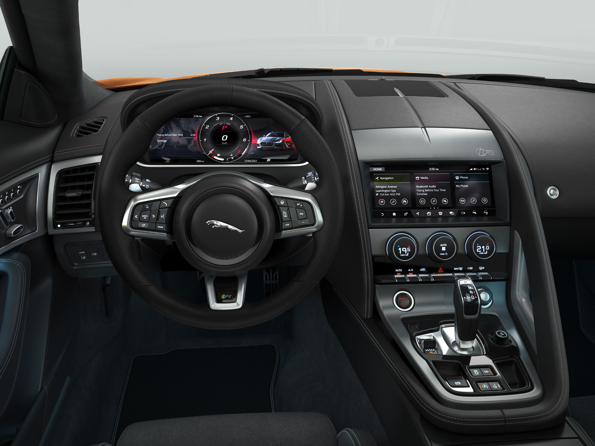 Новое «чёрное» издание R-Dynamic Black пополнило семейство Jaguar F-type 2022 модельного года. Вслед за Reims Edition машины в таком исполнении (родстер и купе) получили внешний декор Black Pack, который дополнили 20-дюймовые глянцевые чёрные диски с пятью сдвоенными спицами Style 5039. Этой версии «эф-тайпа» положены замшевый потолок Ebony и замшевое обрамление цифровой приборки (12,3 дюйма), матовые алюминиевые подрулевые лепестки, монограммы на приборке, дверях и креслах, пороги с подсветкой и надписью Jaguar.