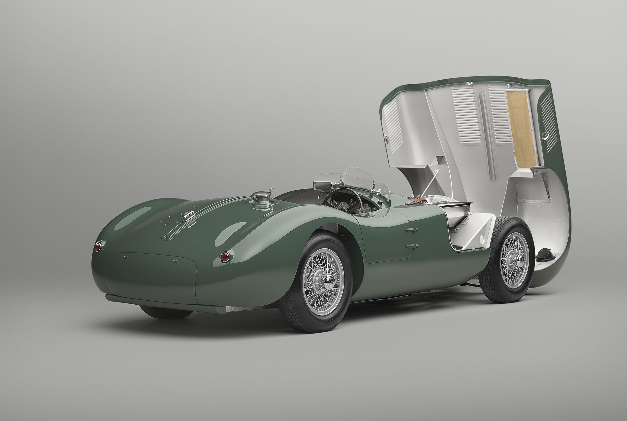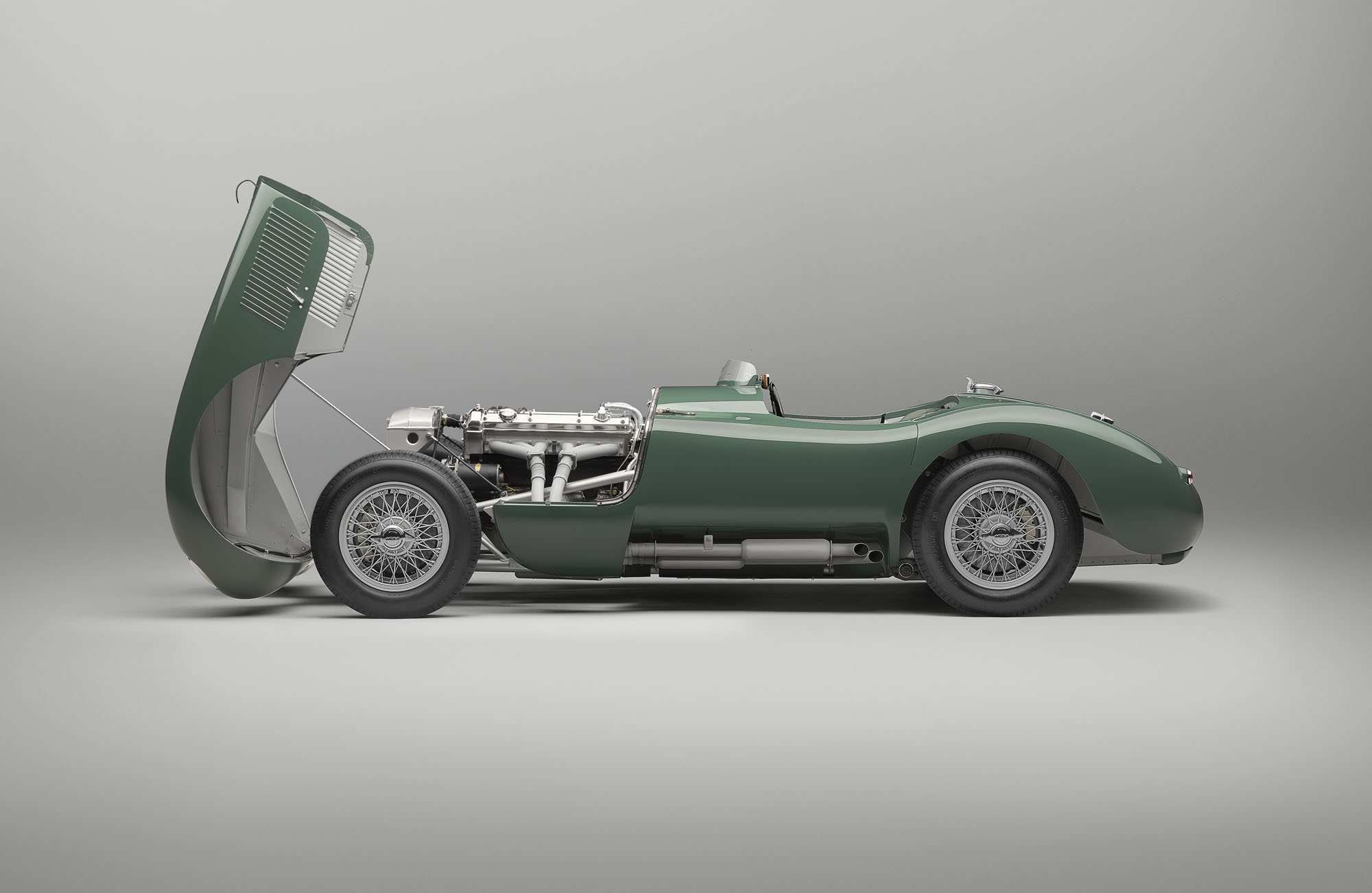 Отделение Jaguar Classic представило Jaguar C-type Continuation, ставший очередным шагом в программе перезапуска классических Ягуаров Classic Continuation после таких шедевров, как E-type, XKSS и D-type. Речь не о реплике, а о буквально воссозданной модели с минимальными расхождениями в сравнении с образцами 1951–1953 годов. Так, Jaguar C-type был первым спорткаром с дисковыми тормозами, которые он обрёл в 1952 году. В 1953-м модель была дополнительно улучшена: появились 16-дюймовые 60-спицевые колёсные диски, тяга Панара на задней оси, воздухозаборник на капоте.