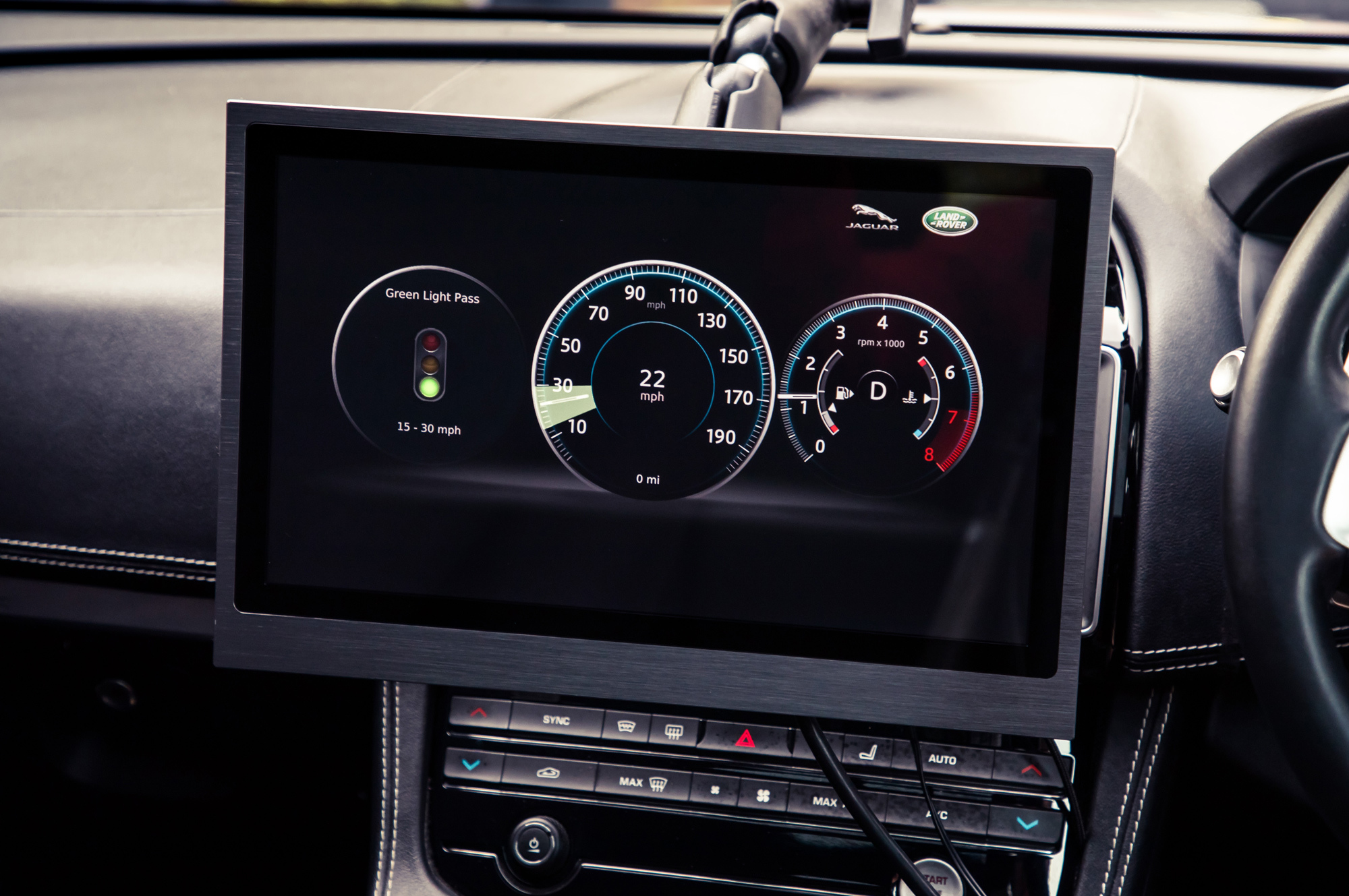 В рамках проекта по развитию беспилотников и машин со связью с инфраструктурой (V2X) UK Autodrive компания Jaguar Land Rover испытала новую функцию Green Light Optimal Speed Advisory (GLOSA) — «консультанта по оптимальной скорости для проезда на зелёный свет». Смысл понятен из названия: электроника получает от светофора график переключений и подсказывает водителю, с каким темпом надо ехать, чтобы попасть в зелёное «окно» без необходимости остановки.