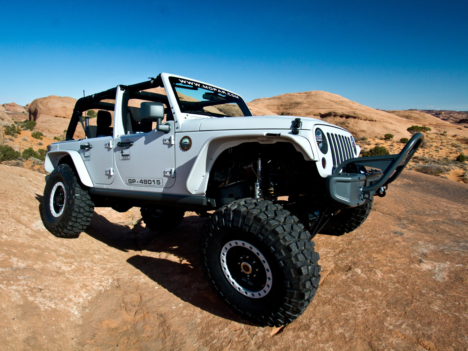 Для модели Wrangler мопаровцы подготовили сразу три пакета доработок. Первая — облегчённая версия, вторая — с модернизированным оффроуд-бампером и колёсами с бедлоками, третья — с 37-дюймовыми колёсами, а четвёртая — с двухдюймовым лифт-китом и колёсами с бедлоками. Кроме того, есть ещё модель Jeep Sand Trooper II — внедорожная версия Trooper с двигателем HEMI V8, усиленными осями Mopar и иным бампером.