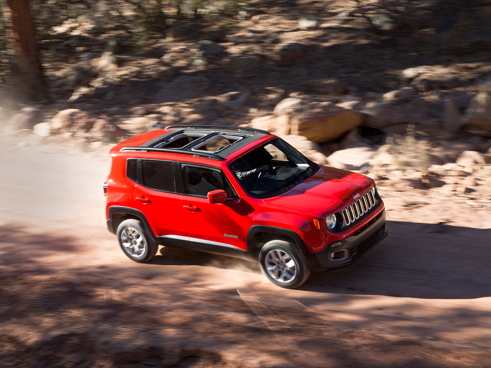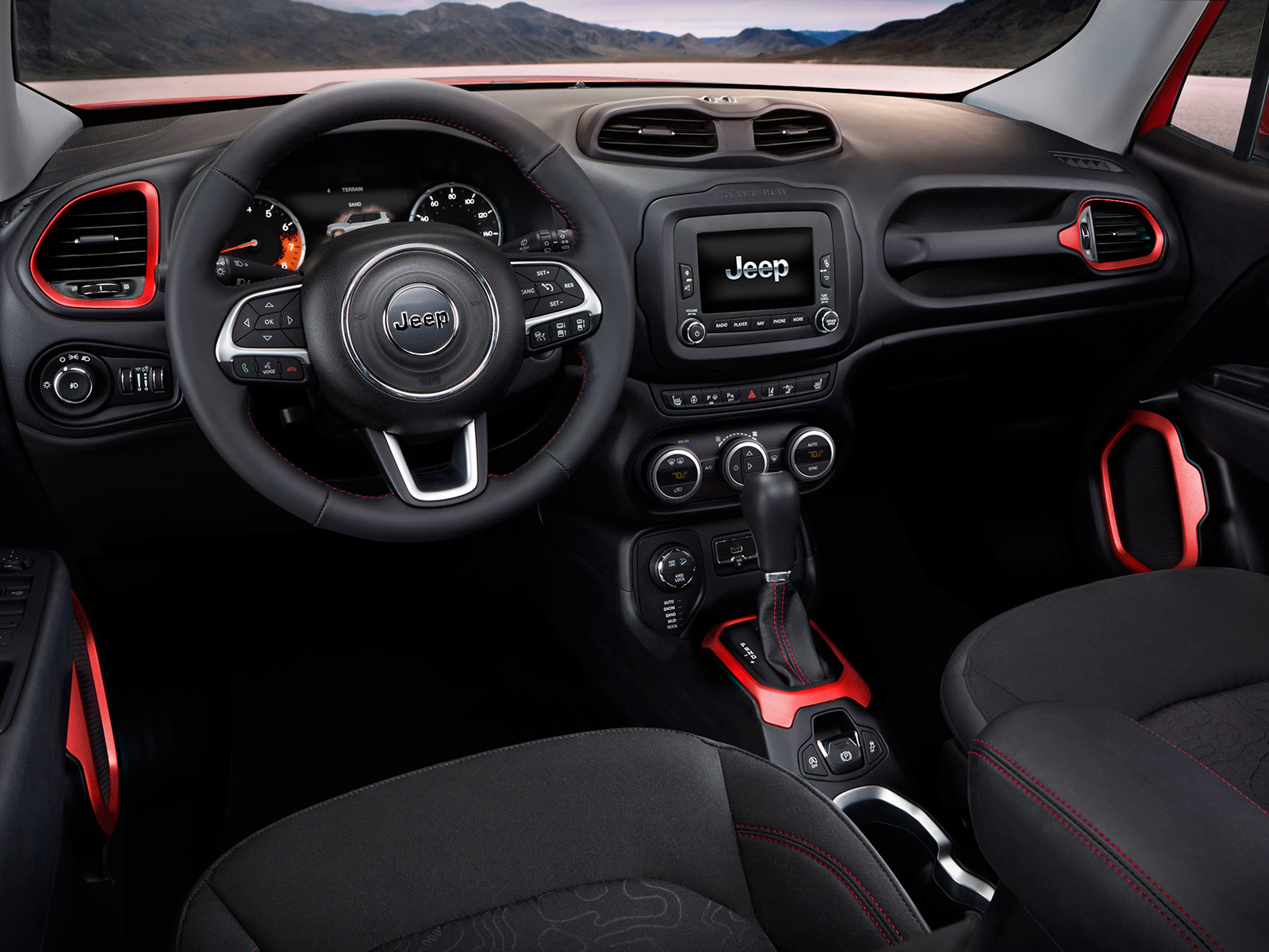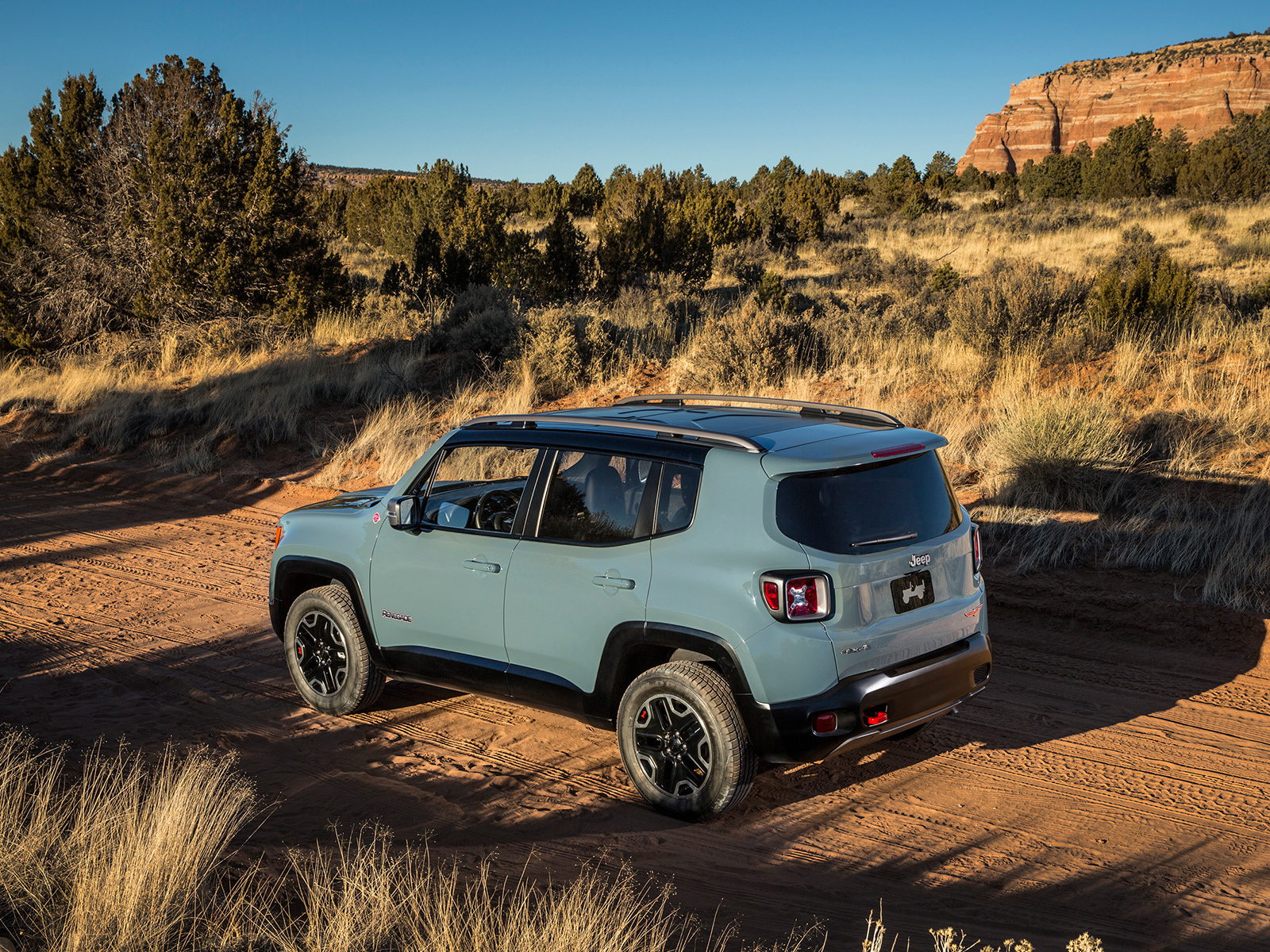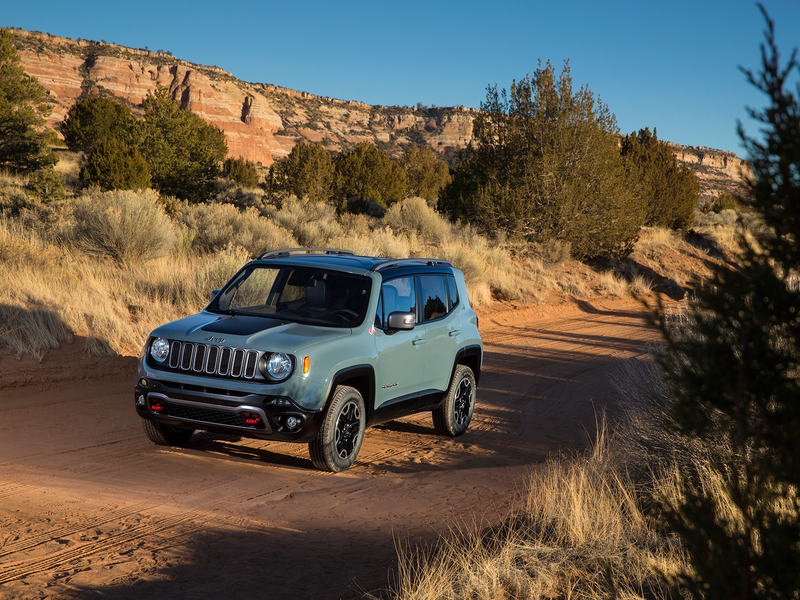 Несмотря на компактный размер и внешнюю несерьёзность, кроссовер Jeep Renegade обещает быть вполне способным на бездорожье. По определению, конечно, машина оснащается передним приводом, но будет и подключаемый полный с возможностью выбора одного из четырёх режимов работы: «Автоматический», «Снег», «Спорт», «Грязь/Песок». В версии Trail Rated машина получает на 20 мм больший клиренс, принудительную блокировку «центра» с понижающей передачей, систему помощи при спуске и дополнительный режим работы полноприводной трансмиссии — «Камни».