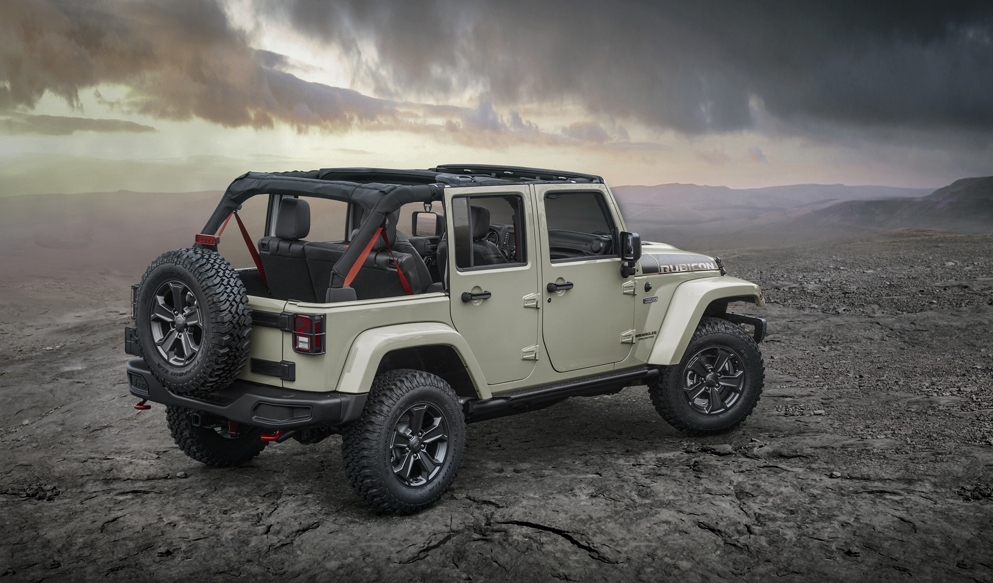 Как ясно из названия, основан Rubicon Recon на серийном Рубиконе, который и так считается более продвинутым вариантом, чем базовый, в плане покорения песков, камней, топей и снегов. Но Recon сделал ещё шаг вперёд. На обоих мостах Dana 44 — сверхпрочные литые крышки дифференциалов, в переднем — усиленные трубы, увенчанные высокопрочными коваными кулаками. Сами межколёсные дифференциалы — с электронной блокировкой.