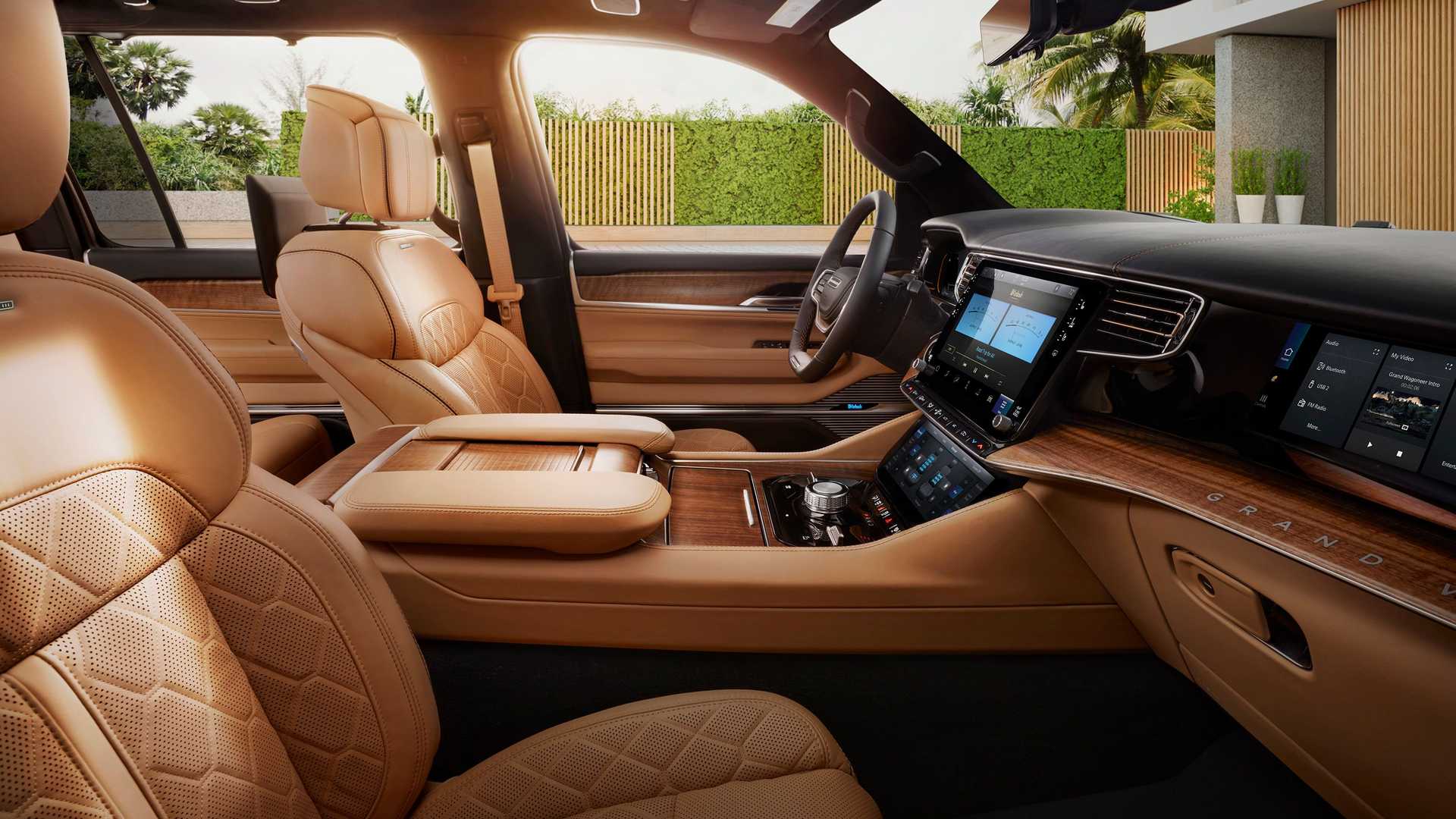 Но если у Кадиллака есть ещё удлинённая версия ESV, то для моделей Jeep Wagoneer и Grand Wagoneer такой не предусмотрено. А слово Grand в названии обозначает более дорогую модификацию и лучшее оснащение. Такой автомобиль выглядит богаче за счёт расширенного хромированного декора и более крупных колёс, у него изысканнее отделка салона и есть дополнительный сенсорный дисплей со стороны переднего пассажира. Плюс в списке базового оснащения — пневмоподвеска, адаптивные амортизаторы и полный привод, которые в обычном Вэгонире доступны только за доплату. Но самое большое отличие между двумя модификациями кроется в двигателях.