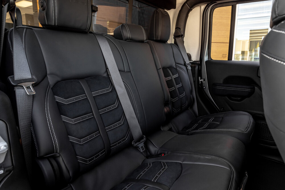 Пикап имеет постоянный привод на четыре колеса, а ещё одна пара подключается по мере необходимости. При этом соотношение главных пар увеличено с 3,73:1 у стандартного Гладиатора (с 4,1:1 — у Рубикона) до 4,88:1. На выбор есть три двигателя: базовый Pentastar V6 3.6 отдачей 289 л.с. и 353 Н•м, форсированный до 380 сил (+116) и 637 ньютон-метров (+38) турбодизель V6 3.0, а также недоступная заводской модели турбочетвёрка 2.0 на 274 л.с. и 393 Н•м. Калифорнийцы просят за своё творение минимум $132 000 (9,9 млн рублей). К слову, стартовые цены на базовые машины в Штатах колеблются от $33 715 до $51 915 (2,5–3,9 млн рублей).