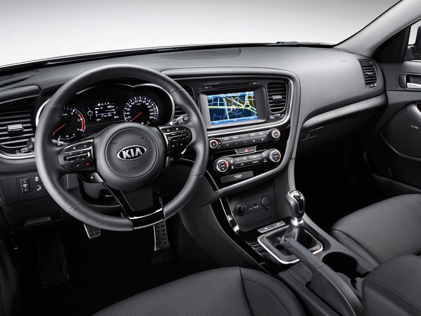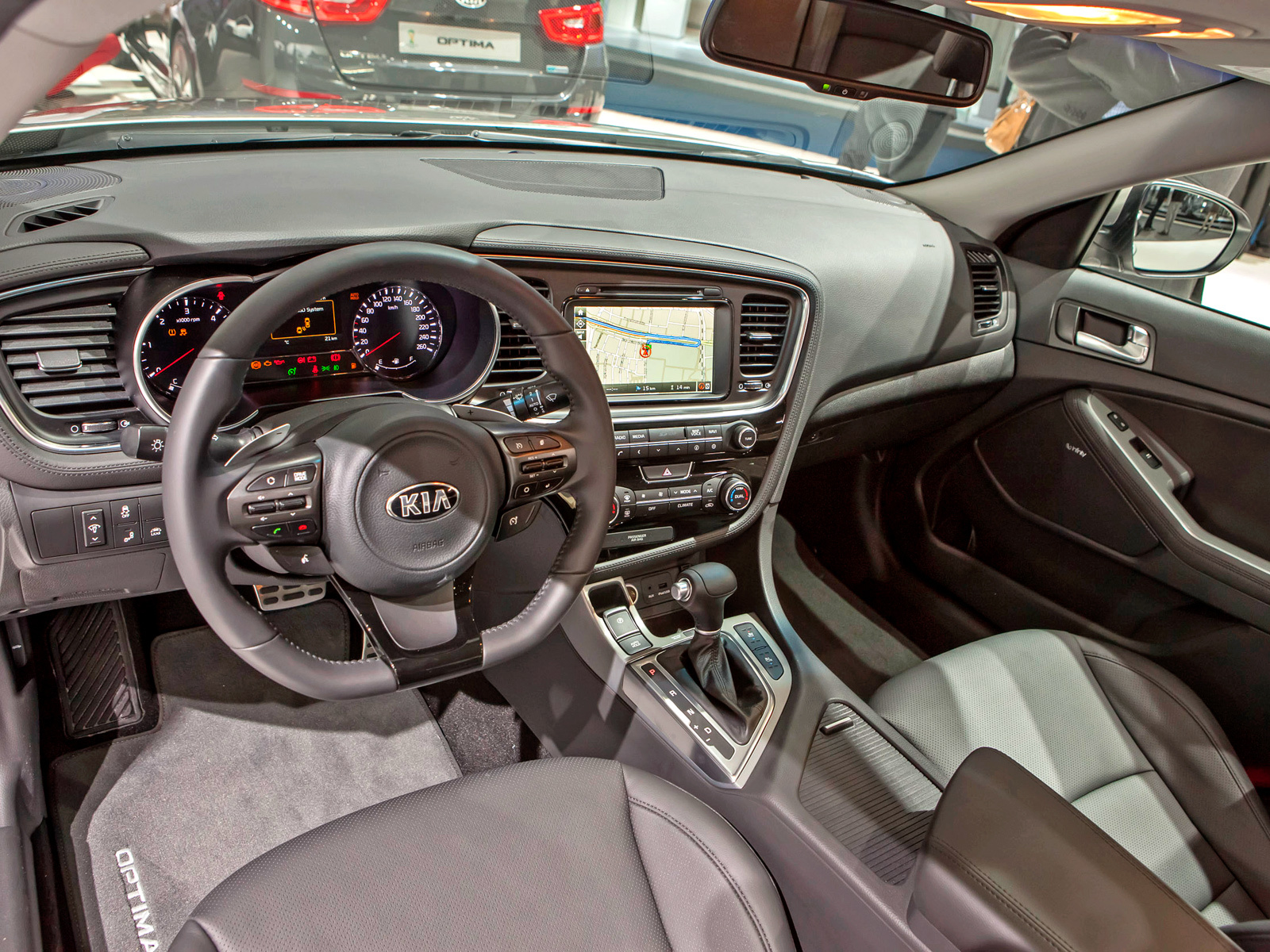 В обновлённой Оптиме конструкторы пересмотрели возможности электроники: в зависимости от версии здесь могут стоять системы контроля слепых зон, смены полосы и предупреждения о поперечном трафике сзади при выезде со стоянки. На машинах с «автоматом» водитель может переключать настройки между нормальными, спортивными и экономичными, причём этот селектор Drive Mode влияет не только на программу коробки передач, но и на отклик педали газа и на работу усилителя руля. Комплектации будут несколько разниться в зависимости от рынков. Но в машине можно будет получить такие вещи, как панорамный люк, подогрев задних сидений и вентиляцию передних, подогрев рулевого колеса.