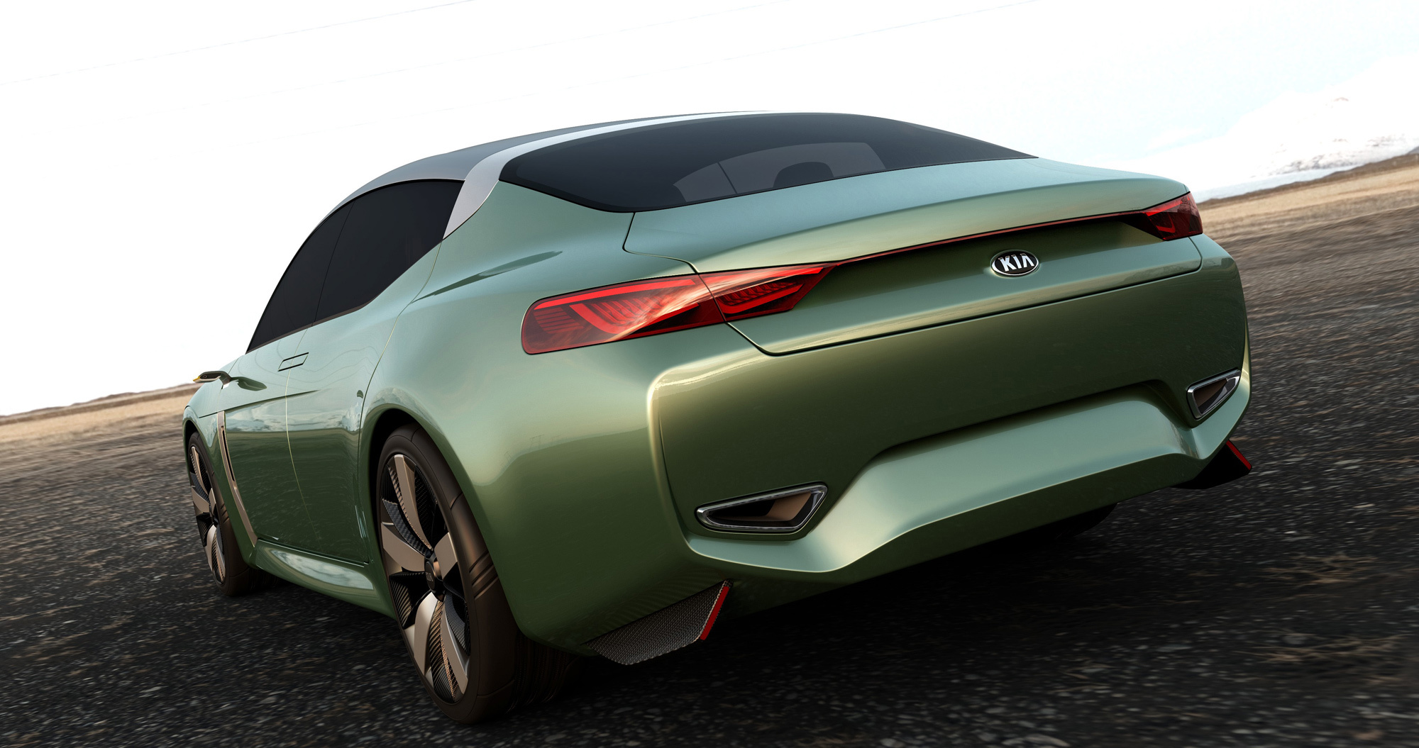 Весьма спорное новшество, опробованное на концепте, — 20-дюймовые шины с вогнутым профилем. Центральная часть протектора не контактирует с дорогой, а нагрузку несут края беговой дорожки. Обычно конструкторы стремятся увеличить пятно контакта, но тут аномальная структура создана намеренно. По мнению корейцев, шины, специально рассчитанные на такой специфический режим работы, обладают меньшим сопротивлением качению при достаточном уровне сцепления в поворотах. При этом внутренняя часть беговой дорожки служит для охлаждения протектора при перегреве, а во время дождя — для дополнительного отвода воды.