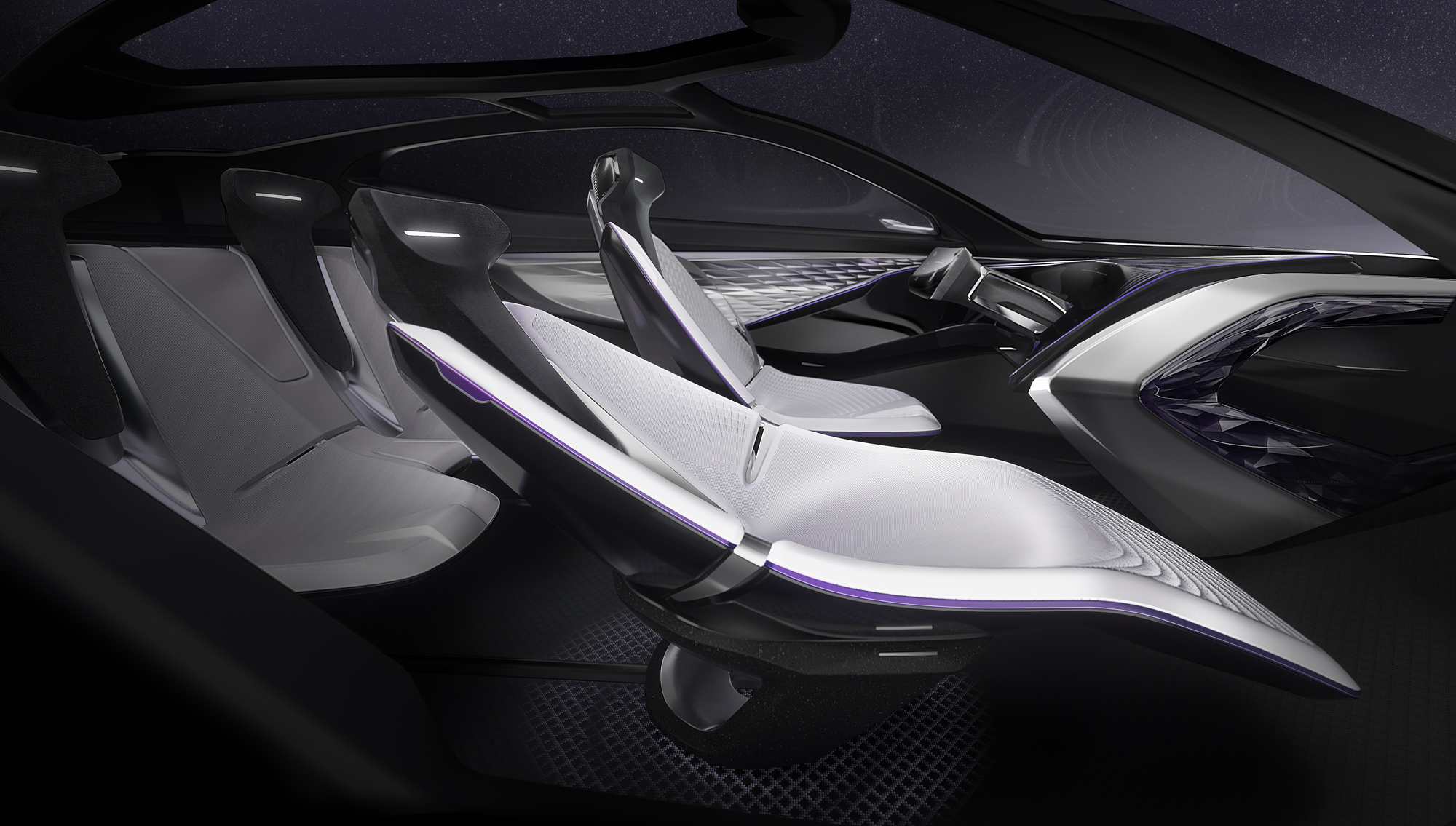 Технических характеристик машины фирма не привела, лишь указав, что данный паркетник обладает полным приводом e-AWD, состоящим из четырёх мотор-колёс и «аккумулятора большой ёмкости», размещённого под полом. Зато обещан «новый тип интерактивного опыта вождения, подходящий для городской среды». Он достигается сочетанием начинки с дизайном, выполненным под девизом «360 градусов». Это подразумевает отличный круговой обзор, линии кокпита, плавно окружающие обитателей, и даже круговую интерактивную подсветку на кузове, реагирующую на приближающегося к машине человека. Она откликается сменой световых «символов» в ответ на жесты.