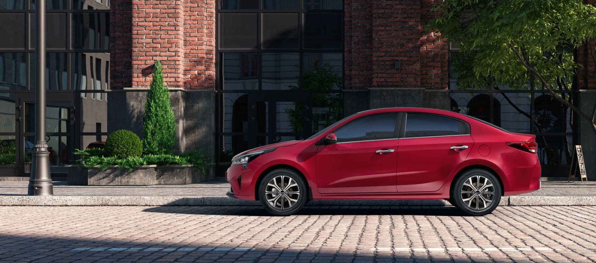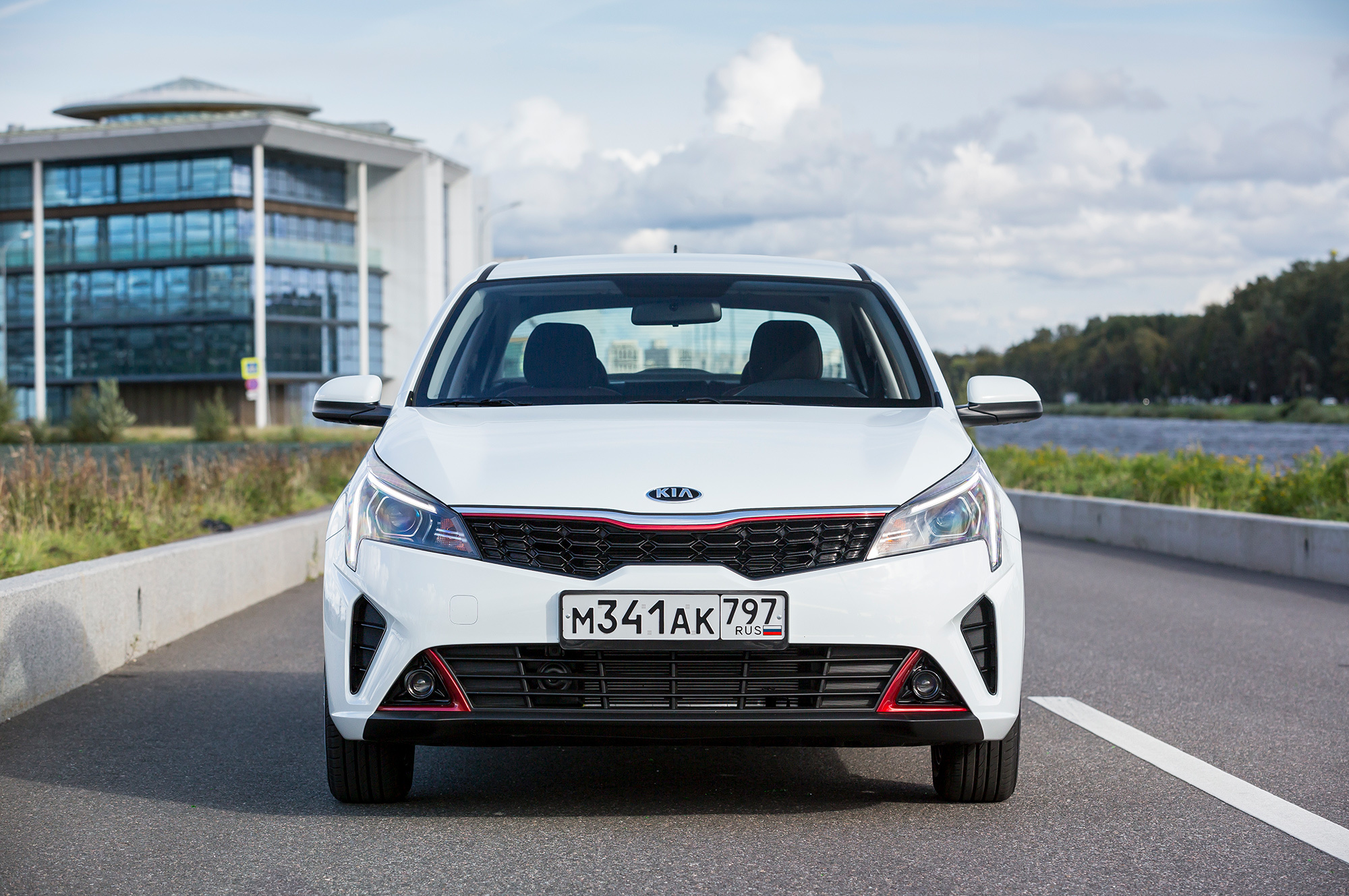 В стандартное оснащение Rio входят две подушки, АБС, ESP, помощник на подъёме, контролёр давления в шинах. Корпуса зеркал (с электроприводом и подогревом) вместе с дверными ручками окрашиваются в цвет кузова. На стальные диски с декоративными колпаками надеты шины размерности 185/65 R15. Электростеклоподъёмники есть только спереди. Сиденья отделаны «выносливой и немаркой» тканью. Руль и водительское кресло регулируются исключительно по высоте. Предусмотрены кондиционер и аудиоподготовка на четыре динамика. Всего заготовлено десять комплектаций. Дореформенный седан ещё продаётся.