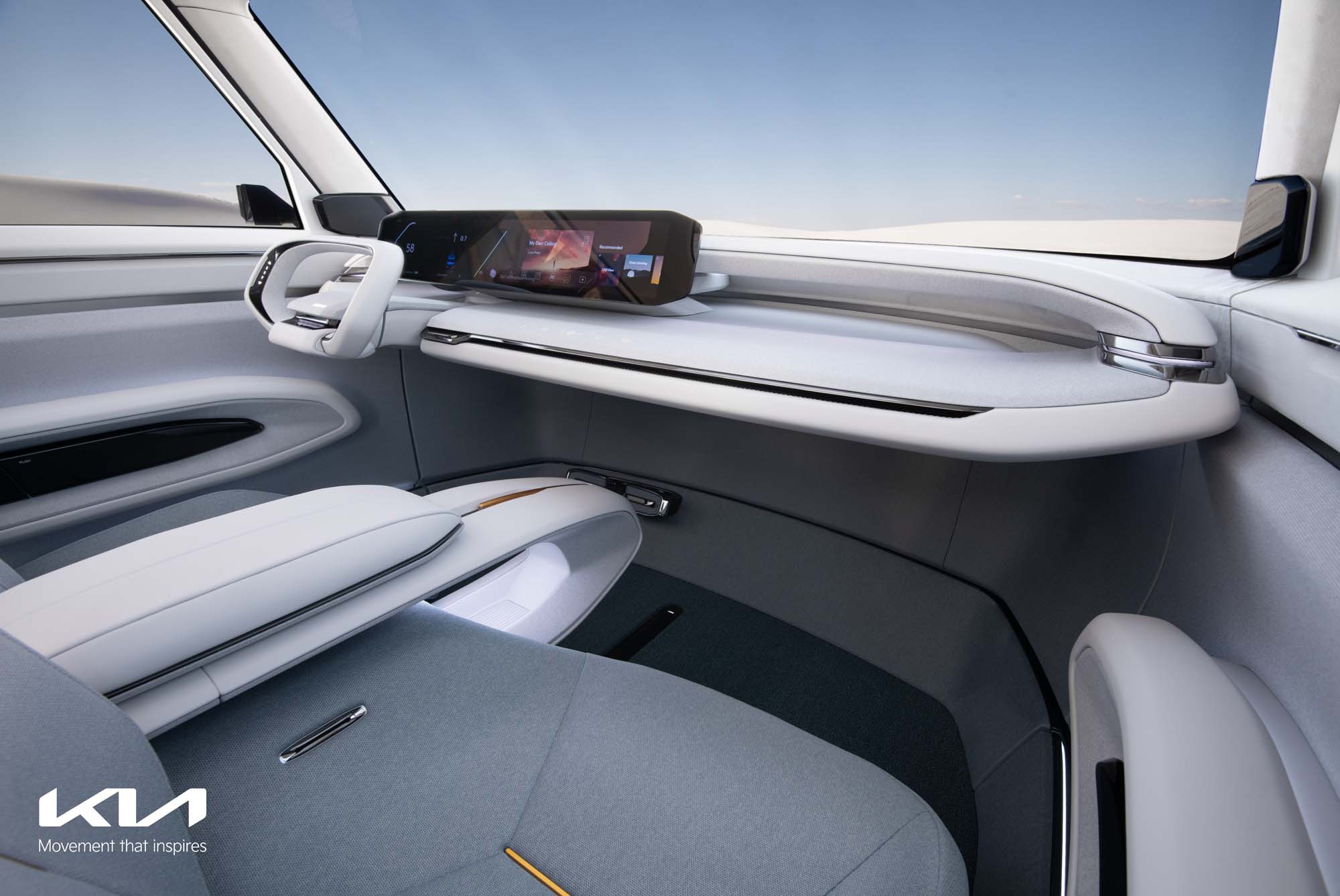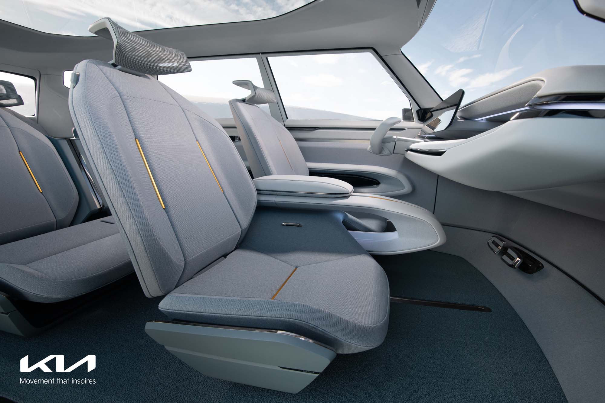 Для интерьера предусмотрено три режима: активный, Active Mode (в движении), а также Pause Mode и Enjoy Mode (оба можно активировать на стоянке). В «Паузе» сиденья второго ряда превращаются в столики, а первый ряд разворачивается, чтобы пассажиры спереди и в третьем ряду сидели лицом друг к другу. В конфигурации Enjoy все три ряда обращаются назад, а их обитателям предлагается созерцать природу через открытую пятую дверь (почему просто не выйти на улицу, не объясняется). Те же расслабление и единение с природой заложены в установке банальной панорамной крыши.