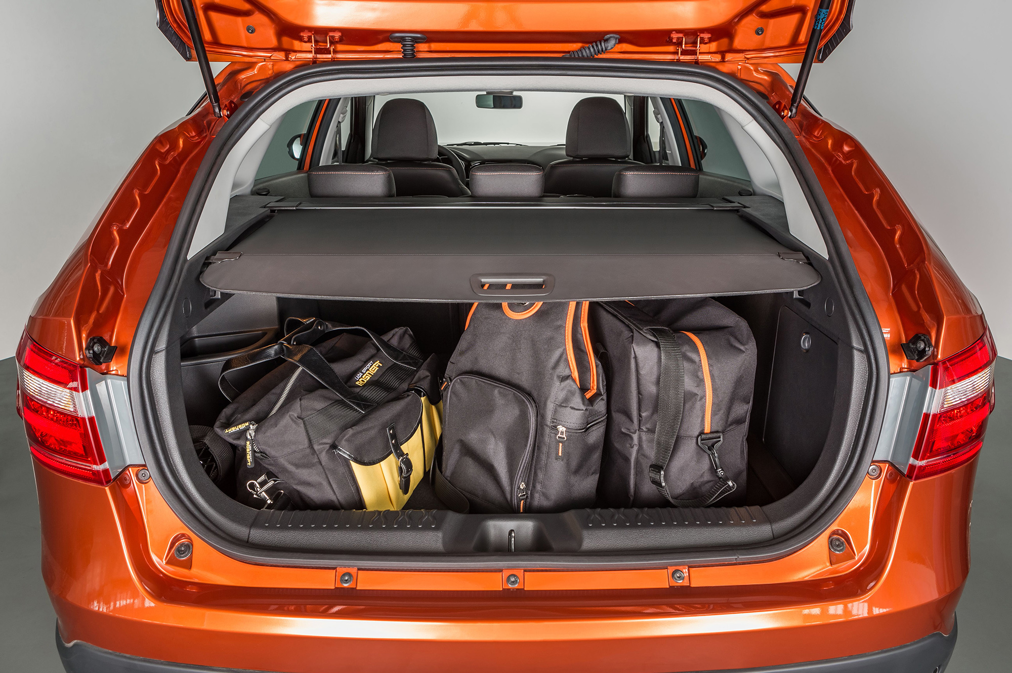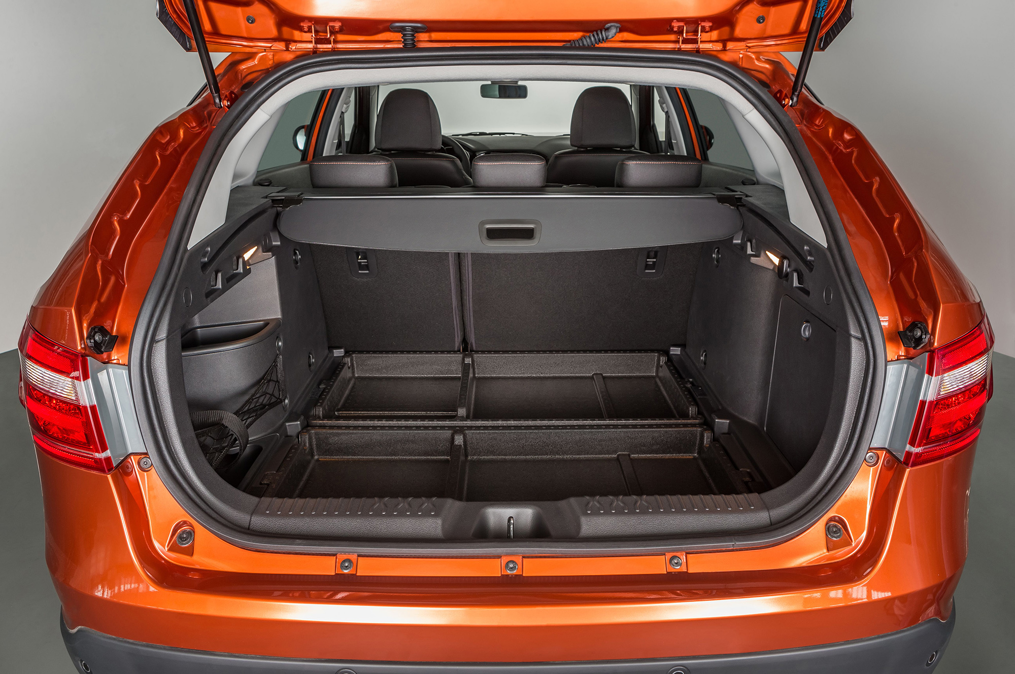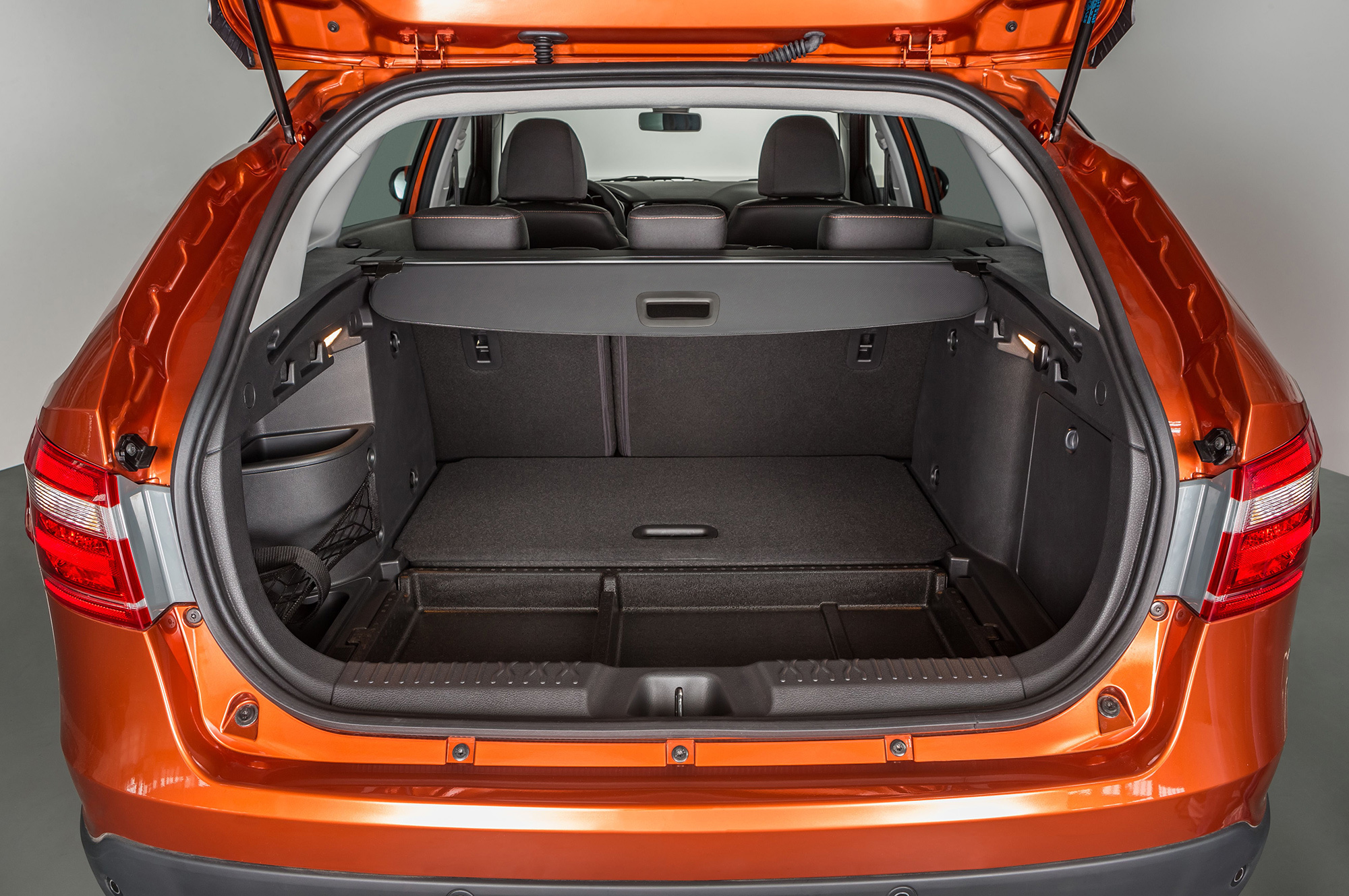 Как и обычную Весту, грузопассажирскую рисовал Стив Маттин. Но универсал в отличие от седана получился гармоничным. А такие вещи, как ниспадающая линия крыши и задние стойки, напоминающие об авиации, цепляют взгляд. Однако российским клиентам наверняка больше понравится Vesta SW Cross. На вид ― почти кроссовер. По периметру кузов дополнен некрашеным пластиком, передний и задний бамперы обзавелись накладками «под металл», а в арках установлены 17-дюймовые легкосплавные диски. Кстати, такой штатный размер на Вестах применяется впервые. Но важнее то, что дорожный просвет Кросса на 25 мм больше, чем у обычного универсала, ― 203 против и без того немаленьких 178 мм.