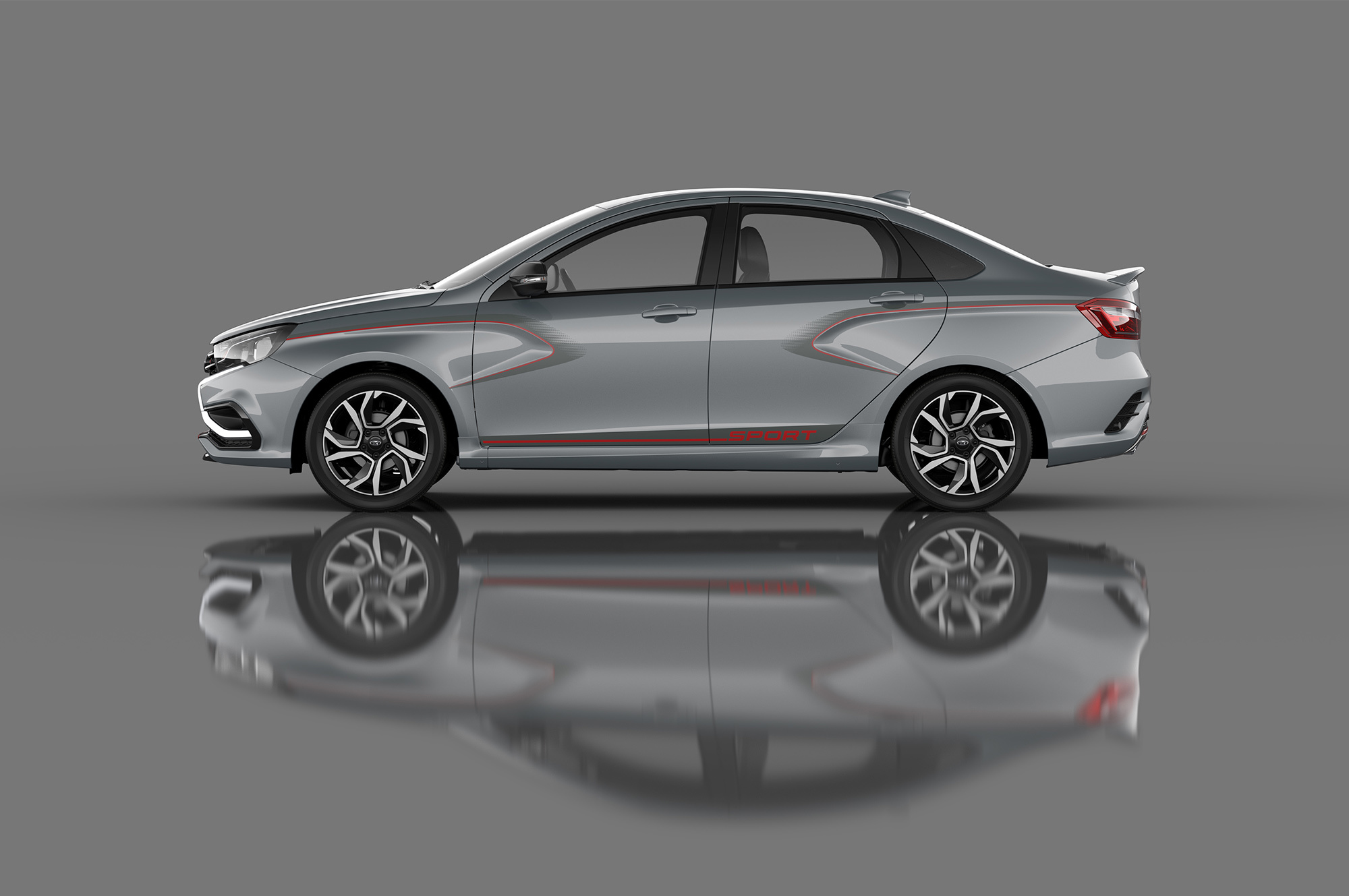 Сегодня АвтоВАЗ рассекретил салон, назвав ключевым элементом дизайна «красную ленту». Она не только опоясывает седан снаружи, но и рассредоточена в виде акцентов по интерьеру. Сиденья и руль отделаны «экокожей» с орнаментом «под углеволокно» и контрастной прострочкой. На красные вставки из алькантары нанесена невидимая на фото «икс-графика». Фрагменты пластика на передней панели и дверях опять же имитируют углеродное волокно, перемежаясь с чёрным глянцем. Потолок и стойки зачернены, в ноги светят красные фонари. Результат? «Энергетическая оболочка, вобравшая в себя одновременно страсть и адреналин, переданные через мощный темперамент автомобиля», — сообщают нам из Тольятти.