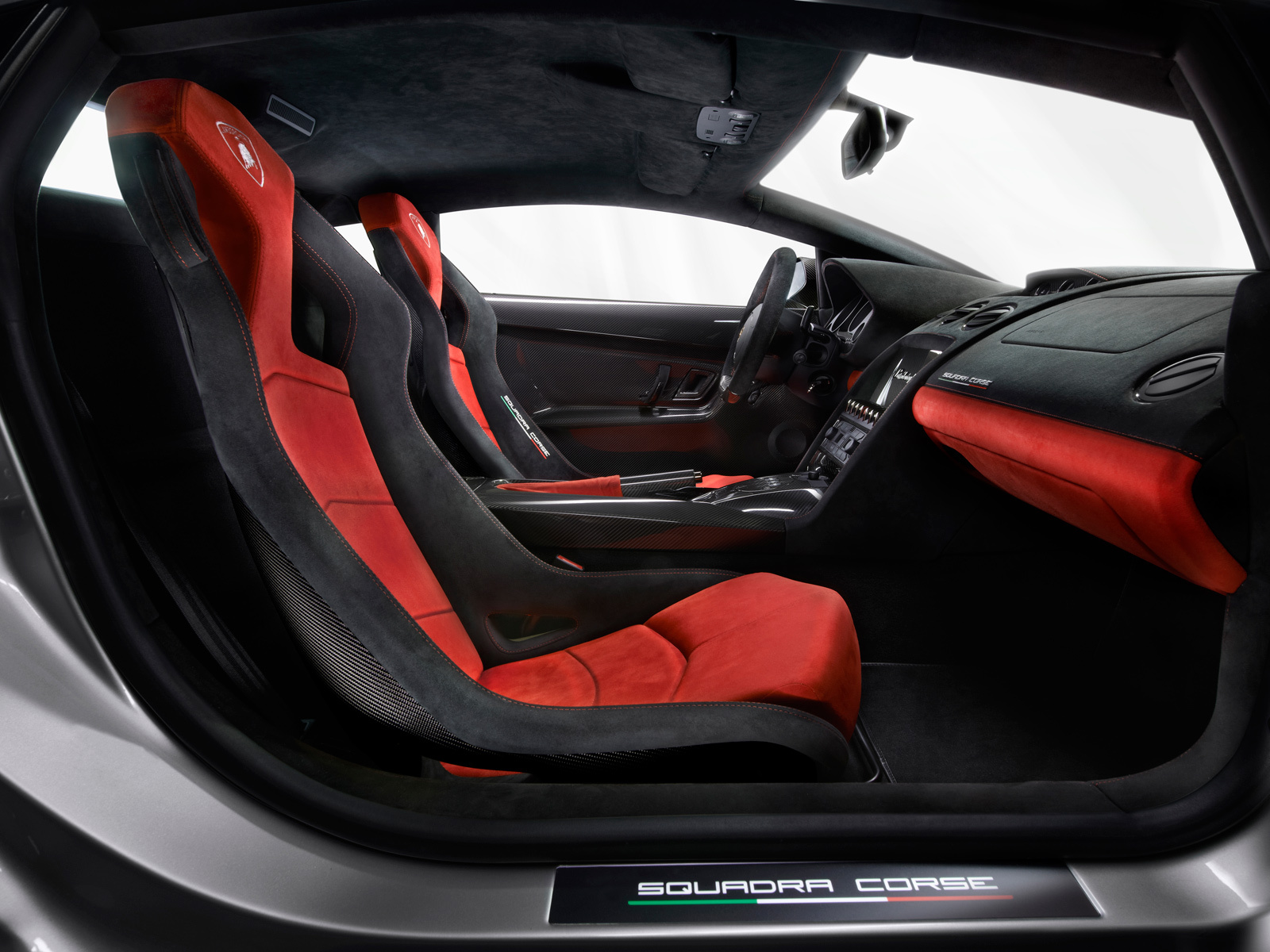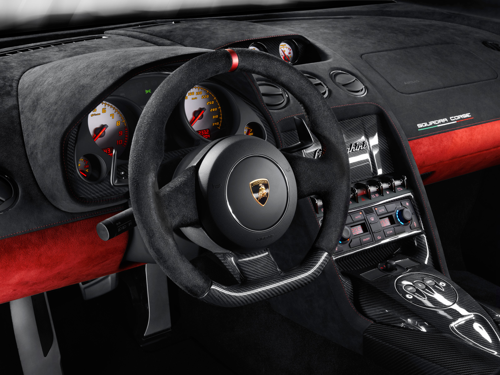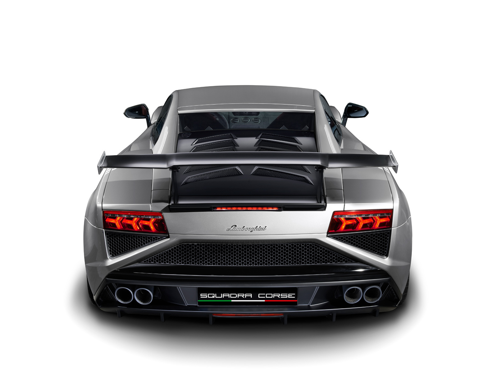 По словам специалистов из Сант’Агата-Болоньезе, мотор V10 5.2 не претерпел изменений по сравнению с гоночным вариантом — те же 570 сил и 540 Н•м. Однако Gallardo Squadra Corse на 40 кг тяжелее купе Super Trofeo, хотя и на 70 кг легче стандартной версии суперкара LP560-4. До сотни новинка выстреливает за 3,4 с (у базовой машины — 3,7 с), а максимальная скорость достигает 320 км/ч (у LP560-4 — 325 км/ч). Добавьте сюда большое антикрыло, как у гоночного Super Trofeo, бескомпромиссную по жёсткости двухрычажную подвеску, карбонокерамические тормоза и механическую блокировку дифференциала, и картина сложится окончательно.