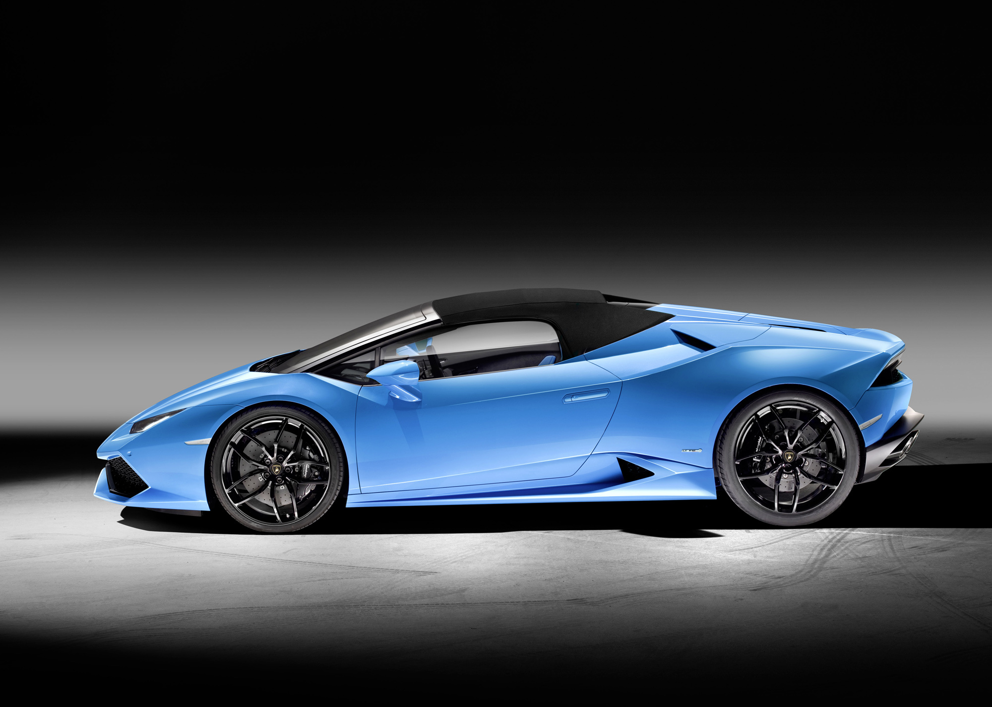 Итальянцы рассекретили открытую модель Huracan на автошоу во Франкфурте. Технически она повторяет купе, так что у неё тот же 610-сильный мотор V10 5.2 (560 Н•м). Сухая масса спайдера — 1542 кг, он аж на 120 кг тяжелее закрытой версии. Неудивительно, что динамика пострадала. Разгон с нуля до сотни занимает 3,4 с (больше, чем у купе на 0,2 с), до 200 км/ч Huracan LP 610-4 Spyder разгоняется за 10,2 с (на 0,3 медленнее), максималка достигает 324 км/ч (меньше на 1 км/ч).