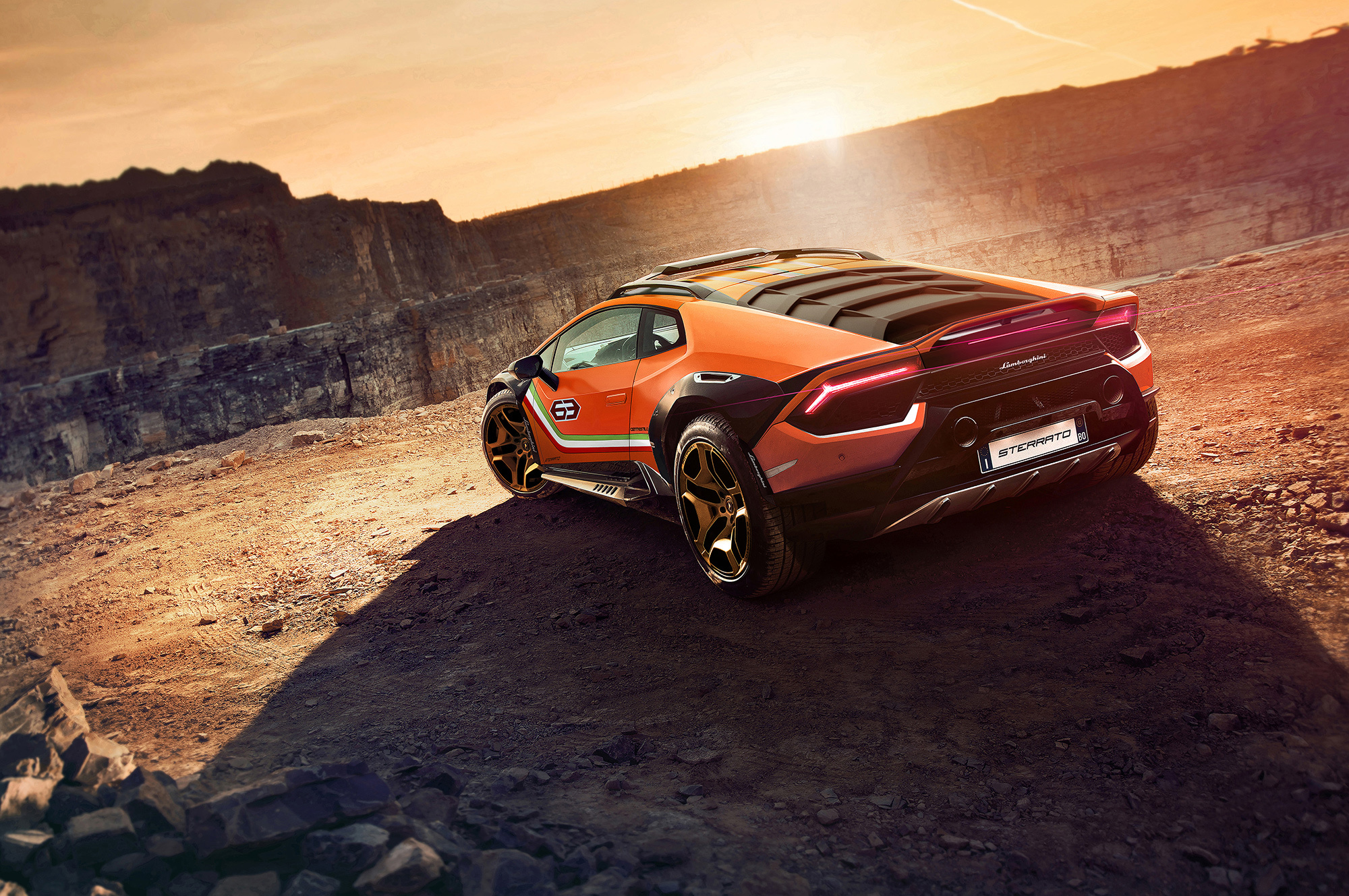 Появление Уруса в 2017 году, кажется, сняло вопрос «на каком Lamborghini лучше съезжать с асфальта» (LM002 не считаем, сейчас речь о современных моделях). И всё же итальянцы решили поднять его снова, в диковинном шоу-каре Huracan Sterrato Concept. Автомобиль основан на модели Huracan EVO. Атмосферник V10 5.2 (640 л.с., 600 Н•м) остался штатным, но зато Sterrato получил внедорожный пластиковый обвес и увеличенный на 47 мм дорожный просвет.