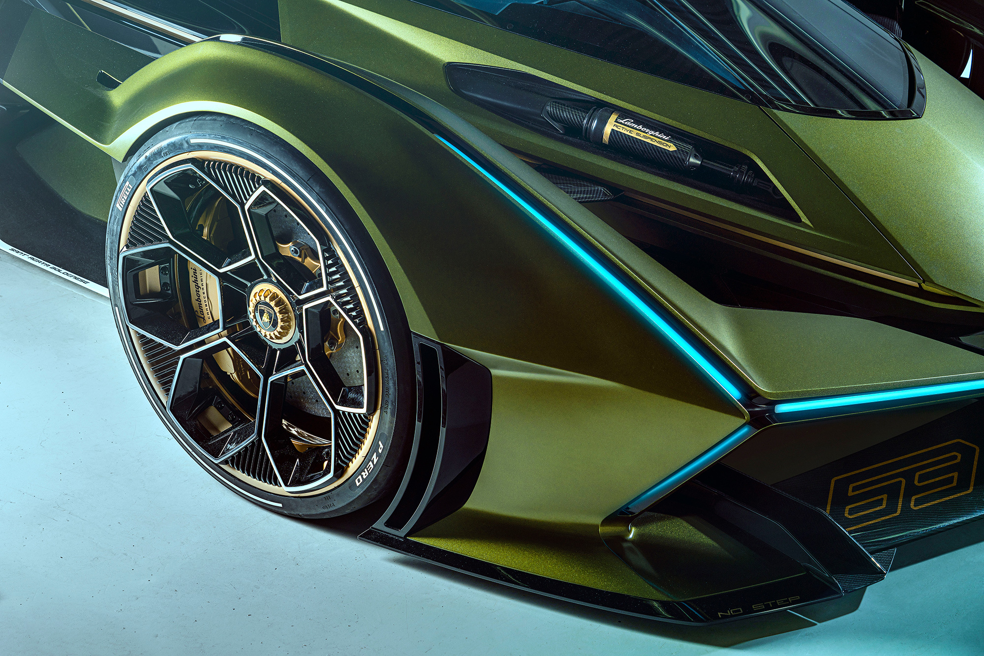 Полноразмерный макет, скорее всего, не имеет силового агрегата, а виртуальной машине досталась гибридная установка от уже распроданного гиперкара Lamborghini Sian. В ней атмосферник V12 6.5 (785 л.с.) вместе с 48-вольтовым мотор-генератором развивают 819 сил. Sian разменивает сотню за 2,8 с и достигает максимальных 350 км/ч. Динамические характеристики концепта не названы.