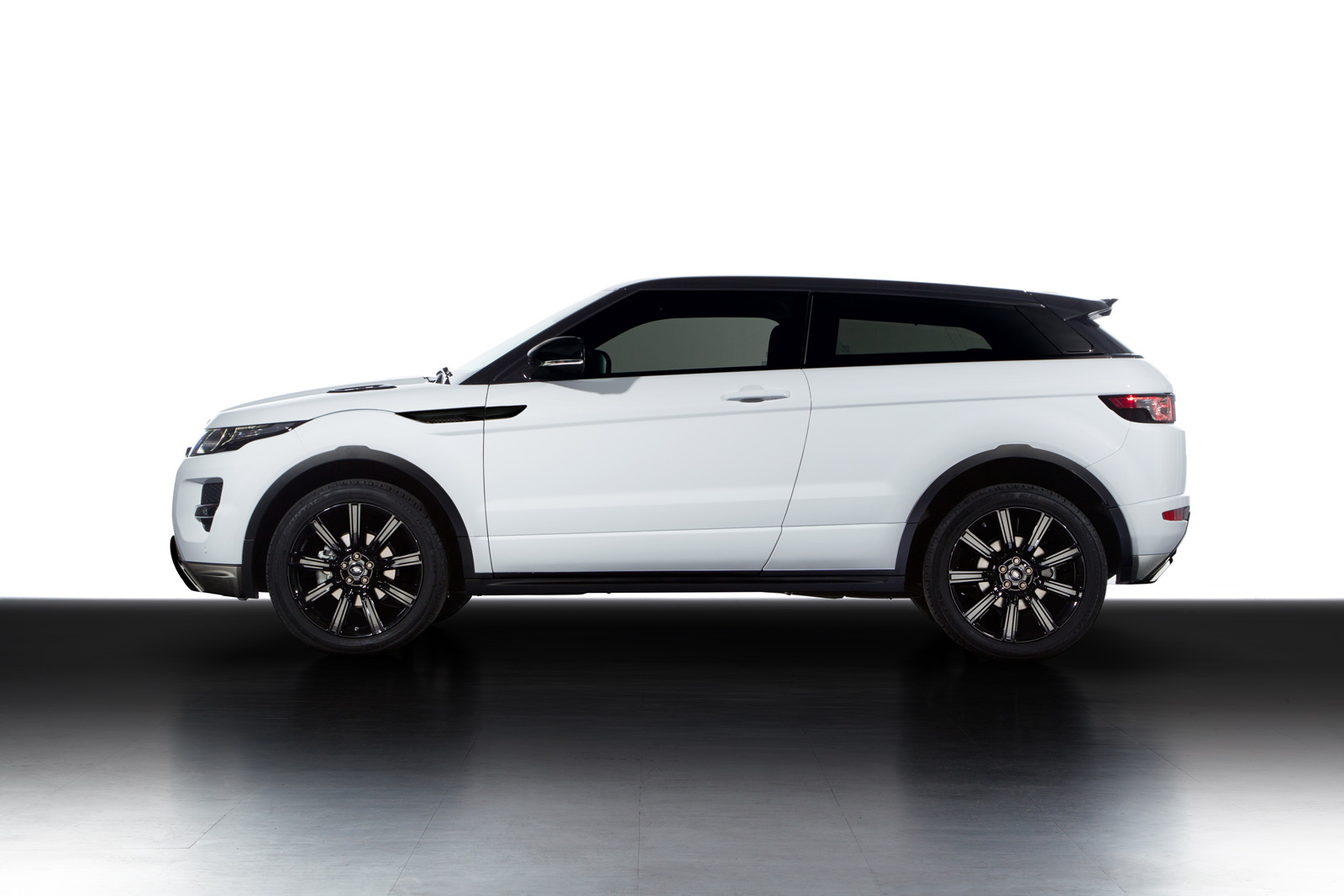 Исполнение Black Design доступно как для пятидверной версии модели Evoque, так и для трёхдверной. Дизайнеры убрали из внешности автомобиля все блестящие и посеребрённые детали, выполнив экстерьер в чёрно-белой гамме (чёрными стали даже надписи Range Rover на капоте и задней двери). Украшают такой вариант машины оригинальные 20-дюймовые девятиспицевые кованые диски, окрашенные в чёрный глянец. Ранее такие катки не предлагались даже в виде опции.