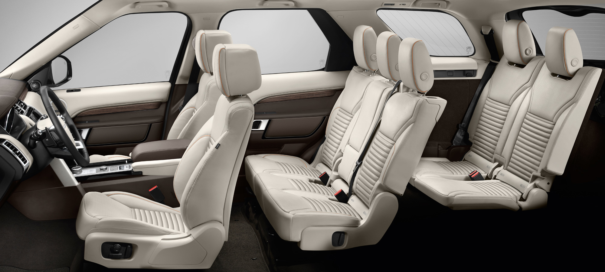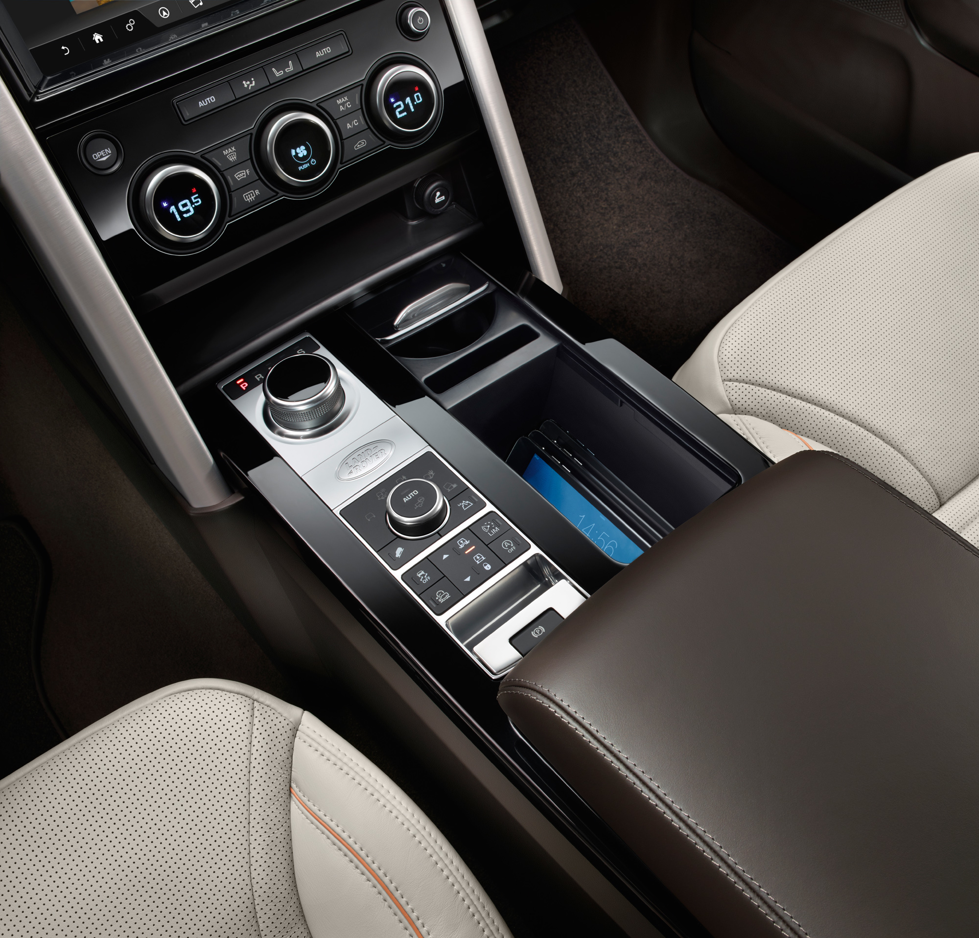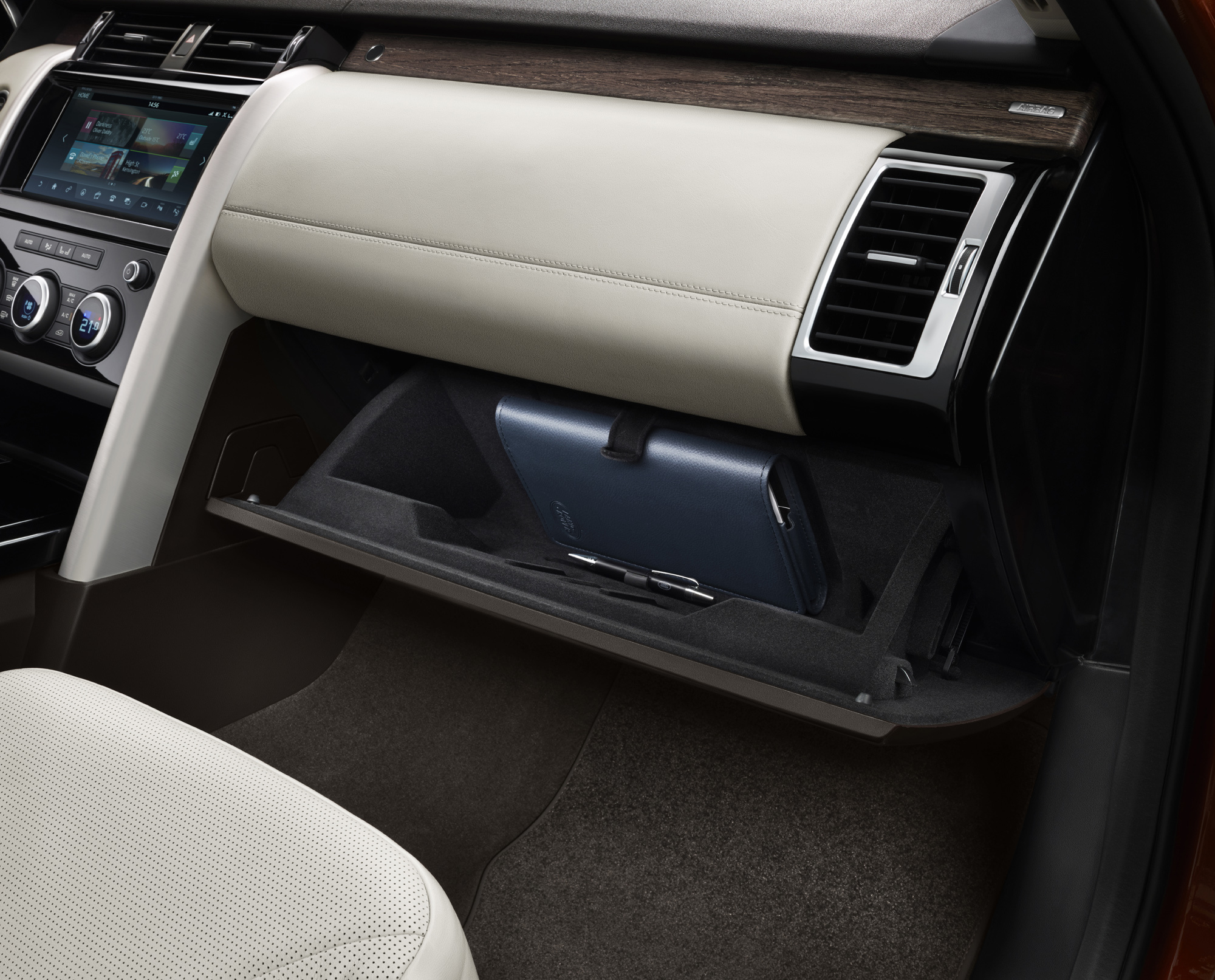 Покупатели нового Ленд Ровера порадуются шести розеткам на 12 В и семи разъёмам USB (даже девяти, если установлена развлекательная система на втором ряду), нескольким потайным отсекам для мелочовки и гаджетов, разбросанным по всему салону, в том числе за откидной панелью климат-контроля, в дополнение к двум перчаточным ящикам. Всего тут почти 45 л дополнительного пространства. И плюс к ним — 127,4 л в подполе багажника (в пятиместной версии машины) или 24,5 л (если внедорожник семиместный). В плюсах также пять цветовых решений интерьера с различными вариантами отделки (в том числе вставками из натурального дуба).