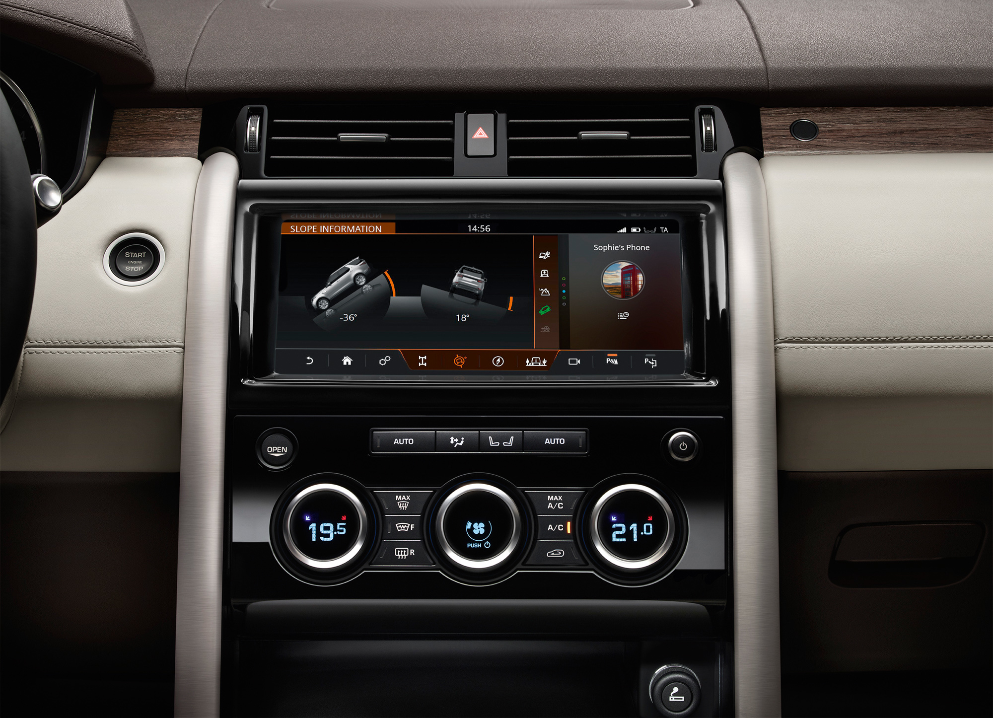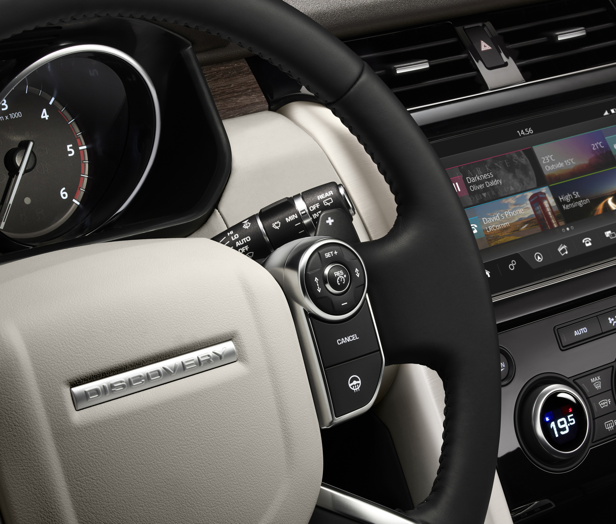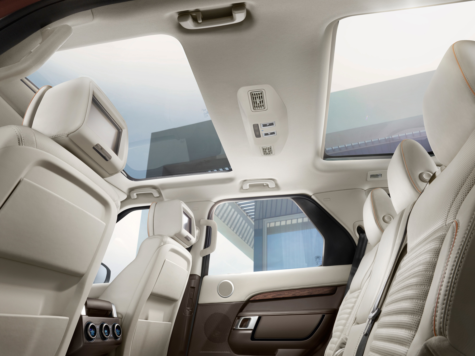 Покупатели нового Ленд Ровера порадуются шести розеткам на 12 В и семи разъёмам USB (даже девяти, если установлена развлекательная система на втором ряду), нескольким потайным отсекам для мелочовки и гаджетов, разбросанным по всему салону, в том числе за откидной панелью климат-контроля, в дополнение к двум перчаточным ящикам. Всего тут почти 45 л дополнительного пространства. И плюс к ним — 127,4 л в подполе багажника (в пятиместной версии машины) или 24,5 л (если внедорожник семиместный). В плюсах также пять цветовых решений интерьера с различными вариантами отделки (в том числе вставками из натурального дуба).