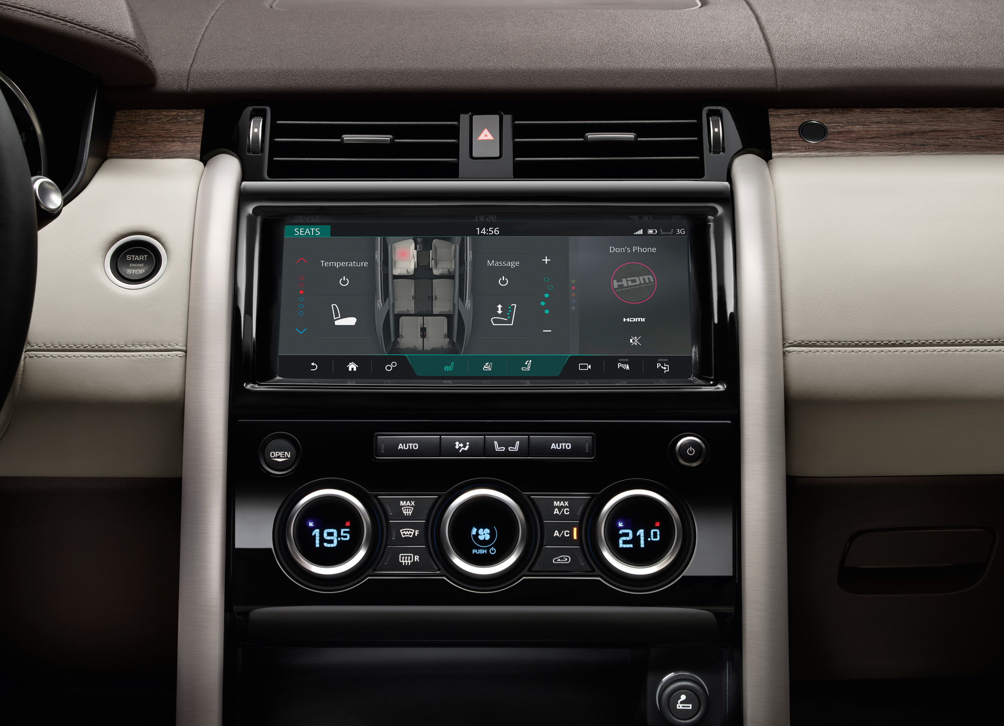 На российском рынке в стандартное оснащение внедорожника войдут подогрев лобового стекла и форсунок омывателя, рулевого колеса, передних сидений и сидений второго ряда, стояночный обогрев двигателя и салона с дистанционным управлением. Кстати, подогрев есть даже на третьем ряду (британцы уверяют — впервые на внедорожниках), на втором может быть установлена вентиляция, а на первом ещё и массаж. В топе (версия HSE Luxury) по умолчанию предусмотрены отделка салона кожей Windsor, вентиляция передних сидений, панорамная крыша. Адаптивные светодиодные фары (опция) состоят из семи кластеров с независимым управлением и обладают пятью режимами: Country («загородные дороги»), Town («город»), Motorway («шоссе»), Alternative Country («альтернативный загородный вариант» — для плохой видимости), дальний свет.
