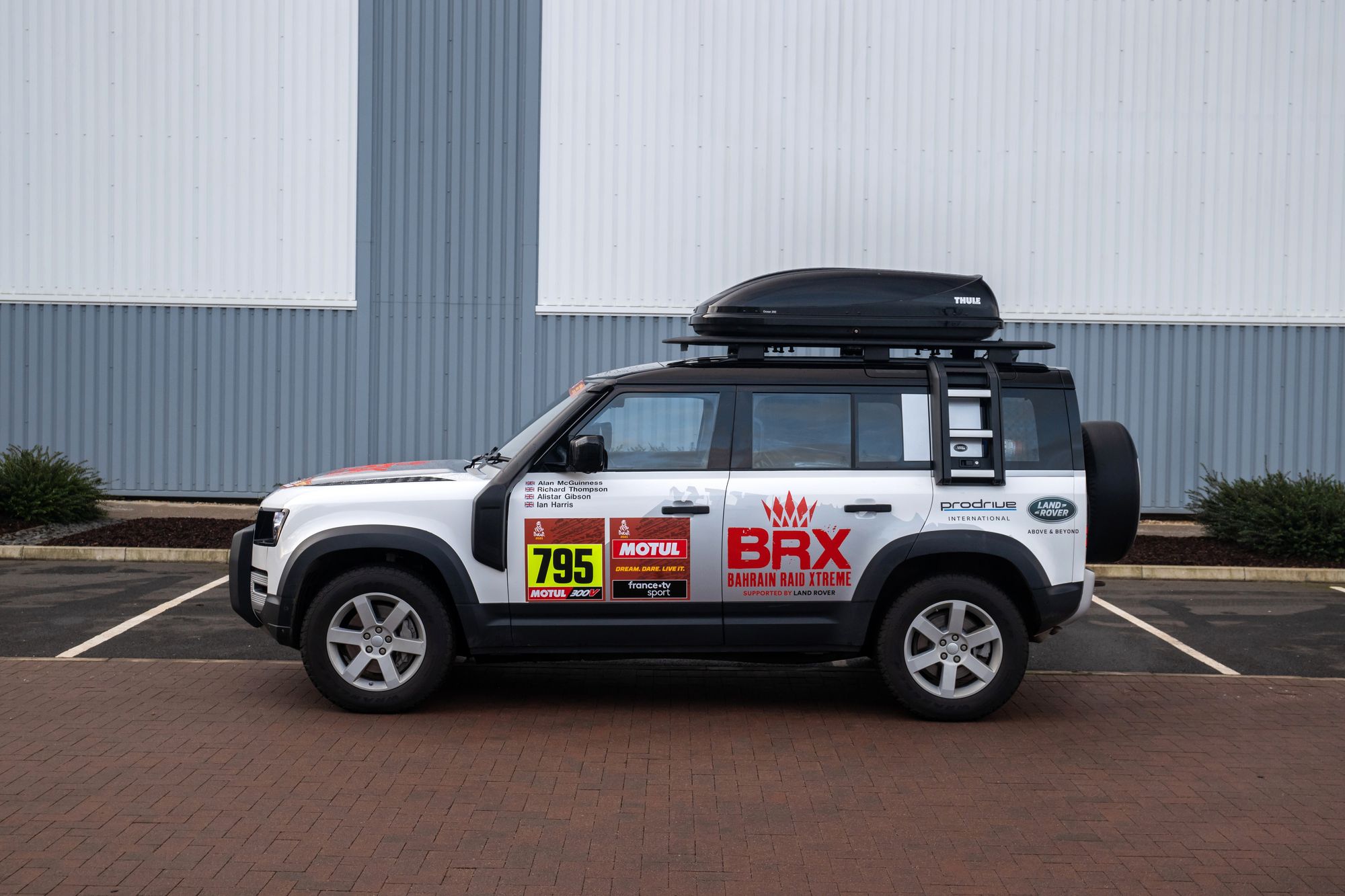 В помощь Дэвиду Ричардсу и его команде отрядят две технички — внедорожники Land Rover Defender 110 в заводской спецификации. Техника у обоих автомобилей одинаковая: на них установлены рядный бензиновый двигатель 3.0 с шестью цилиндрами, электромотор и 48-вольтовая бортовая сеть. Суммарная отдача Дефендеров достигает 400 л.с. и 550 Н•м. Кроме того, каждую из машин дополнили заводским офроуд-пакетом Explorer Pack, в который входят шноркель, экспедиционный багажник на крыше, пластиковые накладки на колёсные арки и дополнительный бокс на боковине кузова. Плюс отдельно установлена лебёдка и закреплена раскладная лестница из фирменного каталога аксессуаров.