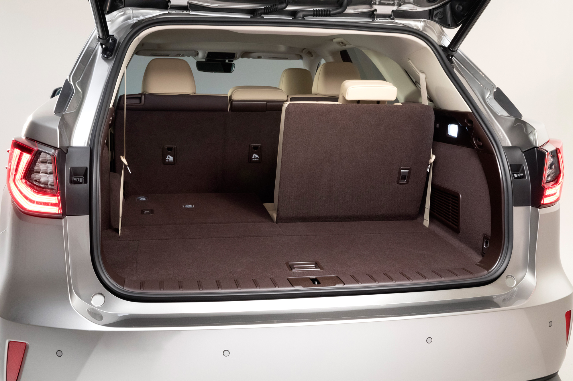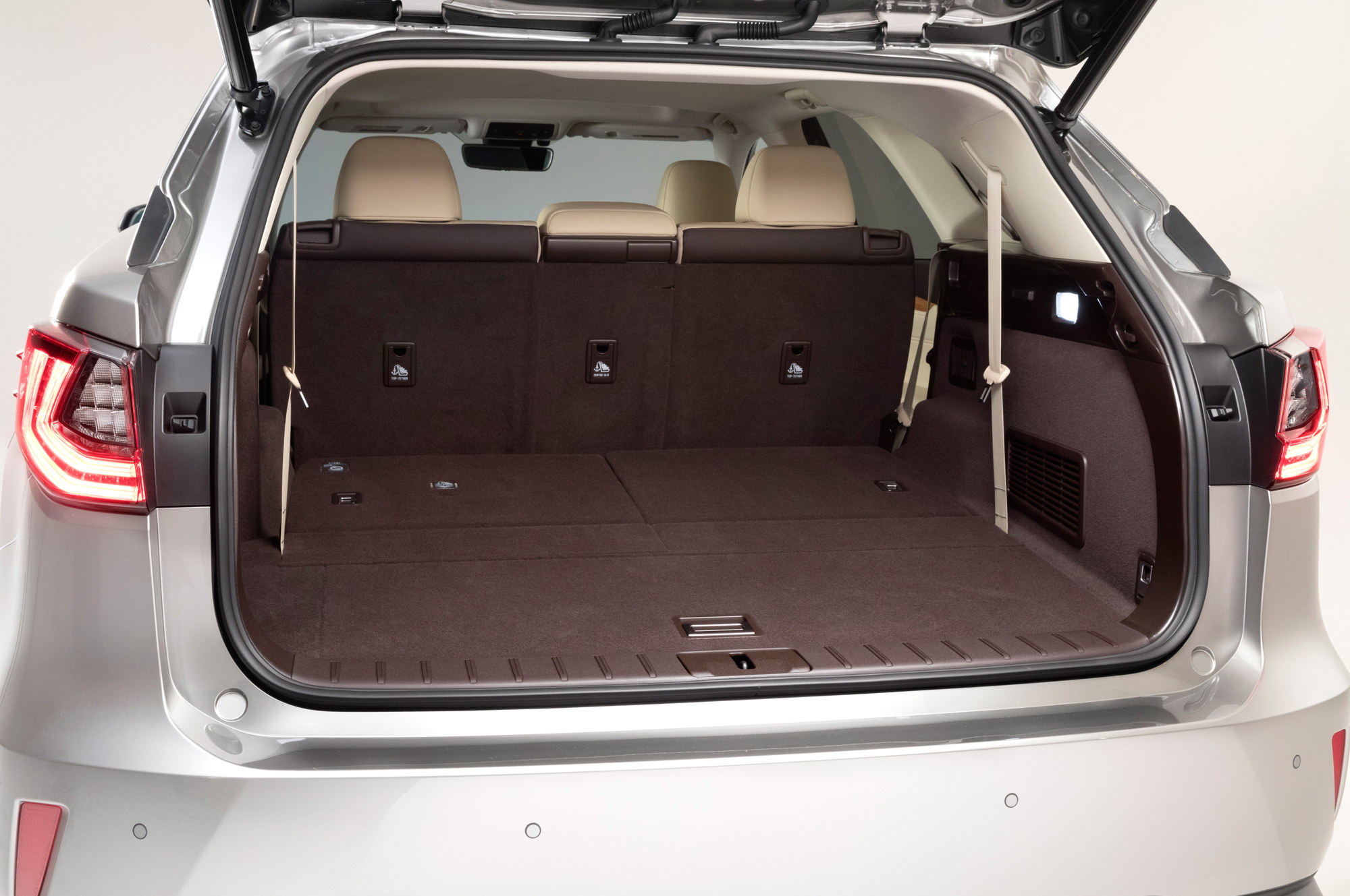 Уже «в базе» RX L оборудован бесконтактным открыванием пятой двери (достаточно поднести руку к эмблеме). На большинстве рынков стандартным будет и комплекс безопасности и помощи водителю Lexus Safety System+. А гибрид, в частности, по умолчанию оснащён богаче простого собрата: тут уже есть навигация, аудиосистема с 12 динамиками (вместо девяти), передние кресла с подогревом и вентиляцией, подогрев рулевого колеса.