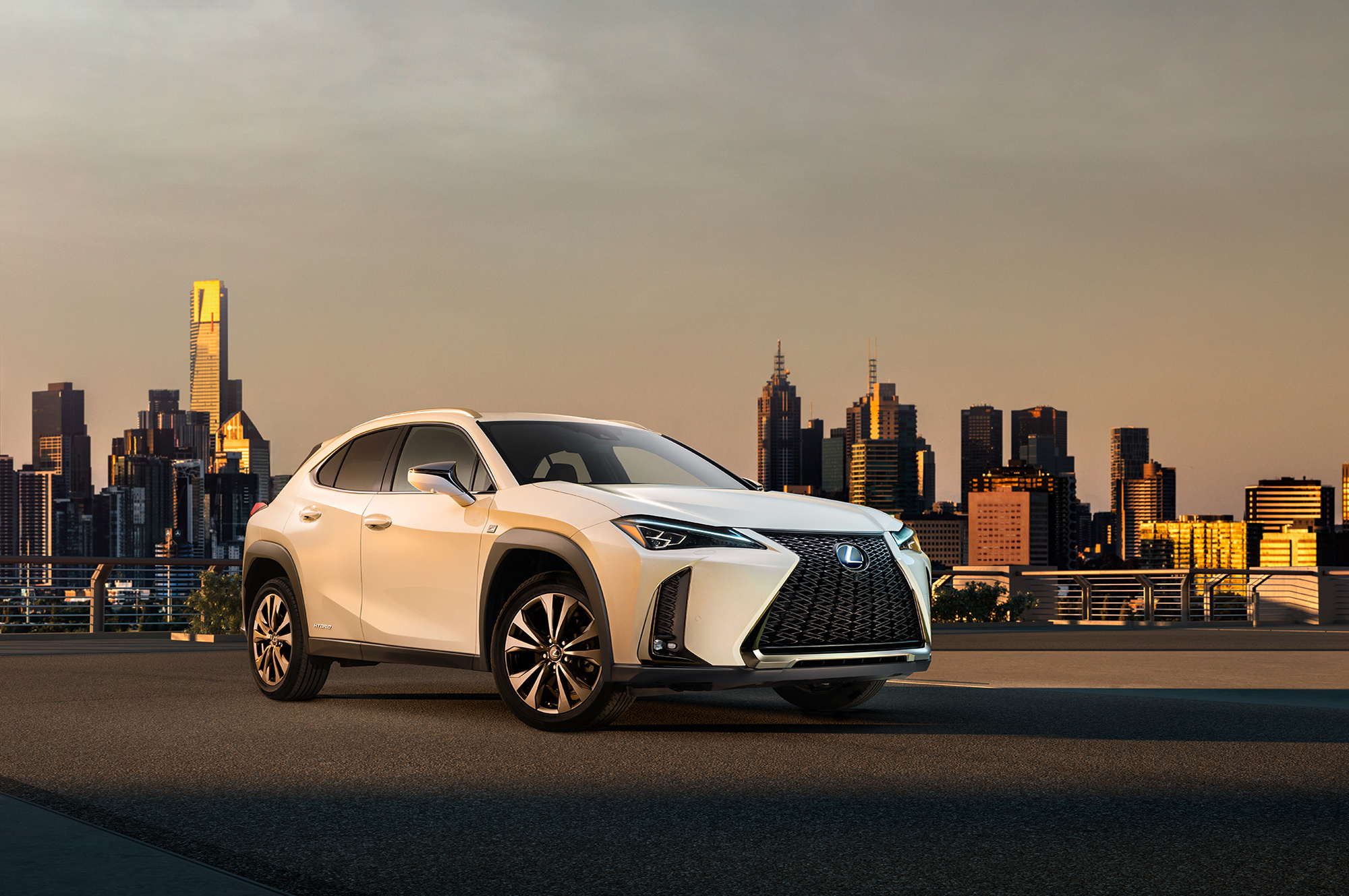 Сегодня компания представила новые фото и видео «ю-икса», который она называет «первым городским компактным кроссовером Лексуса». Заявлено, что совершенно новая платформа придаёт автомобилю исключительную жёсткость кузова и обеспечивает низкий центр тяжести. (Понятно, что речь идёт об архитектуре TNGA.) Как и положено младшей модели, внешне она выглядит попроще, чем Lexus NX. У новичка не такая сложная оптика, да и сам он, строго говоря, хэтчбек. Из общих для обоих компактов черт можно отметить решётку-фартук и шильдики Hybrid на задних дверях.