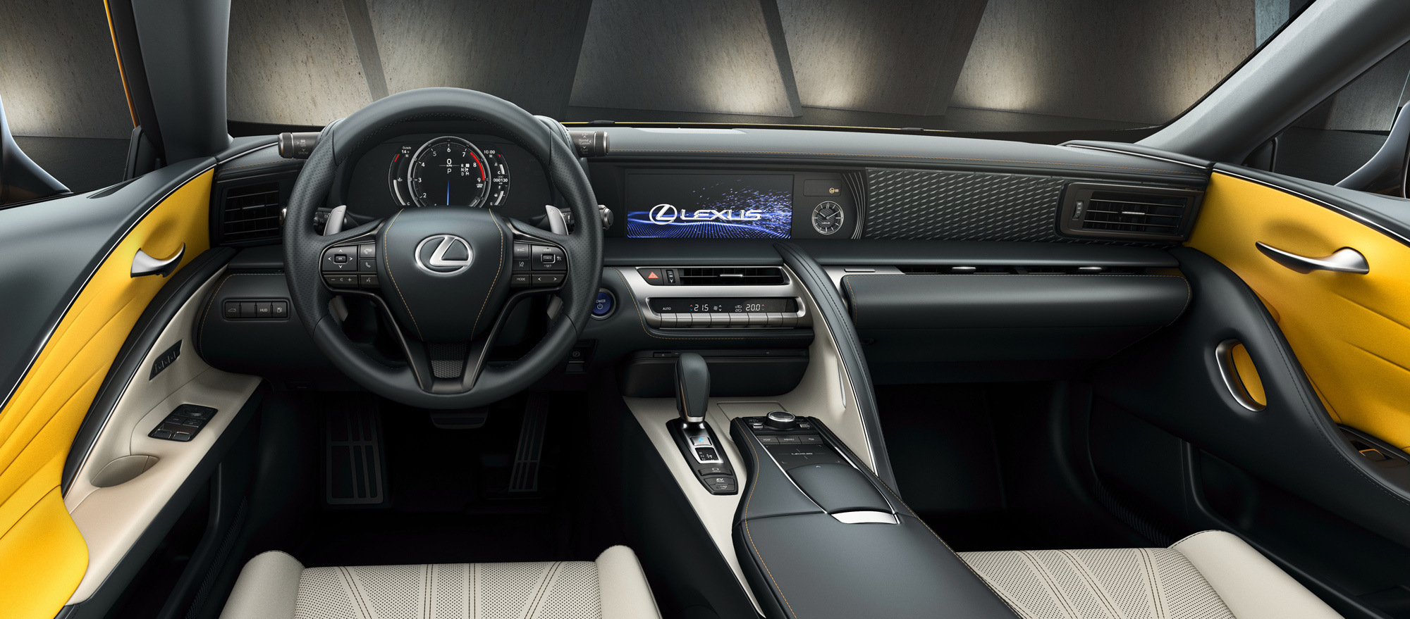 Тема жёлтого колера продолжает раскрываться в салоне, где этим цветом выделены вставки из искусственной замши на дверях и контрастная прострочка на сиденьях, руле, передней панели и центральном подлокотнике. Ещё одна особенность купе LC Yellow Edition ― богатая комплектация. Клиенту не придётся доплачивать за обивку из натуральной кожи тонкой выделки, проекционный дисплей, аудиосистему Mark Levinson, полноуправляемое шасси и электронноуправляемую блокировку заднего дифференциала. По ценам нас пока сориентировать не могут, но за базовый Lexus LC в Германии просят 99 200 евро. Примерно столько же стоят заднеприводный родстер Mercedes SL и заднеприводное купе BMW 840d xDrive.