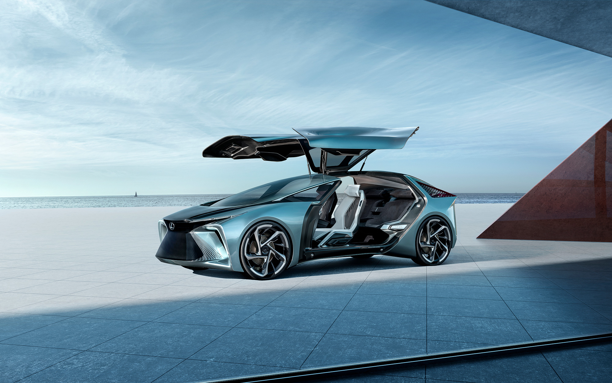 Электромоторы размещены во всех колёсах, так что доступны передний, задний и полный привод. Максимальная отдача установки — 400 кВт (544 л.с., 700 Н•м). Разгон до сотни длится 3,8 с. Скоростной потолок — 200 км/ч. Батарея ёмкостью 110 кВт•ч обеспечивает запас хода в 500 км по циклу WLTP. Рулевое управление организовано «по проводам», а зарядка электрокара, наоборот, обходится без кабелей. Автопилот Lexus Teammate (доработанный Highway Teammate) готов помочь водителю, если тот вдруг решит порулить.