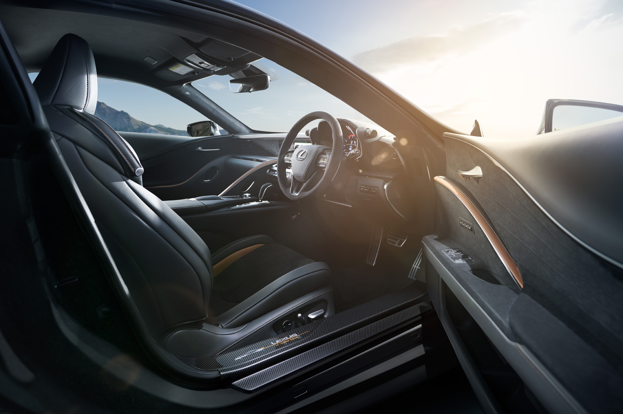 Авторы «авиационного» Лексуса LC уверяют, что он стабильнее обычного LC на скоростной прямой, лучше справляется с рысканием, точнее реагирует на поворот руля. Таково влияние нового антикрыла. Дополняют эту деталь особый подбор материалов и цветов в интерьере, призванном отразить «величие Земли, наблюдаемой с воздуха», дифференциал повышенного трения, цветной проекционный дисплей и углепластиковая крыша.