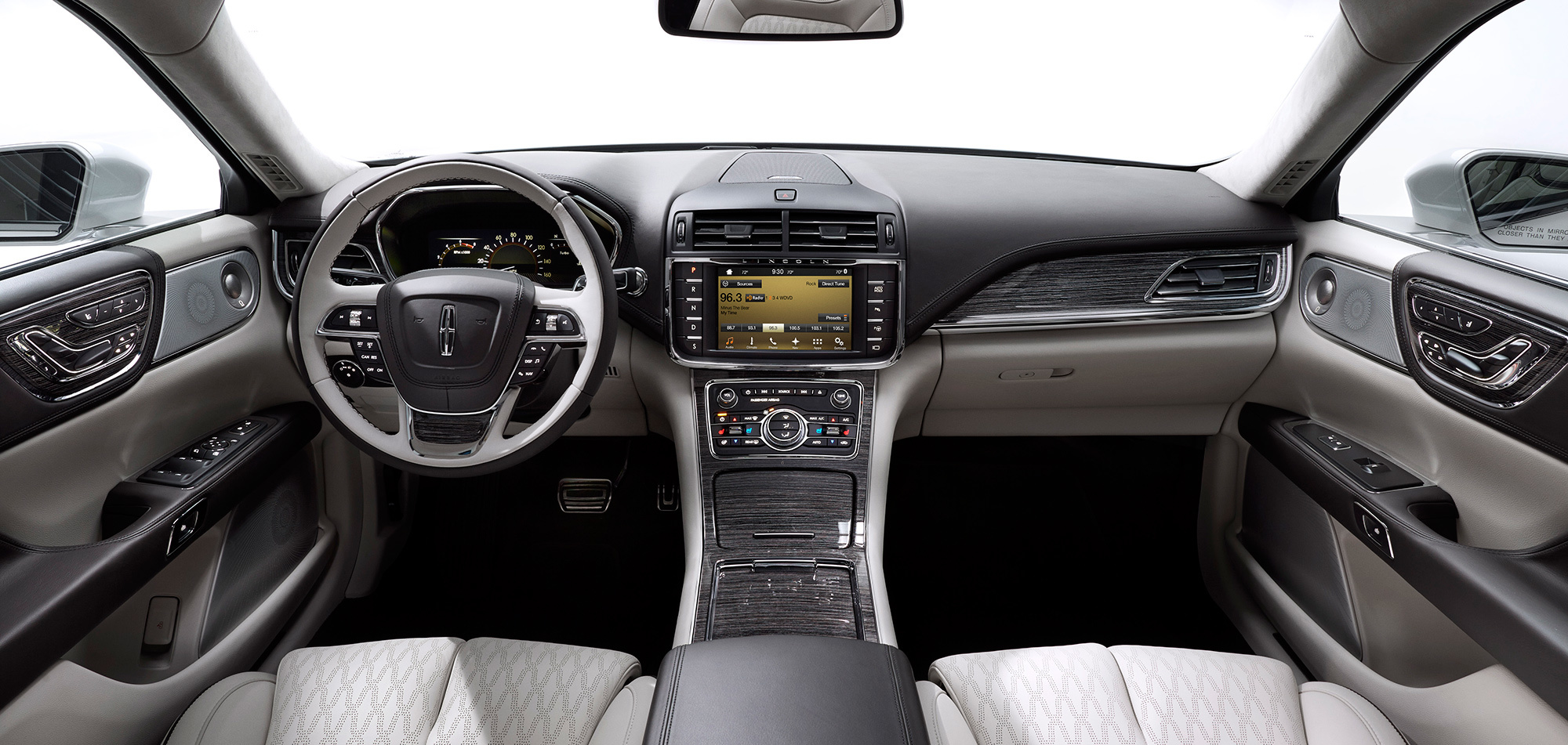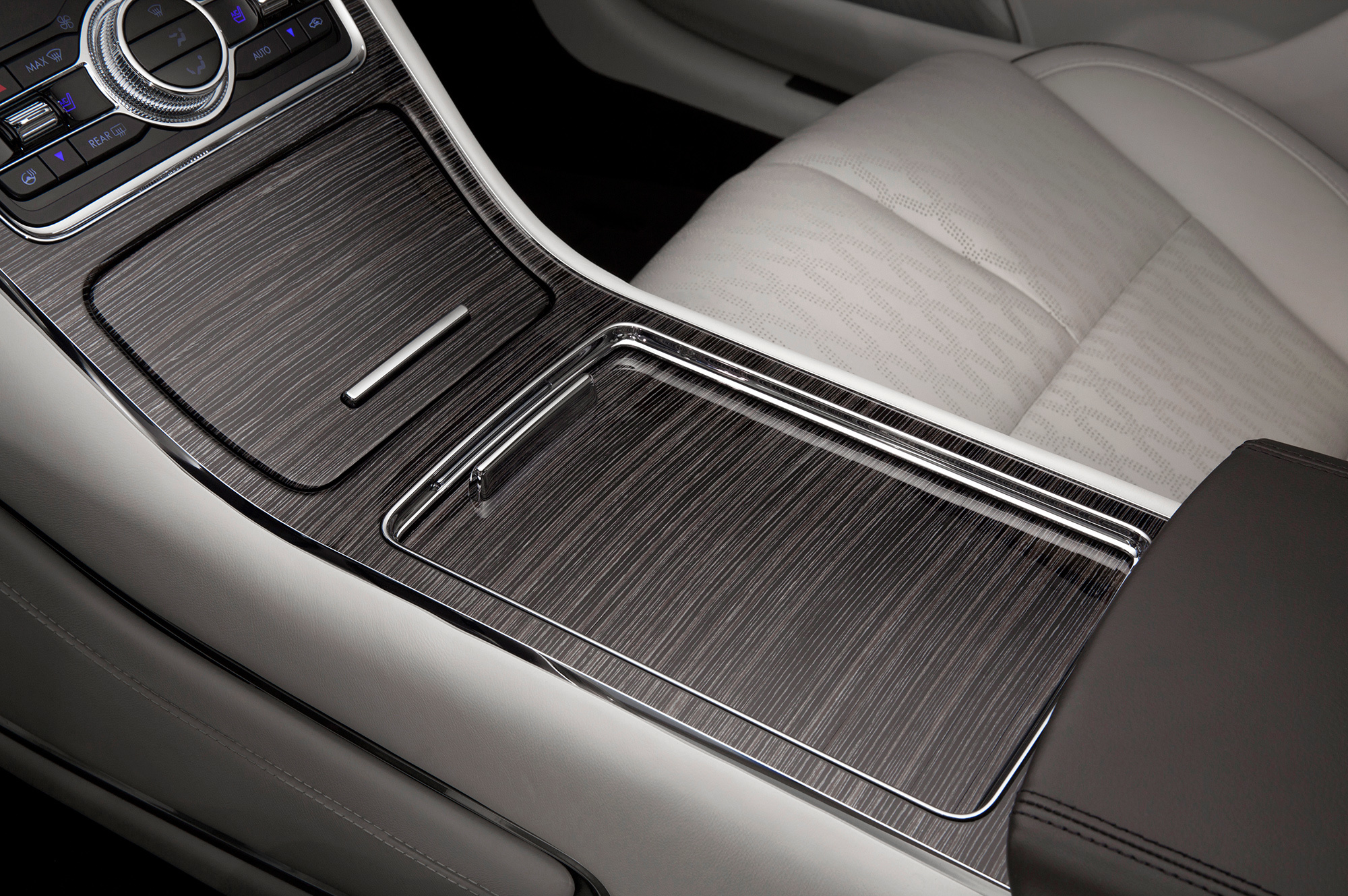 Технология E-latch применена и внутри автомобиля: вместо массивных ручек открывания дверей тут кнопочки. Это среди прочего позволило оптимально с точки зрения звучания разместить набор динамиков аудиосистемы Revel. Чтобы внешние звуки не мешали погружению в музыкальную атмосферу, на стёкла нанесена специальная поглощающая плёнка, а в перечне оборудования вы увидите активную систему шумоподавления.