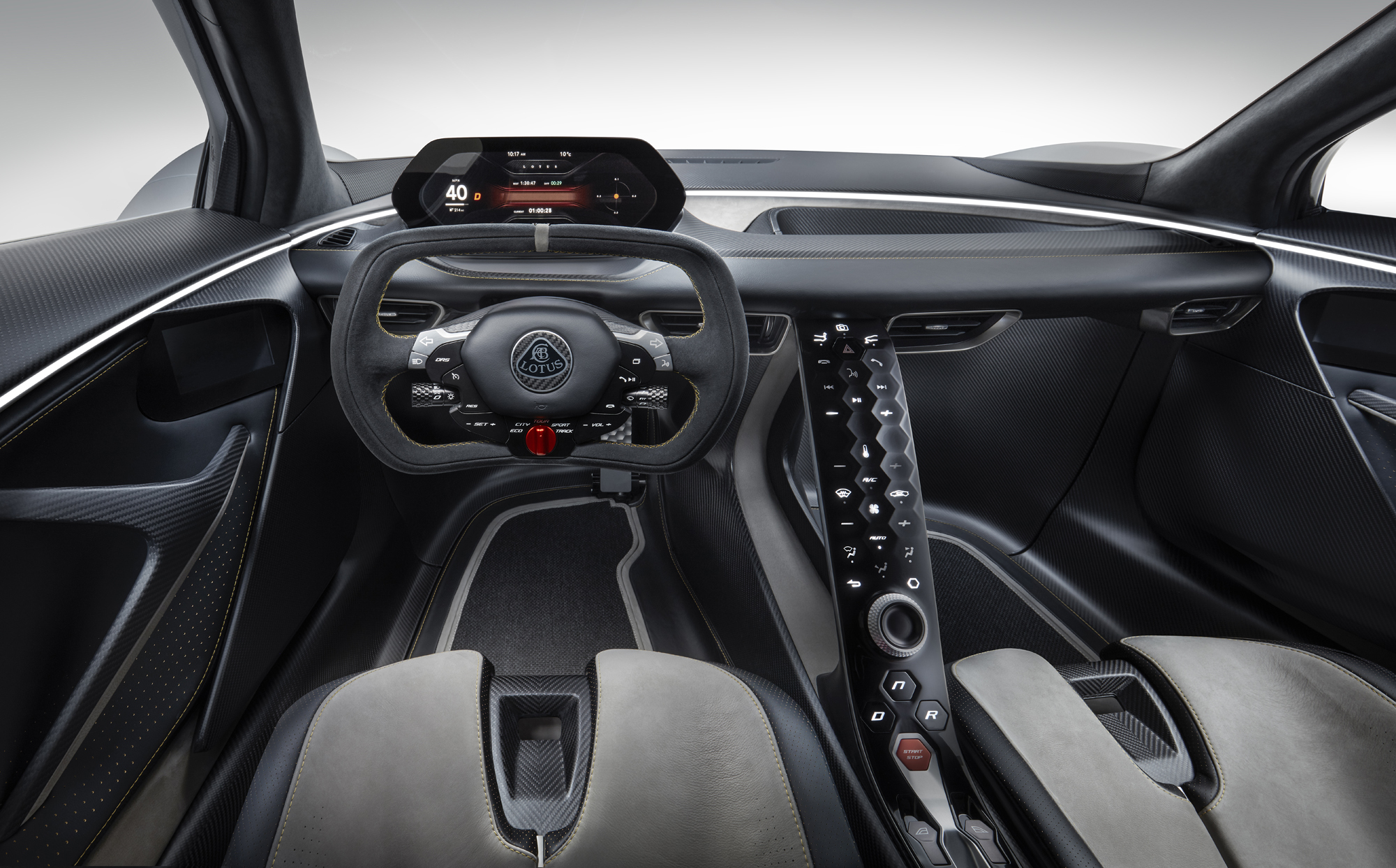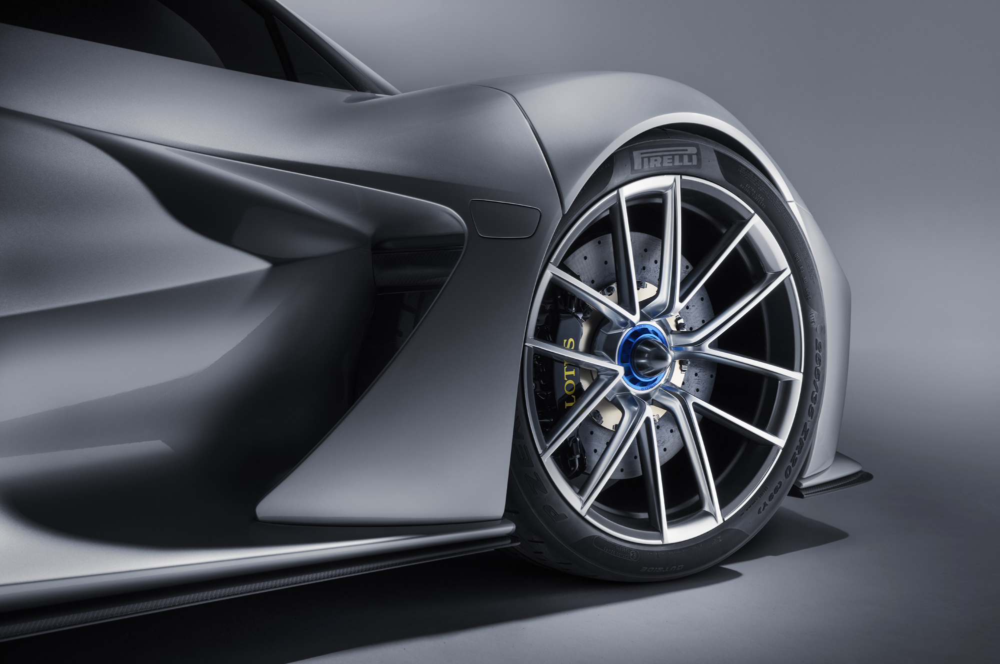 Из необычных моментов надо отметить инверторы на основе карбида кремния (это перспективное направление в силовой электронике, плюсы таких схем: более высокая эффективность и лучшая устойчивость к перегреву). Преобразователи тока и электромоторы Лотусу поставила компания Integral Powertrain. А вот литиево-ионная батарея — детище другого партнёра, фирмы Williams Advanced Engineering.