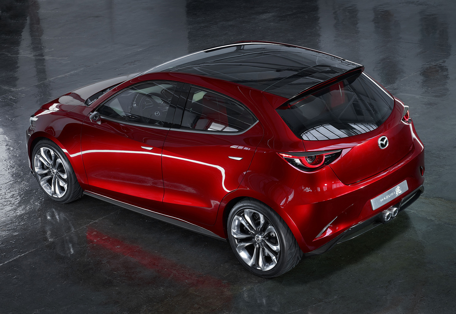 Концепт Hazumi — самая интригующая новинка, подготовленная Маздой для Женевского автосалона. Компания немногословна в описании машины: «Имя Hazumi с японского переводится как “отскакивать”, “пружинить” и особенно хорошо подходит для небольшого автомобиля, который, кажется, кипит от энергии. Hazumi выражает идеальную форму для следующего поколения малолитражки компании». По сути шоу-кар является предвестником нового хэтчбека Mazda2, который в текущем (третьем) поколении стоит на конвейере аж с 2007 года.