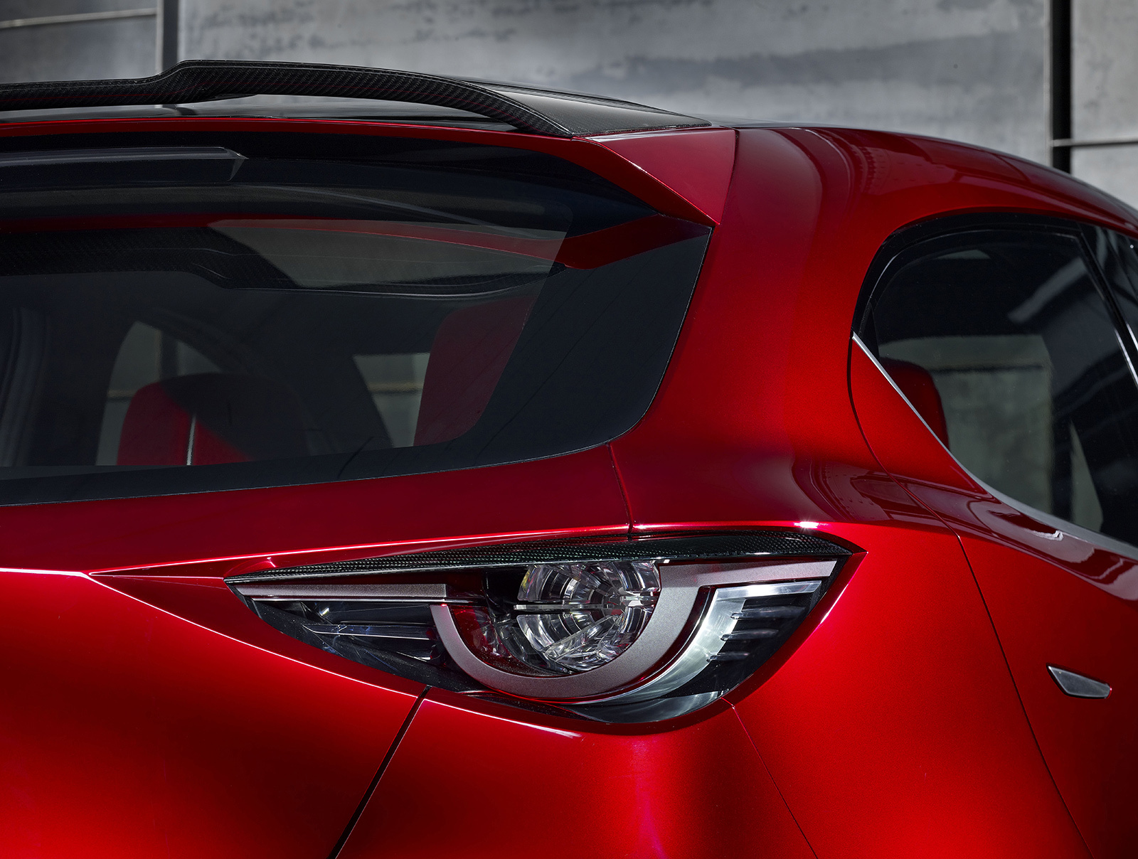 Под капотом концепта — ещё одна мировая премьера: новый дизель Skyactiv-D 1.5. Японцы не называют показателей мощности и момента, но говорят, что двигатель будет выбрасывать в атмосферу менее 90 г CO2 на километр и уложится в нормы Евро-6 без использования сложных и дорогих систем обработки выхлопных газов. Агрегатируется мотор с шестиступенчатой автоматической трансмиссией. Естественно, без фирменной системы i-Stop и технологии рекуперации энергии торможения i-Eloop не обошлось. Также в компакте нашлось место и для комплекса технологий активной безопасности i-Activesense. А вот когда мы увидим серийное воплощение шоу-кара, всё ещё остаётся тайной.
